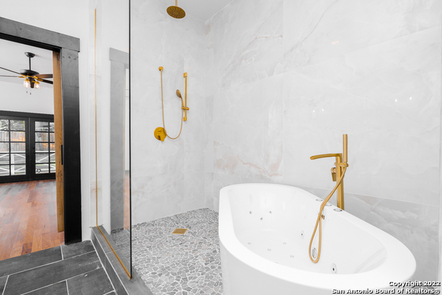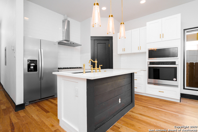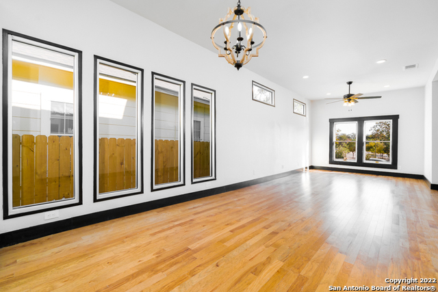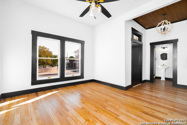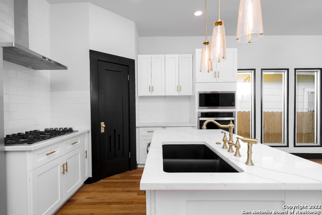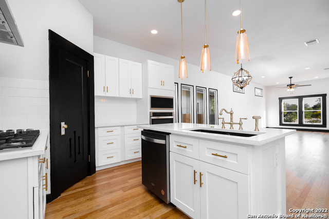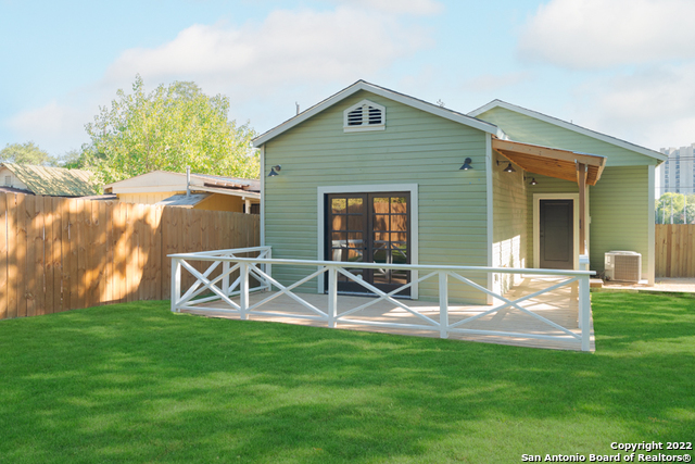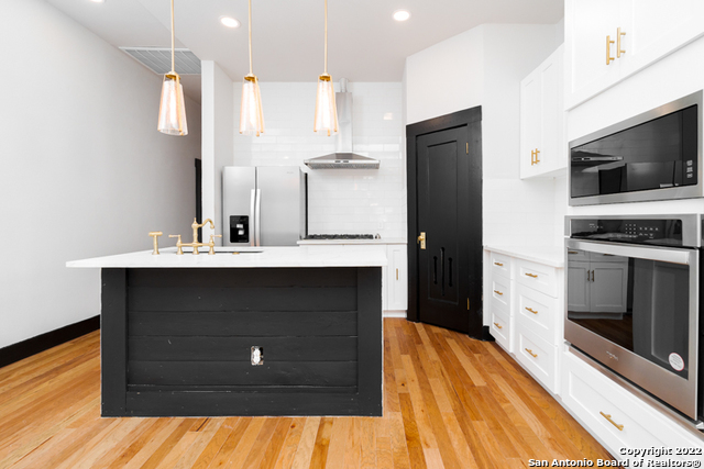 Come by and see The Tuxedo Home! Sitting in an amazing location across San Pedro Springs Park, a morning jog or walk is just literally steps away. This stunning 3 bed 2.5 bath exudes San Antonio charm to the fullest. Enjoy natural light from restored historic windows, this classic early 1900's home is both cozy and classy. Brand new cabinetry and new appliances, including a gas range with built in electric oven makes cooking easy! Look out at your large backyard from your master bedroom! Beautiful new hardwood floors, original doors, custom door casings with much of the original hardware surrounded by 10 ft ceilings throughout the home revives a bygone era while you enjoy updated living. The master is separate from the other bedrooms, so rare in this era home, and is a full en-suite with glassed-in shower with custom tile work. The secondary bedrooms share a second bath with the restored original claw tub/shower combo. All this would make a perfect live/work space considering the location, right off Flores, a straight shot to downtown and easy jump to 281, The Pearl and I-10. A long concrete driveway for plenty of parking leads to the rear gate that opens onto the back yard. Enjoy a sip of coffee off your back porch with a fully sodded back yard. Truly a real estate gem you don't want to miss out on.