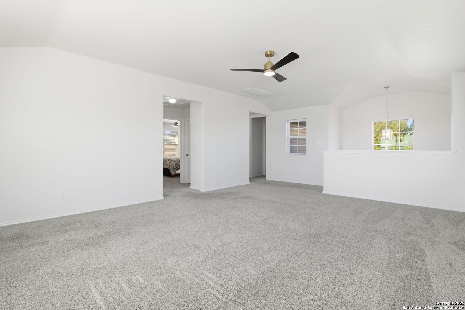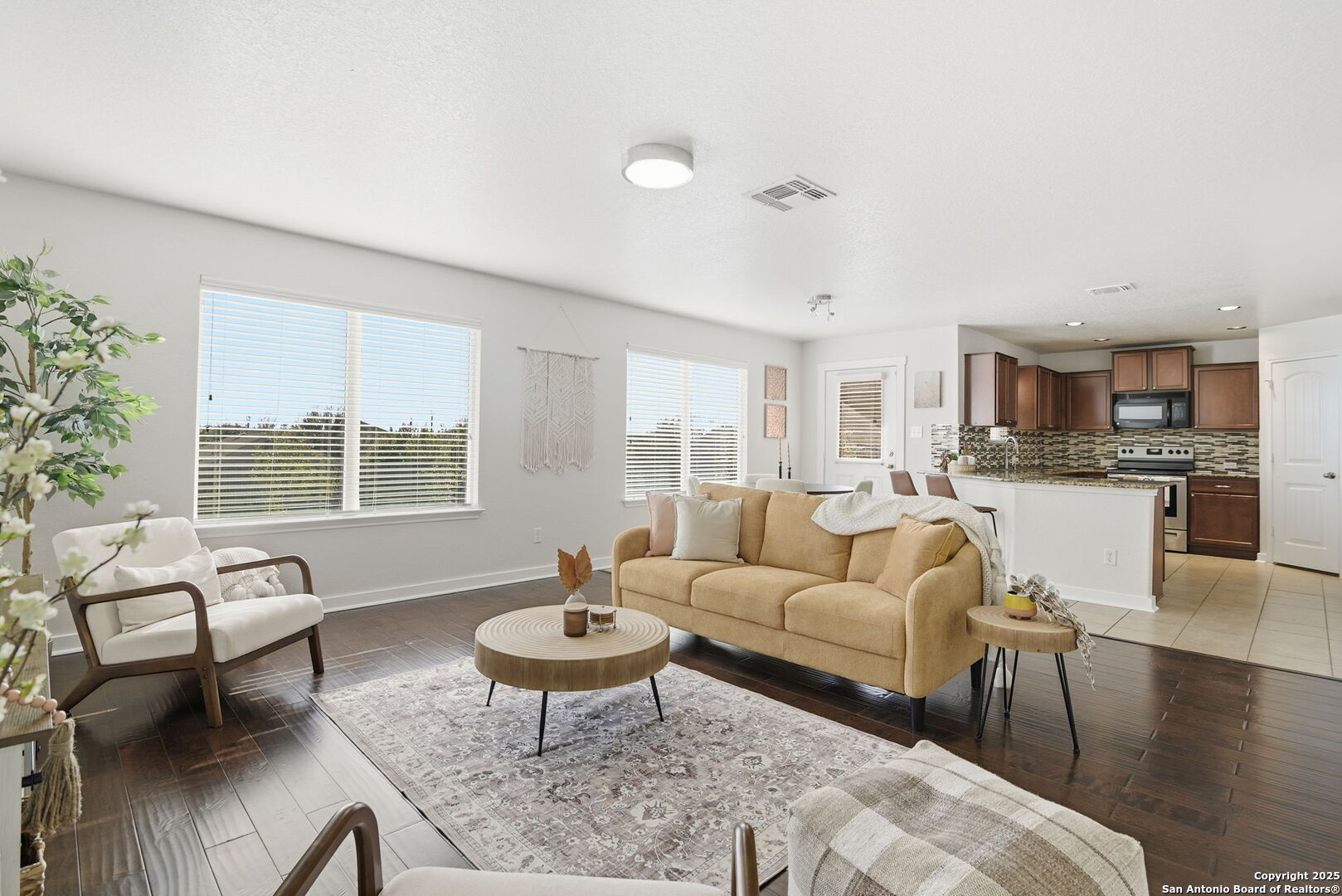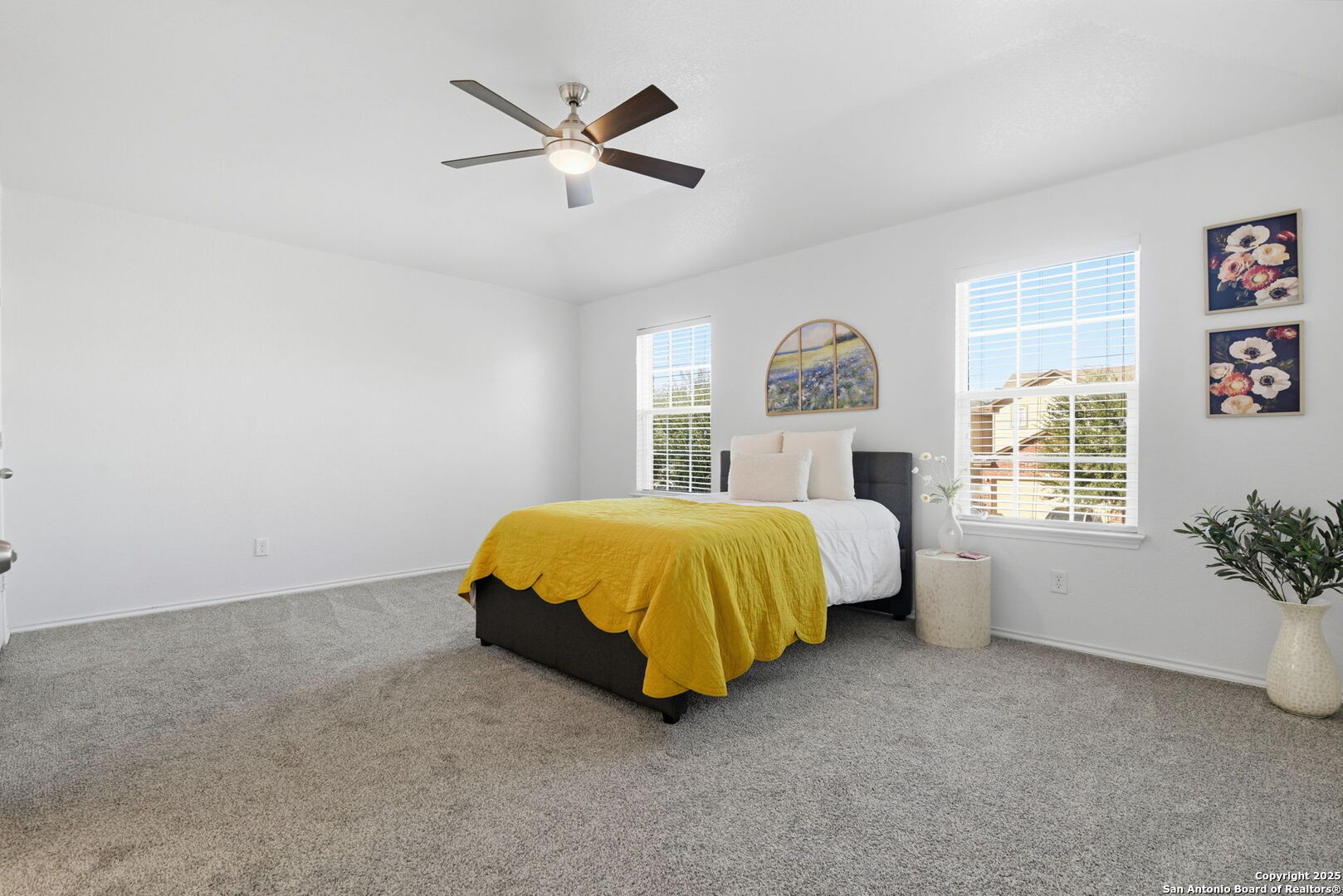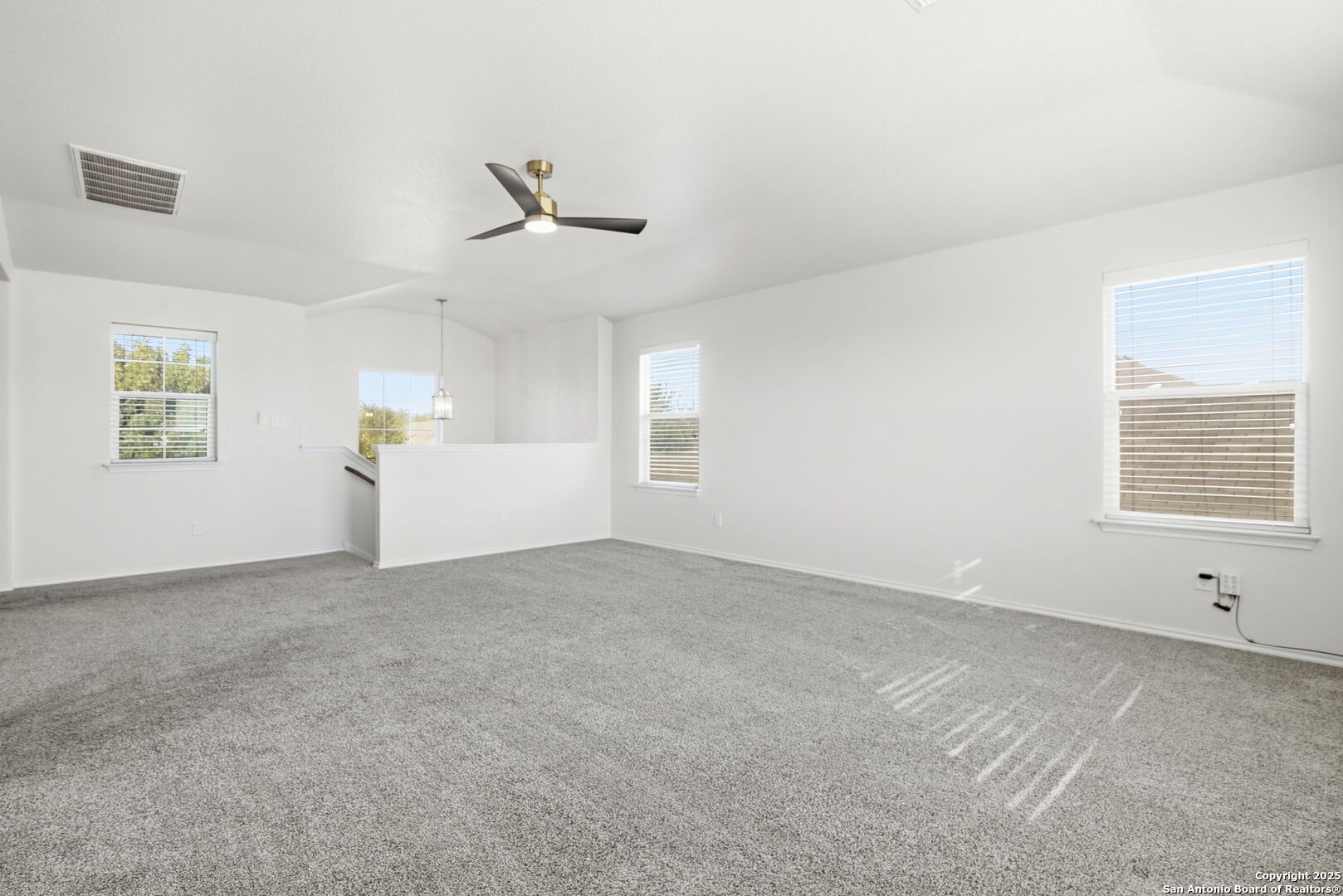 Welcome to this beautifully maintained 3-bedroom, 2.5-bath home in the desirable Solana Ridge community! Offering over 2,000 sq ft, this spacious residence delivers comfort, style, and room to grow. Step inside to an inviting open-concept layout filled with natural light. The updated kitchen shines with modern finishes, granite countertops, and a stylish backsplash-perfect for cooking and entertaining. The adjoining dining and living areas are ideal for gathering, with plenty of space to relax. Upstairs, a generous loft area provides the perfect flex space for a game room, home office, or media nook. The expansive primary suite offers a peaceful retreat with a large bedroom and an impressively sized walk-in closet. Secondary bedrooms are well proportioned and offer excellent storage. Outside, enjoy a large backyard-ready for weekend BBQs, play, pets, or future outdoor enhancements. Located near major highways, shopping, parks, and JBSA-Lackland, this home combines convenience with comfort. Don't miss your chance to make this beautifully kept Solana Ridge gem your own!