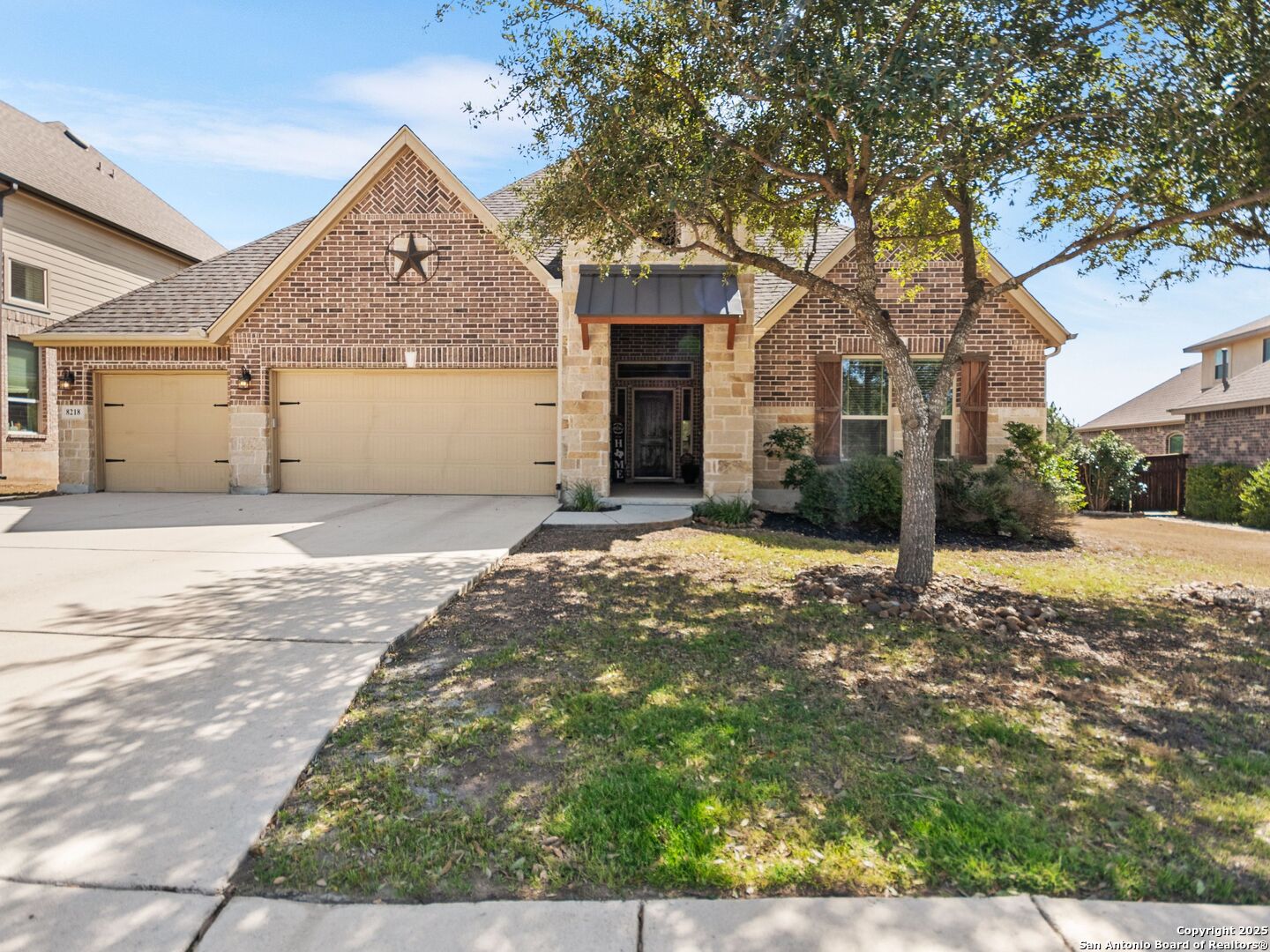 Welcome to this stunning two-story home located within the highly sought-after Boerne ISD. As you step inside, you'll be greeted by an open floor plan with soaring ceilings, creating a warm and inviting atmosphere. The home features 3 spacious bedrooms and 2 full bathrooms on the main floor, along with a dedicated study and a large, open kitchen. The chef's kitchen boasts stainless steel appliances, granite countertops, gas cooking, and a generous island perfect for meal prep or casual dining. The large master suite is located at the back of the home, offering peaceful views of the backyard, along with a well-appointed master bath and an expansive closet. Upstairs, you'll find a large game room and a guest bedroom with its own full bathroom, providing privacy and comfort for visitors. Step outside to a wonderful entertaining space, featuring a large covered patio, an outdoor kitchen, and a back slab with a firepit area - perfect for relaxing or hosting gatherings. This property backs up to a serene green space, ensuring peace and tranquility in your backyard. There's a three-car garage with an A/C splitter installed, along with a TV, making it ideal for a workout room or man cave.Welcome home!