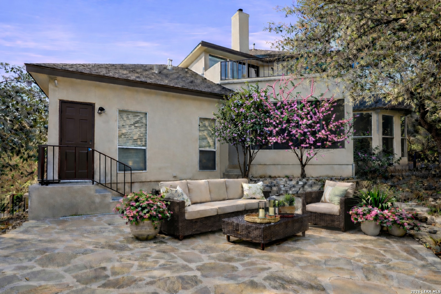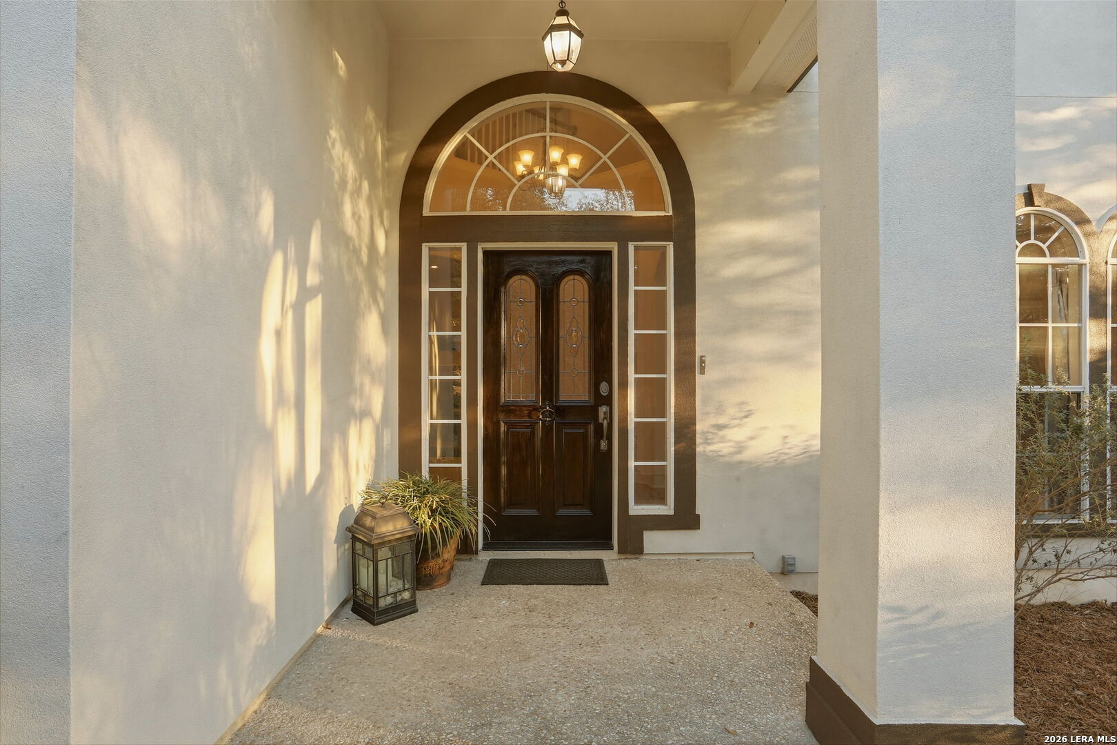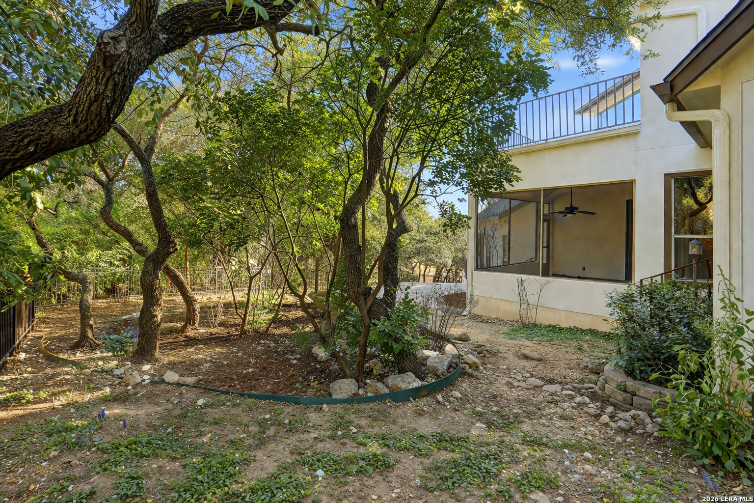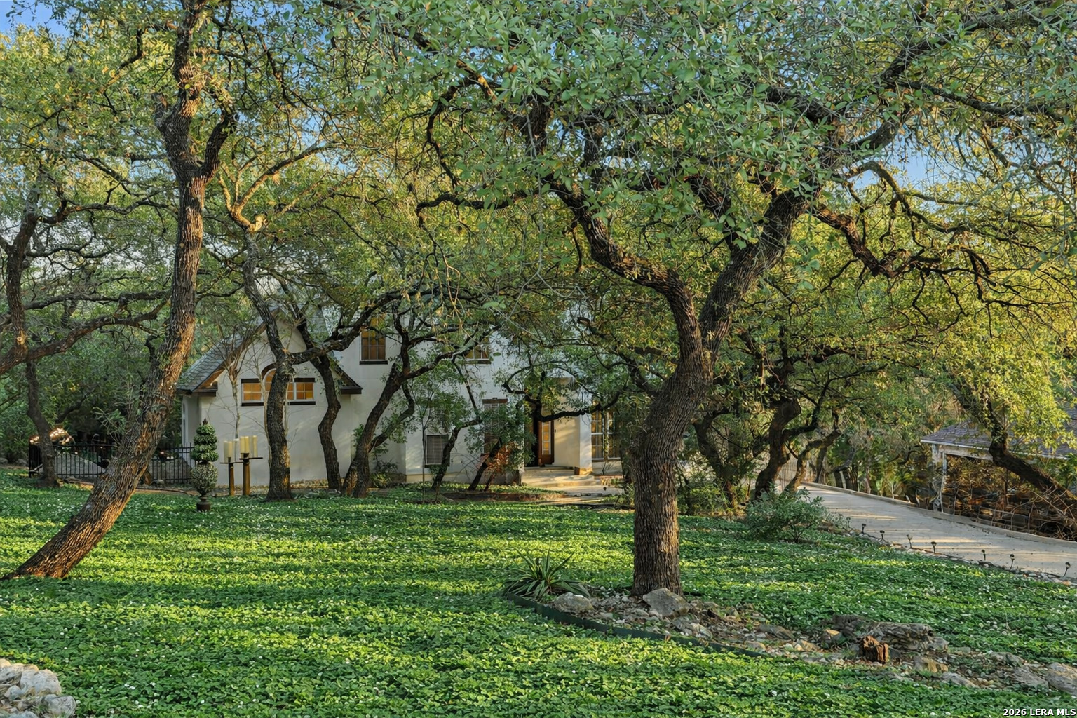 Heaven in the Hills! This stunning William Hirsch custom home sits on a private, partially wooded golf course lot in Cedar Creek Estates-just under 1/2 acre with no city taxes. One of the rare golf course properties with a fenced backyard, the low wrought-iron fence provides security without compromising sweeping fairway views near the green. Mature oak trees create a serene, resort-like setting. A dramatic two-story entry with soaring ceilings and elegant archways makes a striking first impression. Just off the entry, a flexible formal dining room easily serves as a private study-ideal for today's lifestyle. The spacious kitchen is designed for both everyday living and entertaining, featuring designer distressed cabinetry, under-cabinet lighting, a cooktop island, new GE appliances, and a WiFi-enabled oven with Air Fryer. An open-concept serving bar connects seamlessly to the living area while maintaining a sense of separation and sophistication. Outdoor living truly shines with a screened-in sunroom-complete with ceiling fan and electrical-opening to a flagstone patio with a jasmine-covered arbor. Just off the primary suite, a tranquil fountain creates a private retreat, perfect for quiet mornings or evening relaxation. Upstairs, a second-story terrace offers breathtaking panoramic Hill Country and golf course views, with private access from both guest suites. The luxurious primary suite features rare tigerwood flooring, an inlaid ceiling, and a spa-inspired bath with a Jacuzzi tub, dramatic windows, and custom cabinetry. The oversized, light-filled closet includes double-sided built-ins and a full window. Additional highlights include recently refreshed interior and exterior paint throughout, updated fixtures, designer granite countertops, upgraded sinks, and designer faucets in the kitchen and bathrooms, a spacious laundry room with generous storage and functional workspace, a wood-burning fireplace with gas starter, abundant storage throughout, and an oversized garage with workshop area, backyard access, and WiFi-enabled opener. An in-wall fingerprint/key safe adds an extra layer of security. Upstairs also offers two generously sized guest suites and a versatile flex room-ideal as a game room, media room, or office. New roof installed in 2020. Exceptional privacy, timeless design, and modern smart-home features-this is Hill Country living at its finest.