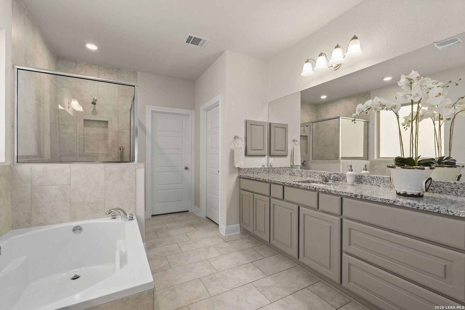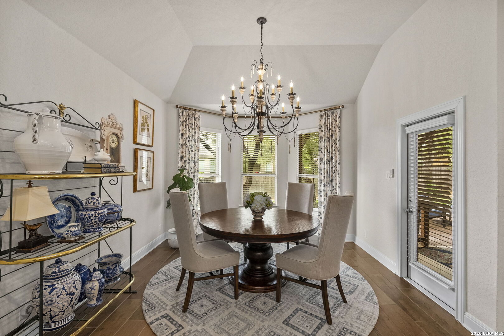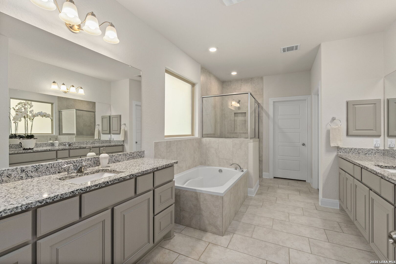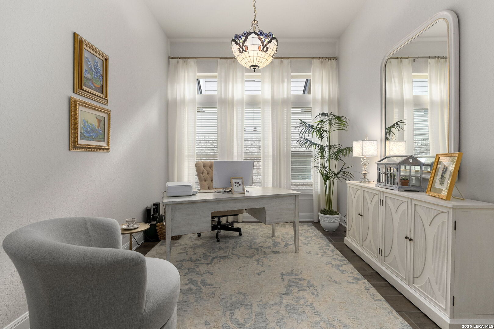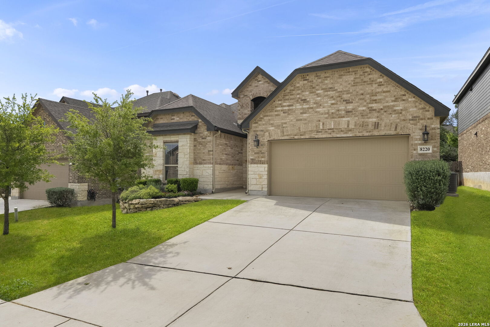 This stunning single story home in the desirable gated community of Fallbrook offers exceptional convenience with easy access to La Cantera and The Rim. Meticulously maintained by its original owner the home presents like a model and showcases a refined farmhouse-chic aesthetic throughout. From the moment you enter you're welcomed by a sprawling foyer that is perfect for displaying art and setting the tone for the home's elegant design. Striking designer, high end chandeliers, warm color palettes, wood-look tile flooring, detailed ceiling treatments and many more upgrades throughout come together to create a cohesive and inviting atmosphere. Expansive walls of windows fill the interior with natural lighting enhancing every space. At the heart of the home the great room impresses with a floor-to-ceiling stone fireplace and a seamless wall of glass windows, flowing effortlessly into the gourmet kitchen and dining area! The open flowing concept is ideal for both everyday living and entertaining. The chef's kitchen is thoughtfully designed with decorative pendant lighting, stainless steel appliances, gas cooking and an abundance of custom cabinetry. A dedicated buffet/bar area is perfect when hosting, while the sitting bar provides additional seating for guests. The private primary suite is filled with natural light and offers serene views of the backyard, along with a cozy sitting area. The spa-inspired en suite bath features separate vanities, a soaking tub, a seamless glass walk-in shower and a large walk-in closet. Three secondary bedrooms provide generous accommodations for family and guests. The versatile flex room, that is currently being used as a study with a tiffany chandelier, can easily function as a game room or playroom to suit your lifestyle. Step outside to enjoy year-round outdoor living on the covered patio, which extends to an open deck with ample seating space. The park-like backyard is adorned with mature trees and professional landscaping creating a peaceful setting for morning coffee or relaxing evenings. Residents of Fallbrook enjoy access to community amenities including a clubhouse and pool. With convenient proximity to Interstate 10 you're just minutes from premier shopping, dining and entertainment in San Antonio and the scenic Hill Country.