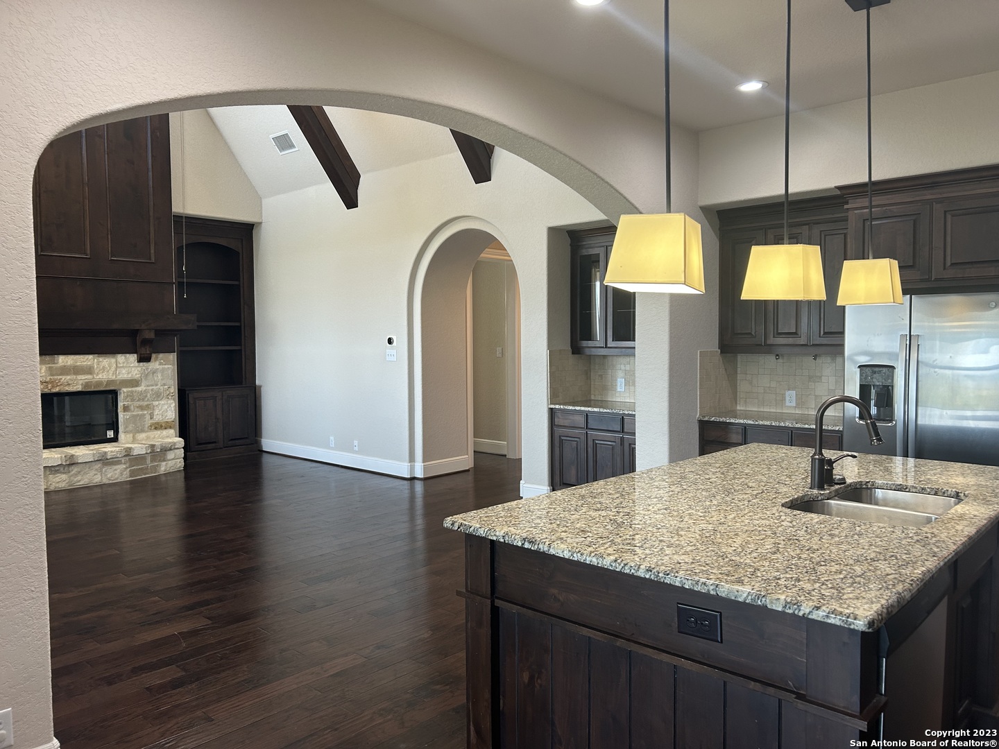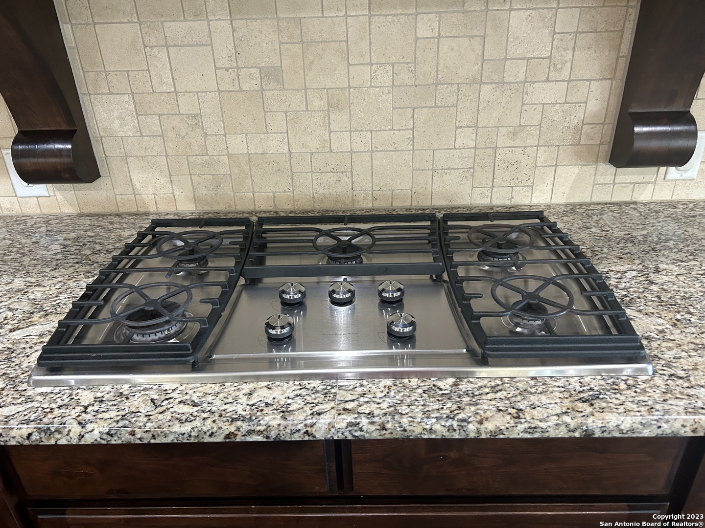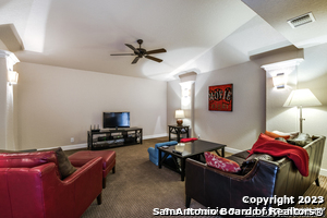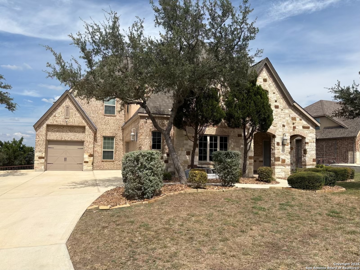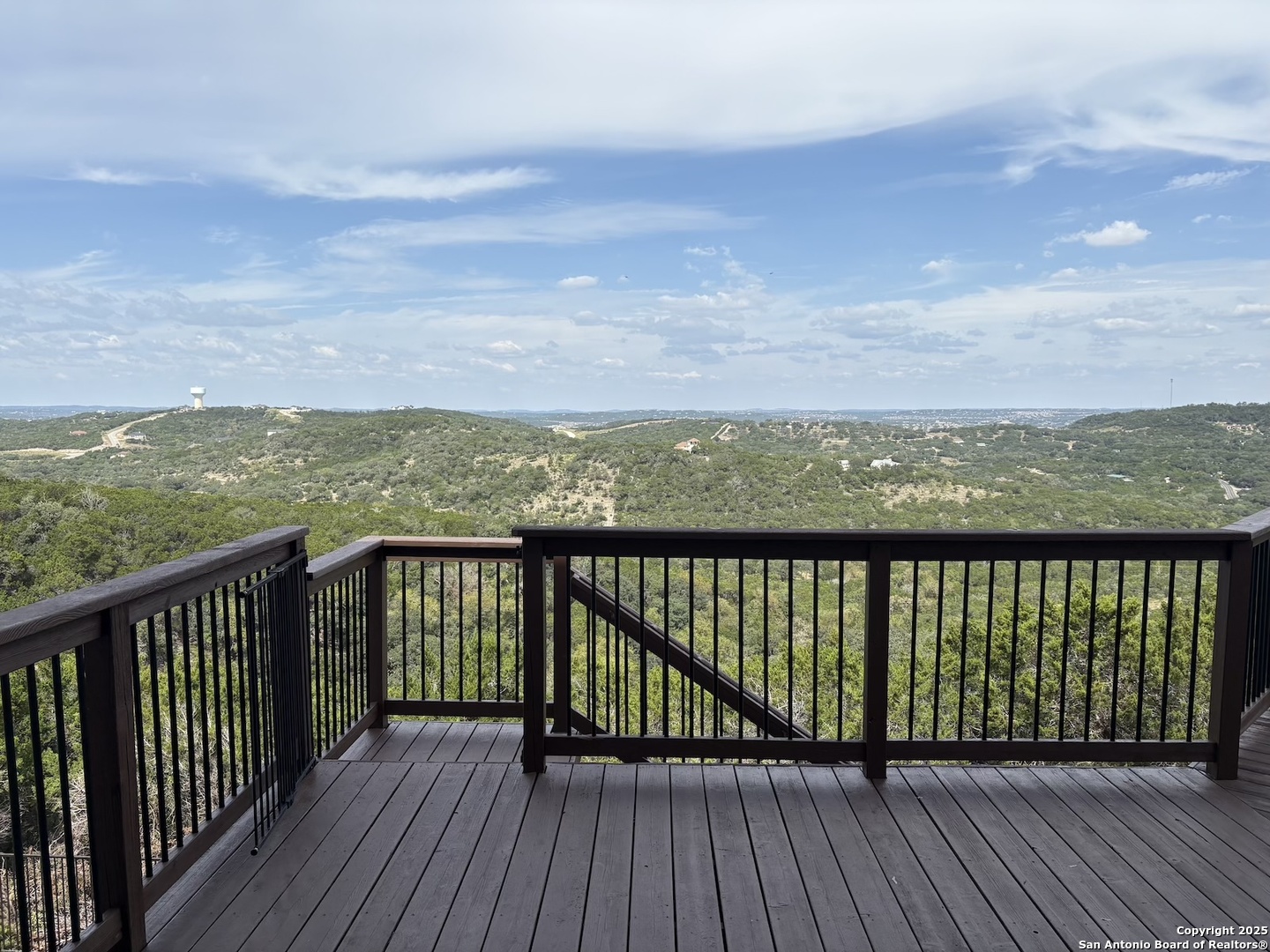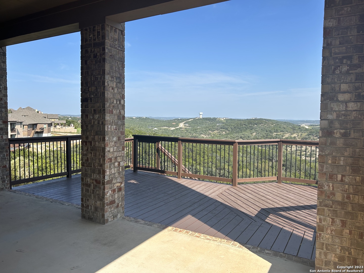 On Top of the World! Fabulous home with breathtaking Hill Country views from expansive covered outdoor spaces-one off the main floor and another off the second story! Nestled on over half an acre backing to a greenbelt for added privacy, this residence is located in the sought-after luxury community of Stonewall Estates in North East ISD, with easy access to IH-10 and Stonewall Parkway. Shopping, dining, and entertainment at The Rim and La Cantera are minutes away, along with UTSA and Fiesta Texas. Inside, you'll find a thoughtfully designed layout with all bedrooms featuring private bathrooms, the spacious master suite downstairs, a gourmet kitchen with 5-burner gas cooktop & double ovens, granite countertops & beautiful wood floors, three living areas plus a media room, two separate garages (2-car + 1-car)