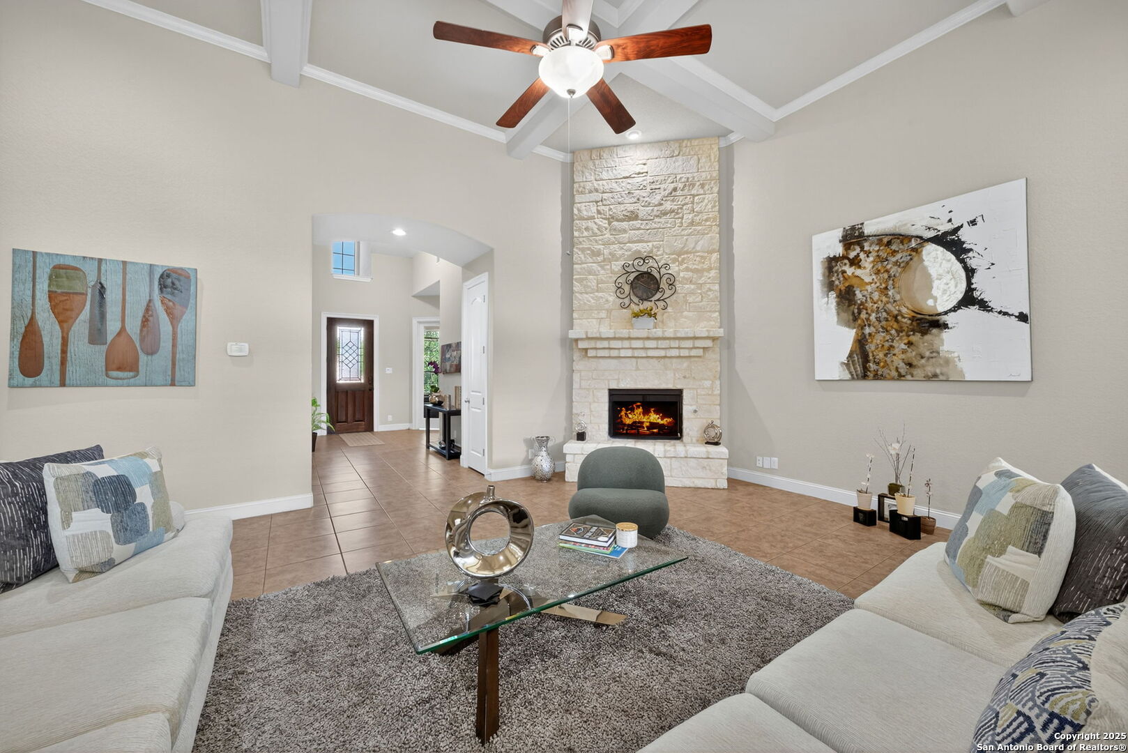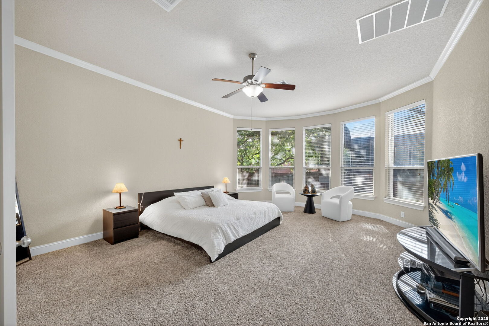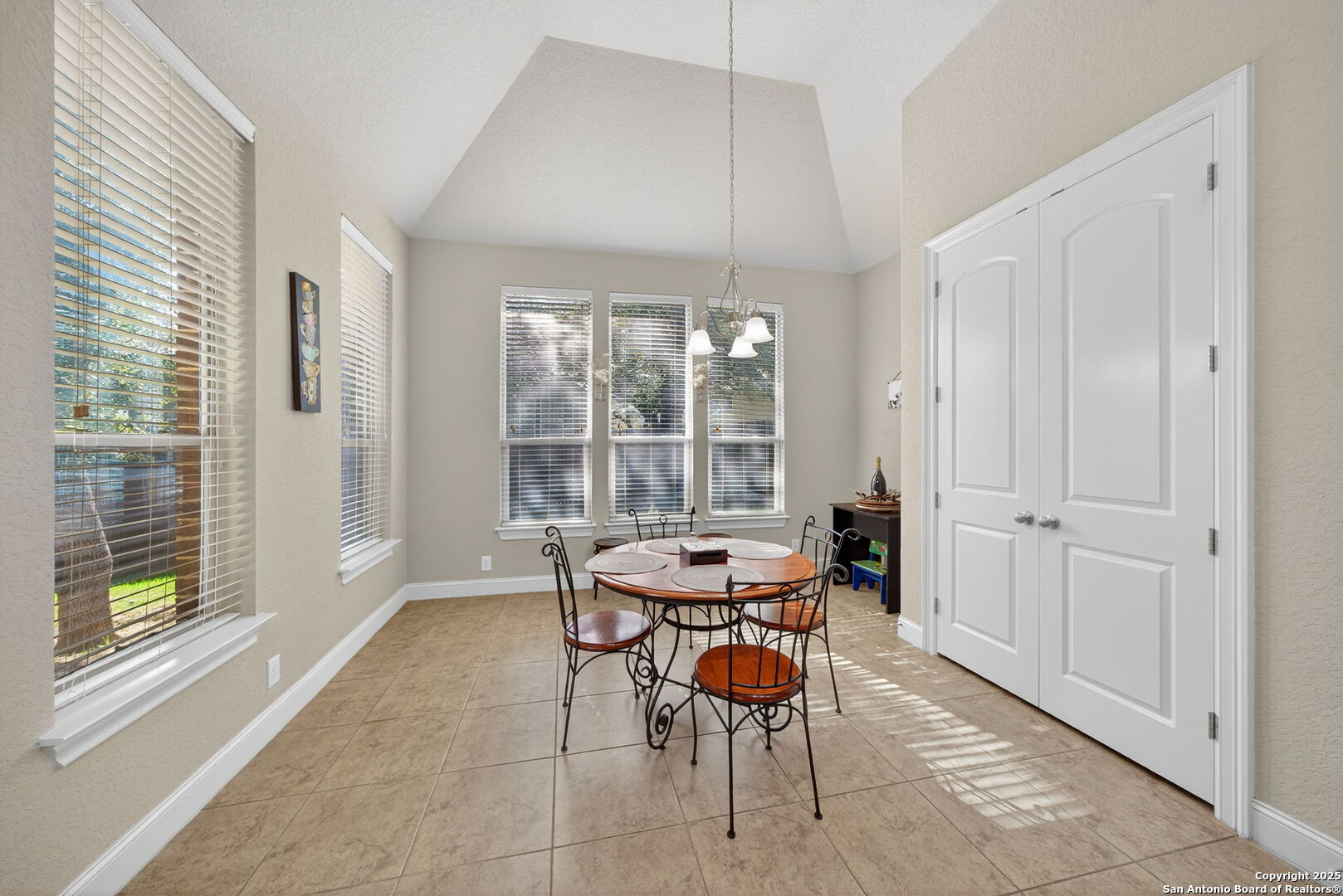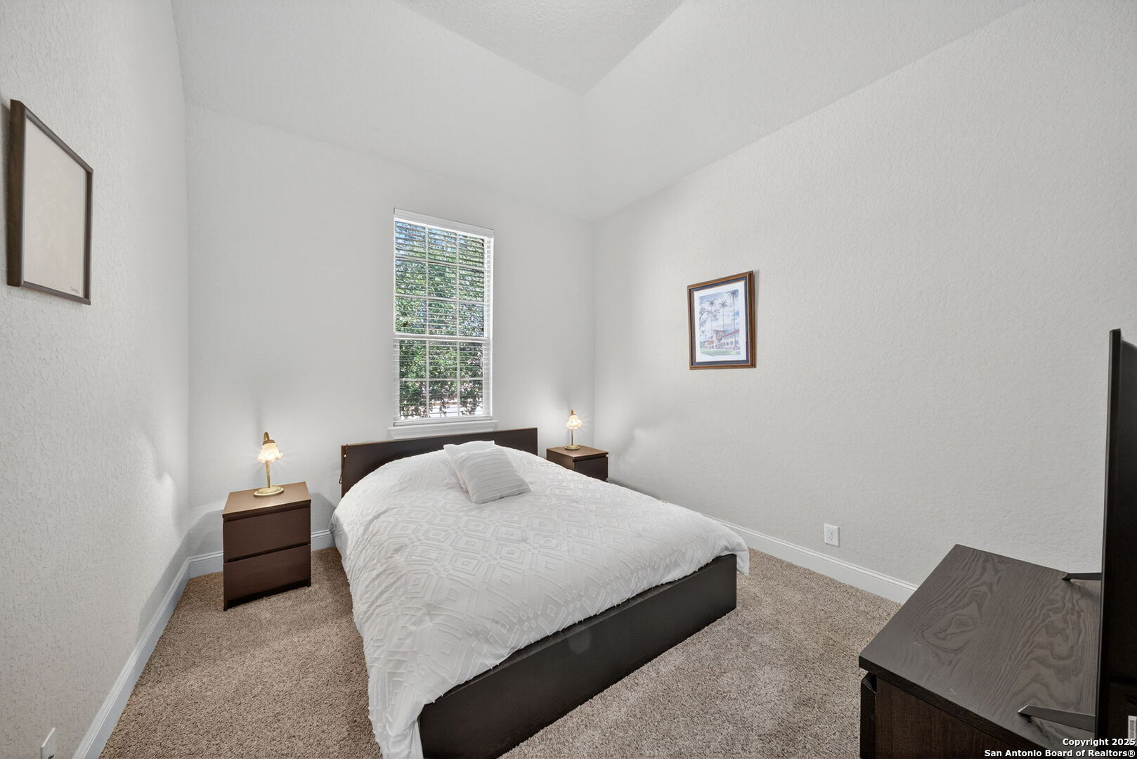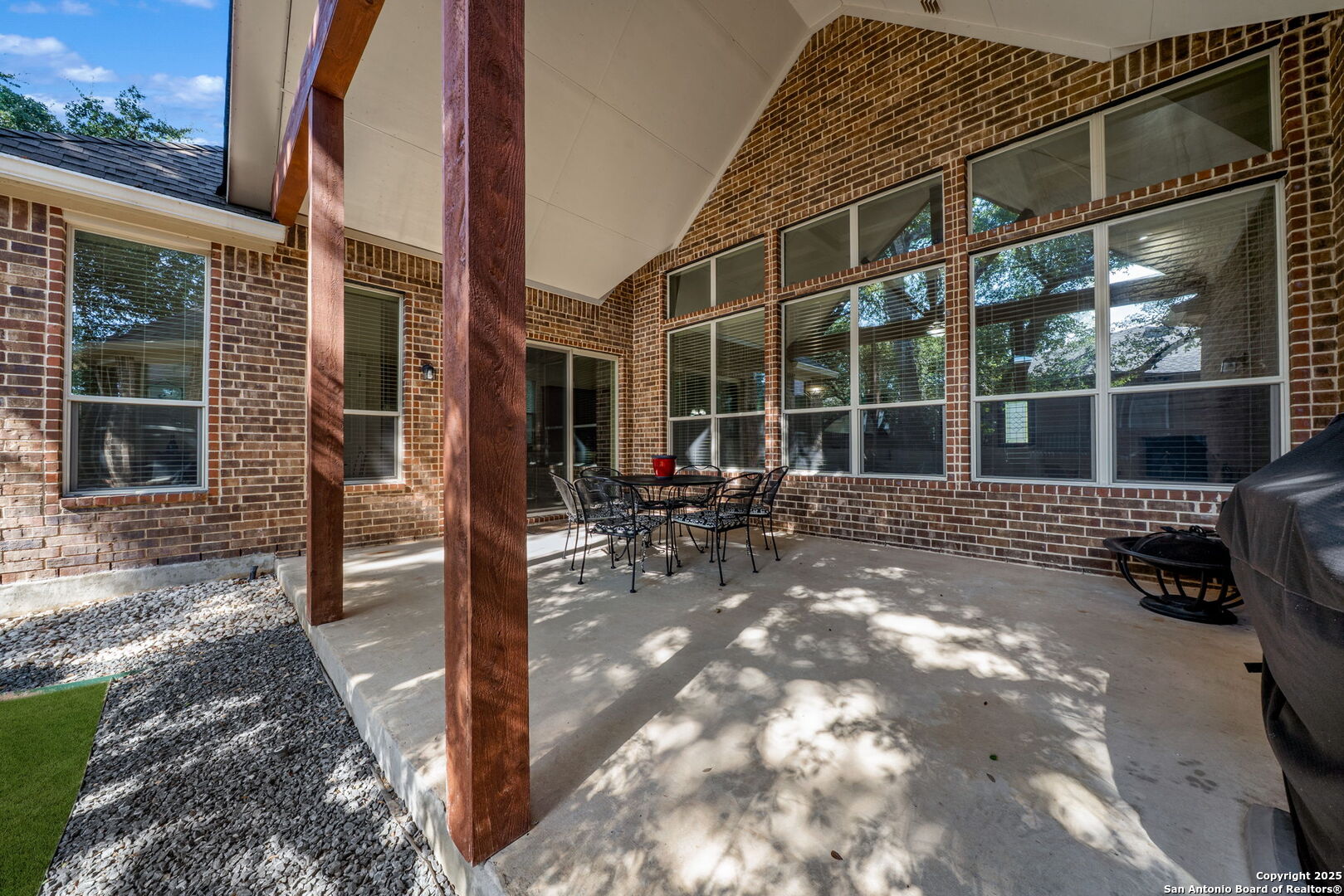 Welcome to this stunning 2,808-square-foot home nestled in the desirable, gated Two Creeks community within the acclaimed Northside Independent School District! Featuring 3 spacious bedrooms, 2.5 bathrooms, a dedicated study, and a formal dining room, this residence is designed for both comfort and style. Inside, you'll love the warm blend of ceramic tile, wood flooring, and brand-new carpet in the bedrooms. The chef's kitchen is a true centerpiece with granite countertops, stainless steel appliances, gas cooking, and an island with breakfast bar-perfect for everyday meals or entertaining. The open family room features a cozy gas fireplace, while the bay window in the primary suite creates a bright, inviting retreat complete with a large walk-in closet and oversized shower. Practical upgrades include a sprinkler system, gutters, garage door opener and a water softener. An oversized garage provides plenty of storage, and the covered patio offers a relaxing spot to enjoy your backyard. Located in Two Creeks, you'll enjoy access to a community swimming pool, sports court, and a secure gated entrance-all within Northside ISD. This home combines luxury with convenience. Don't miss your chance to own this exceptional property-schedule your showing today!