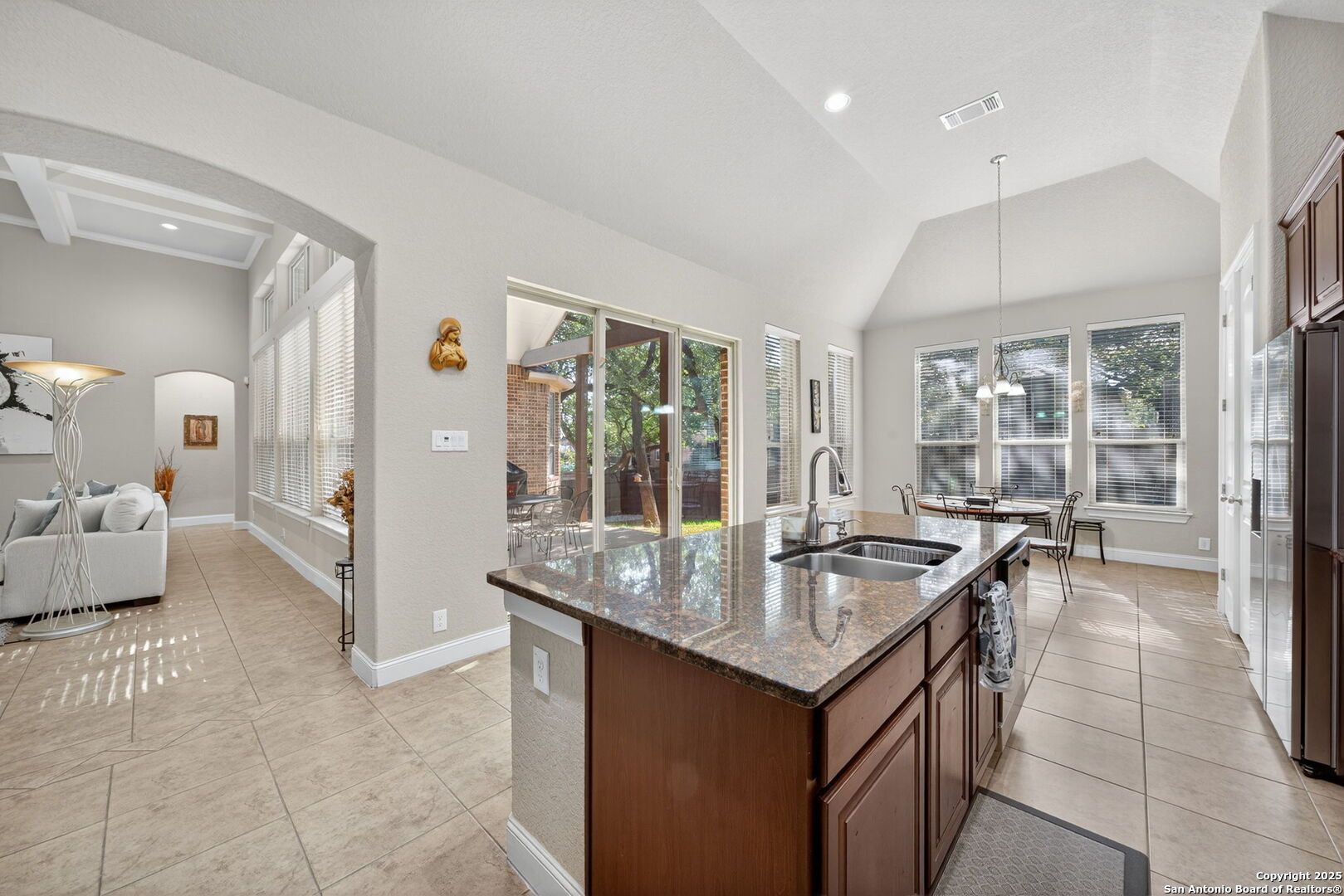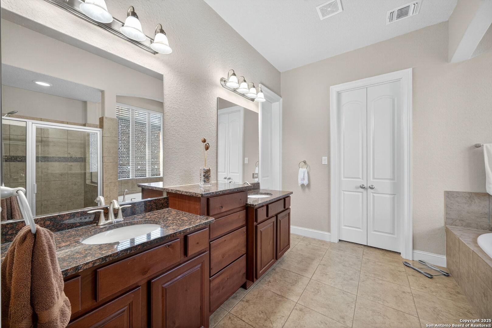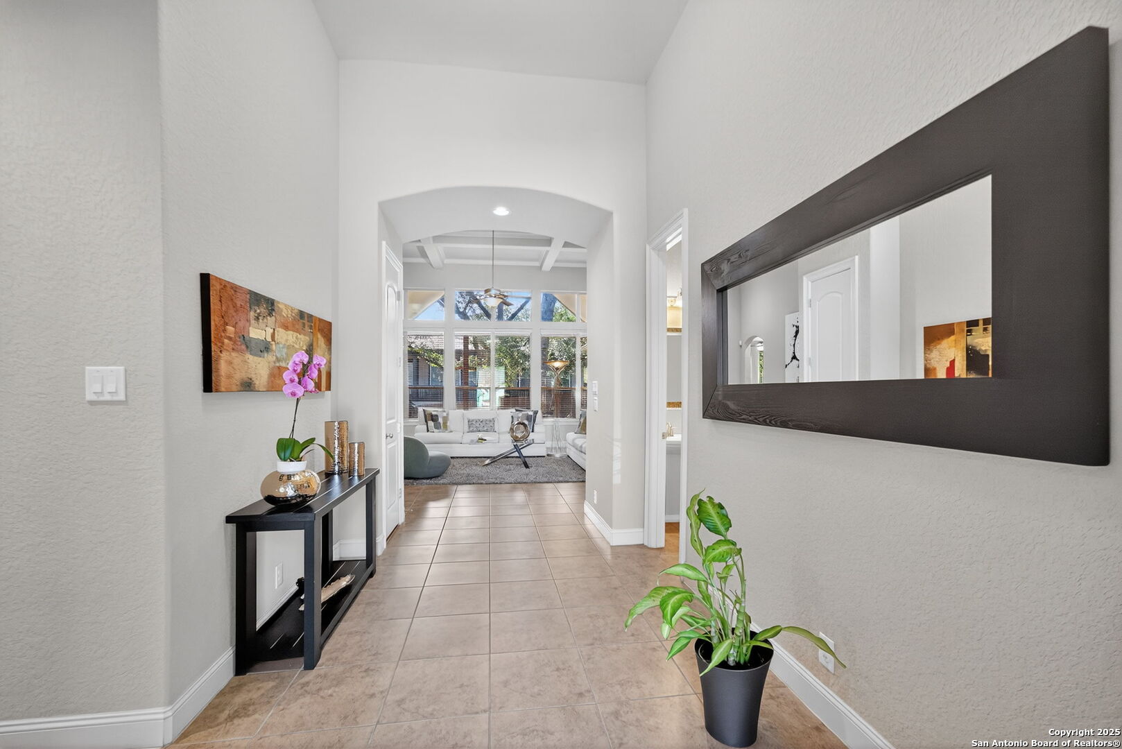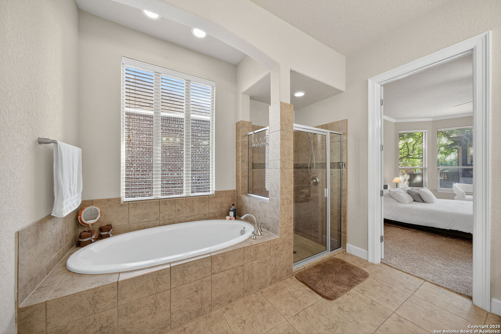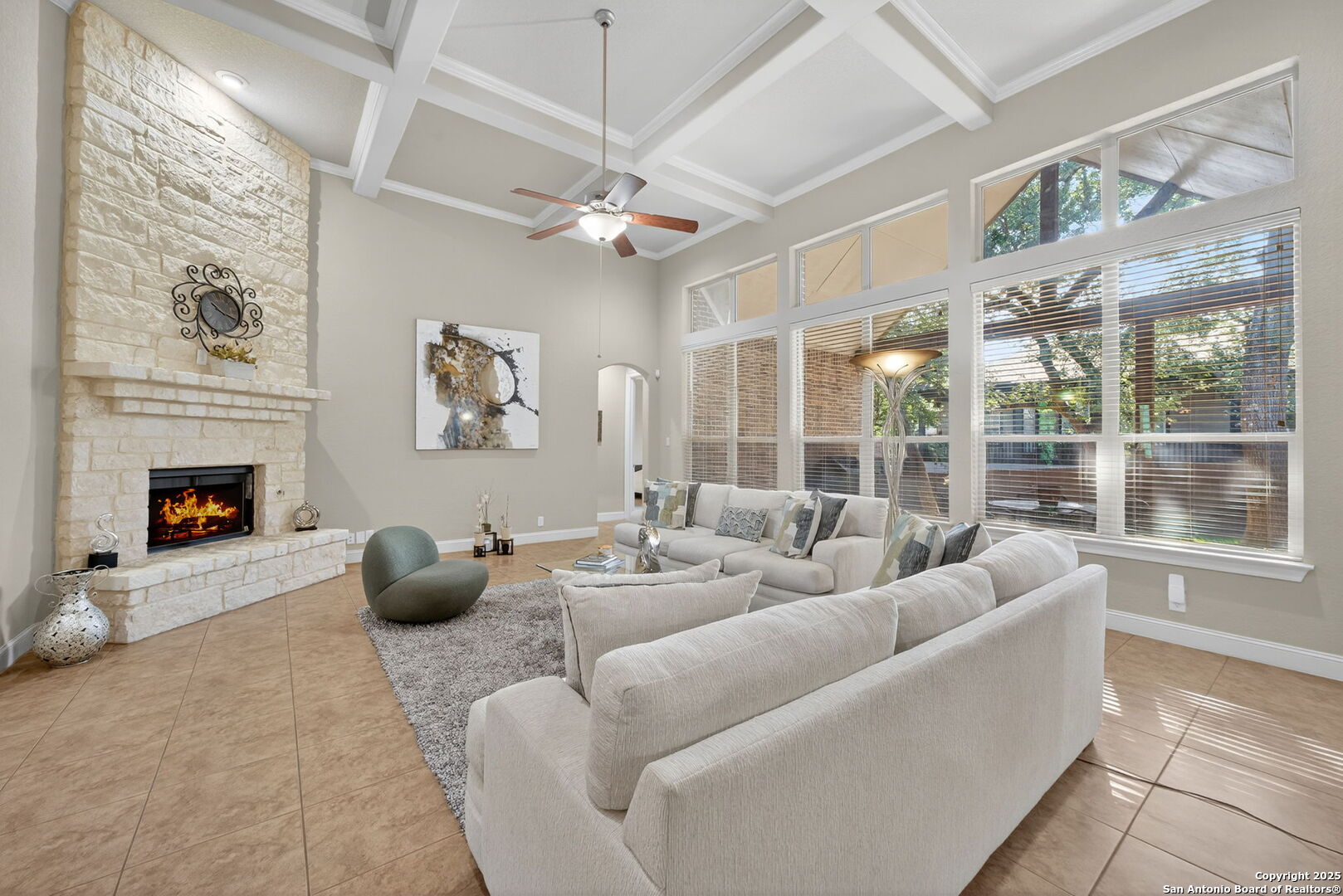 Welcome to this stunning 2,808-square-foot home nestled in the desirable, gated Two Creeks community within the acclaimed Northside Independent School District! Featuring 3 spacious bedrooms, 2.5 bathrooms, a dedicated study, and a formal dining room, this residence is designed for both comfort and style. Inside, you'll love the warm blend of ceramic tile, wood flooring, and brand-new carpet in the bedrooms. The chef's kitchen is a true centerpiece with granite countertops, stainless steel appliances, gas cooking, and an island with breakfast bar-perfect for everyday meals or entertaining. The open family room features a cozy gas fireplace, while the bay window in the primary suite creates a bright, inviting retreat complete with a large walk-in closet and oversized shower. Practical upgrades include a sprinkler system, gutters, garage door opener and a water softener. An oversized garage provides plenty of storage, and the covered patio offers a relaxing spot to enjoy your backyard. Located in Two Creeks, you'll enjoy access to a community swimming pool, sports court, and a secure gated entrance-all within Northside ISD. This home combines luxury with convenience. Don't miss your chance to own this exceptional property-schedule your showing today!