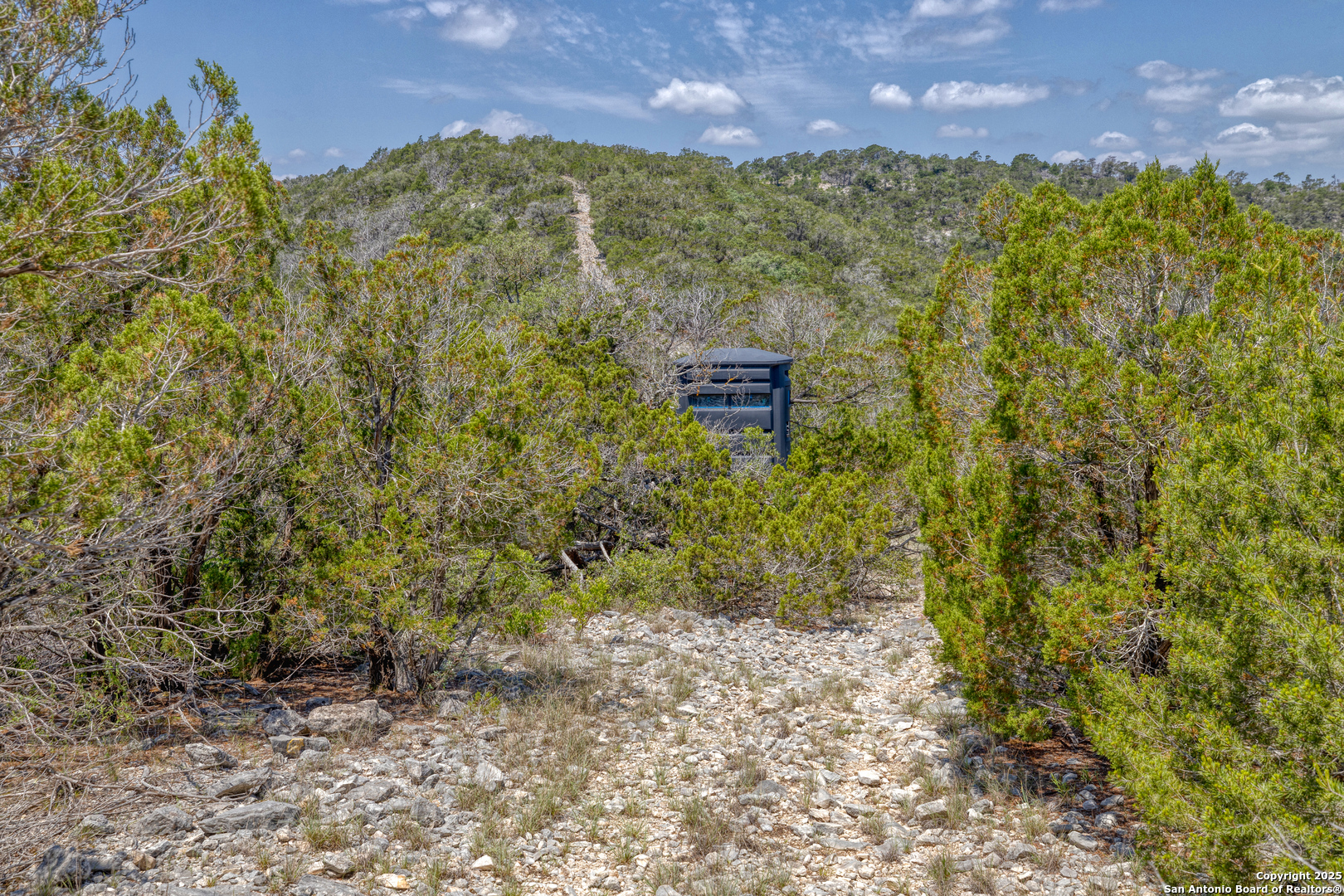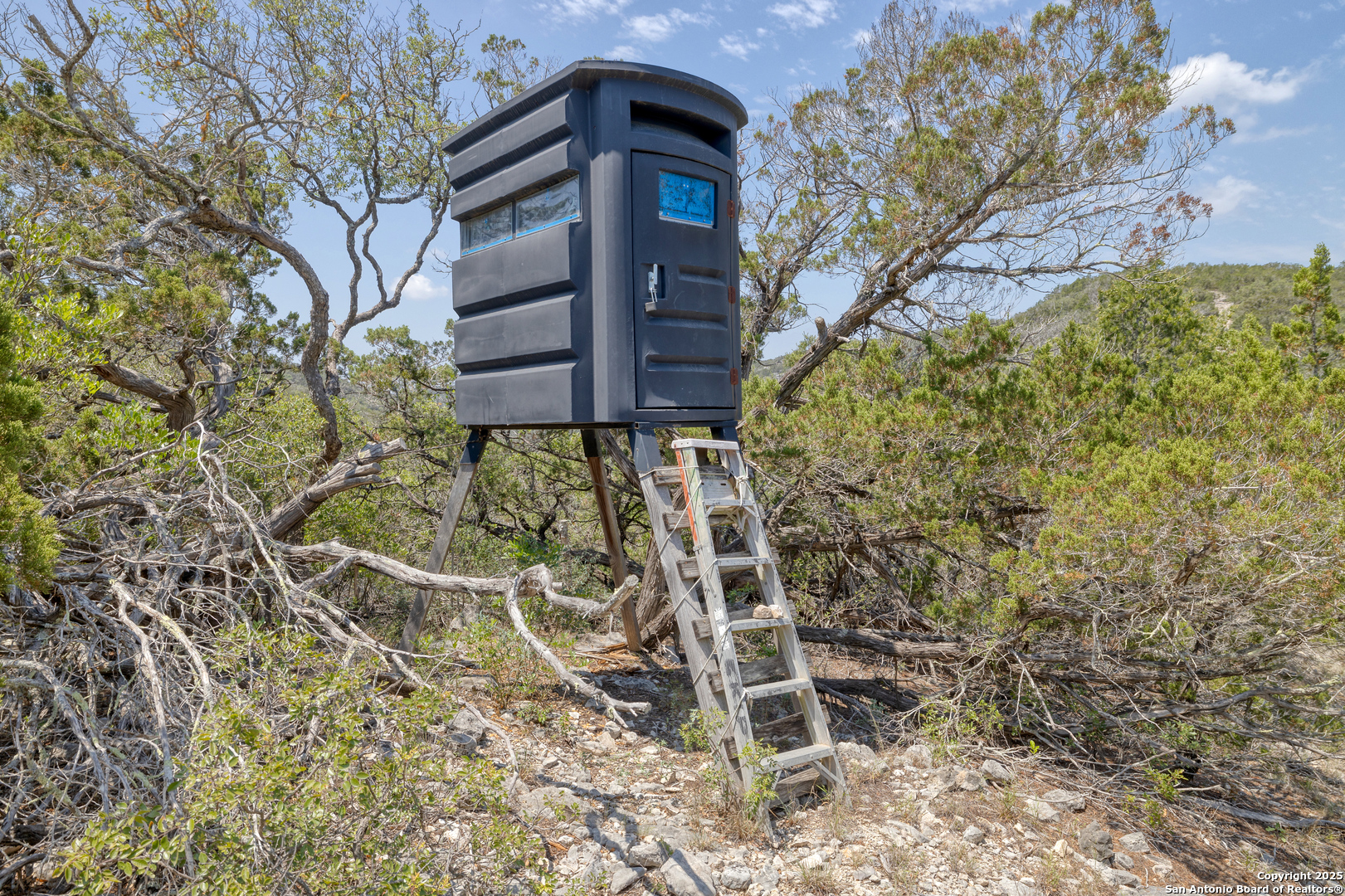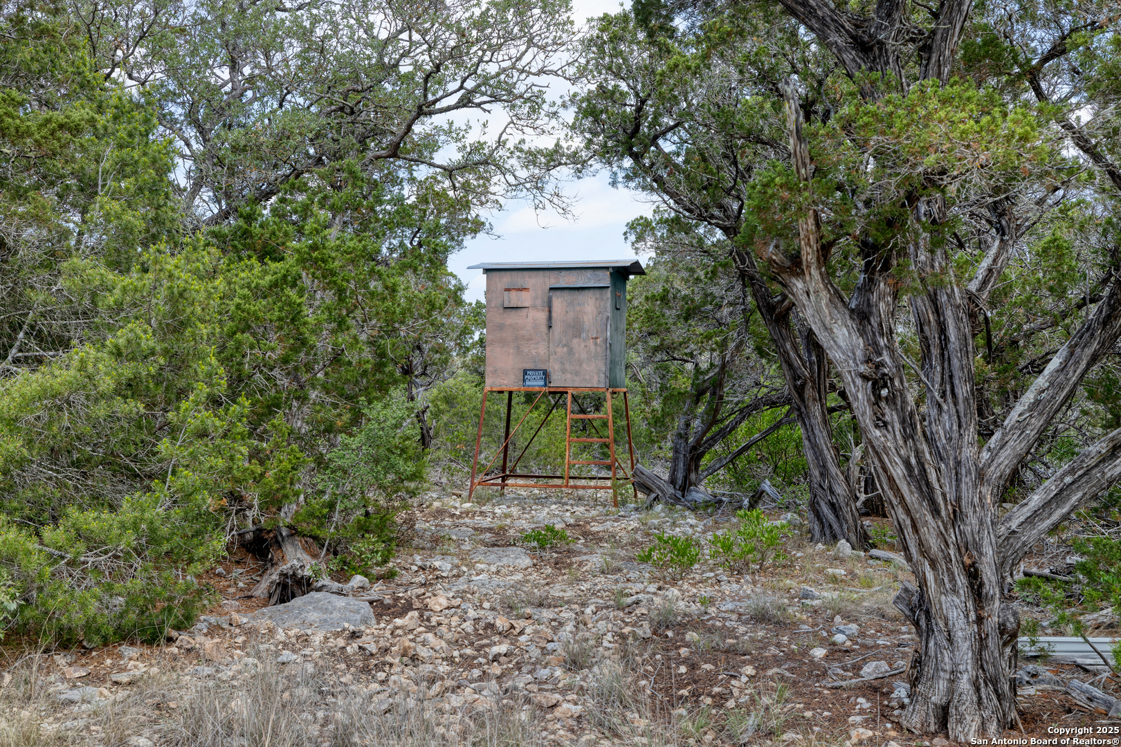 This 94.97 acres is not for just anyone! An active, adventurous person that loves to explore and appreciates seclusion and long beautiful views and has a love for wildlife would appreciate this unique property. It is located approx. 12 miles west of Leakey, off Hwy. 337, then a county- maintained road before a private road to the property. Approaching base camp at the southern border of the property you will have a considerable amount of flat tree covered land. There you will find two large shipping containers with ample storage, a small sleeping cabin and septic, with room left over for some RV's. From base camp there is an easy walk to a cave big enough to stand up in with several drop-down caverns that could be opened up for further exploration. From there the land cascades into a massive canyon replete with a wet weather creek and at least one spring that appears to be permanent, furnishing the wildlife, (including white tail, aoudad, wild hogs and turkey) with plenty of water. This particular spring is rock bottom and could possibly be dammed. Blinds, feeders, hog trap convey and if you are the person described above, you will not be disappointed!