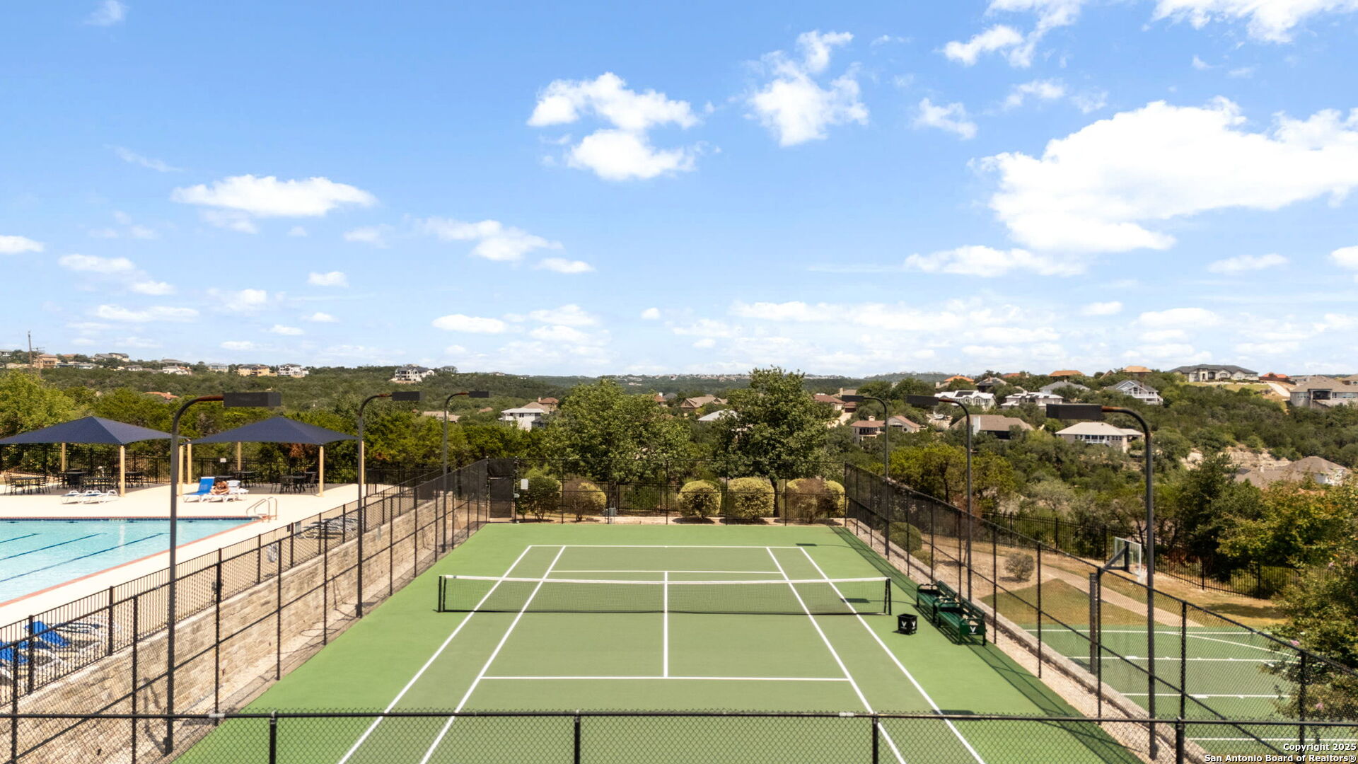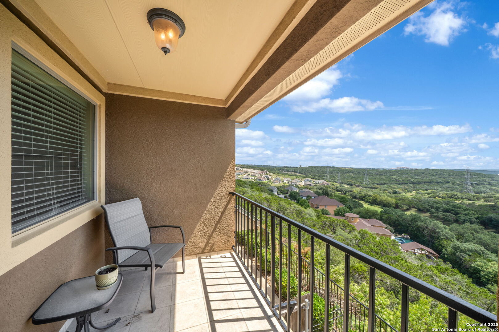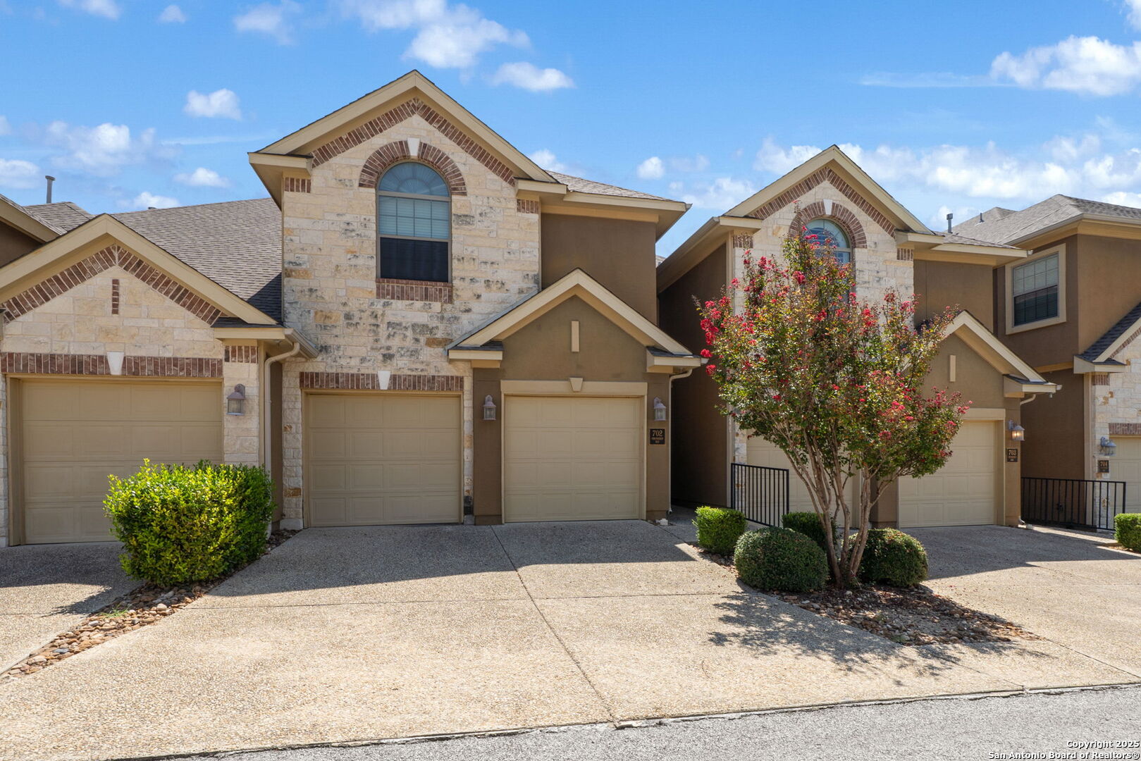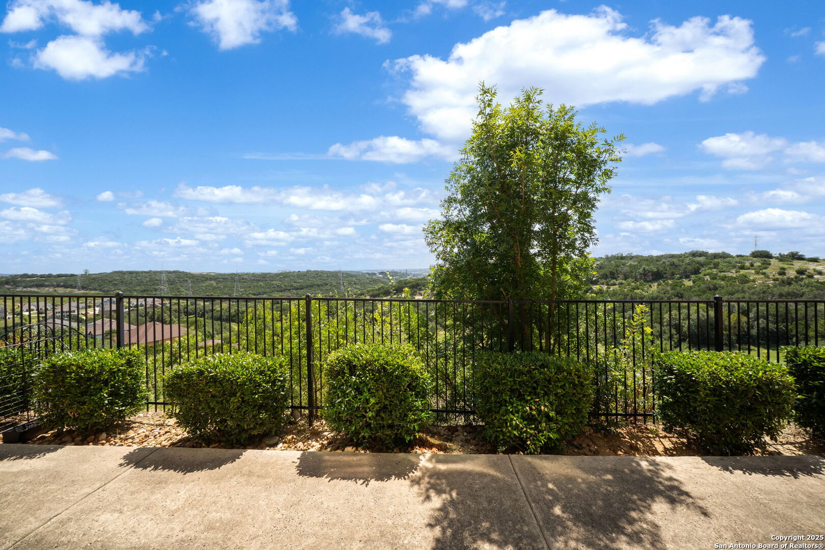 What a view! Who knew you could see downtown from this 4 bedroom 3.5 bath condo in a gated community near UTSA and the MedCenter. This unit has a secondary bedroom with full bath downstairs along with a large game room upstairs. Enjoy the fireworks nightly from Fiesta Tx from the balcony off the owners retreat or with guest off of the back patio that over looks the Palmer course. There is ample storage with a two car garage. Gated community with state of the art amenities to include sports courts olympic size pool quality gym and more.