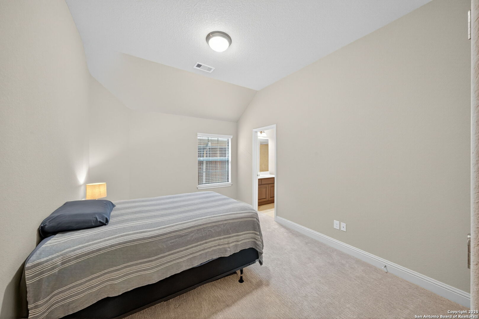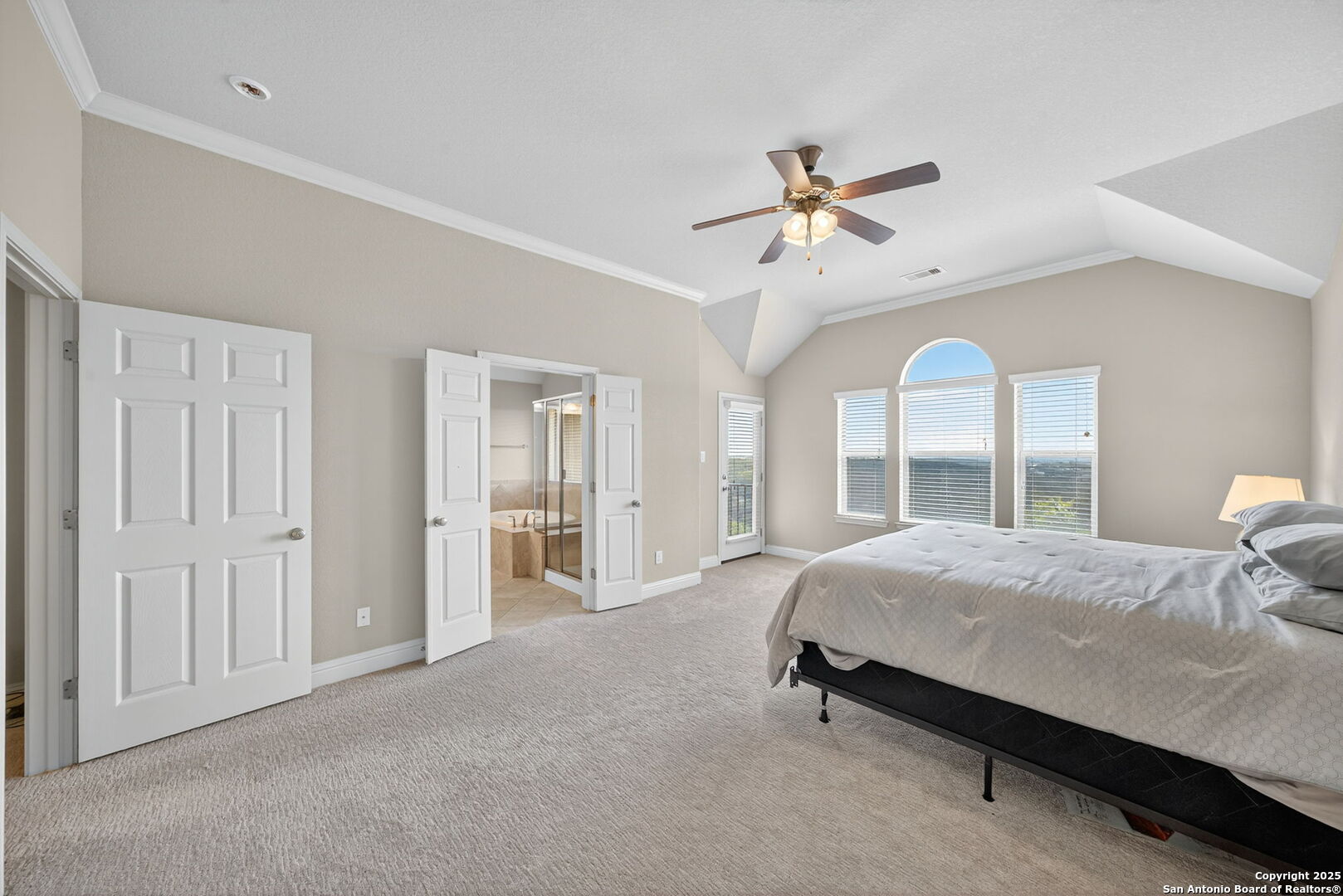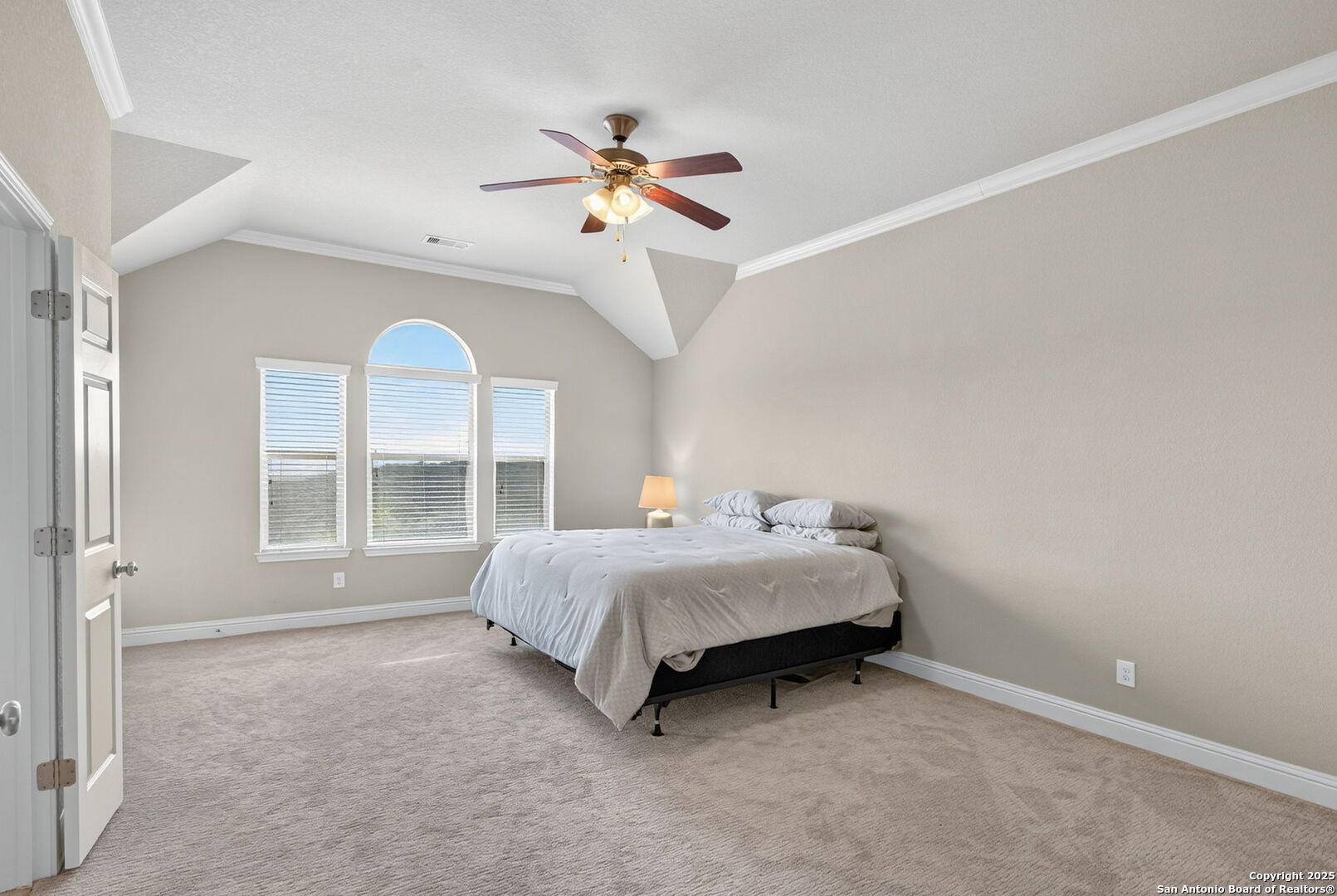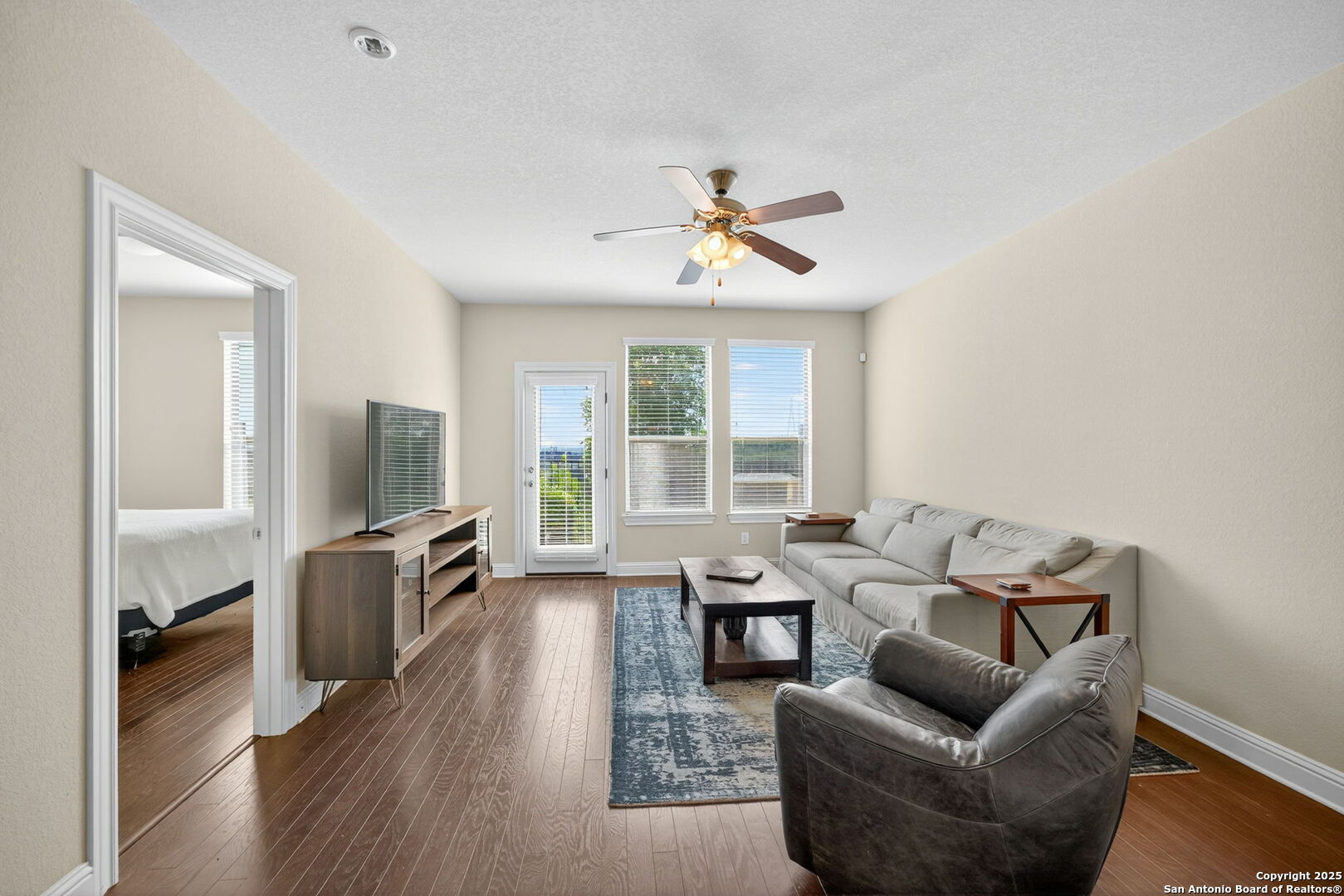 What a view! Who knew you could see downtown from this 4 bedroom 3.5 bath condo in a gated community near UTSA and the MedCenter. This unit has a secondary bedroom with full bath downstairs along with a large game room upstairs. Enjoy the fireworks nightly from Fiesta Tx from the balcony off the owners retreat or with guest off of the back patio that over looks the Palmer course. There is ample storage with a two car garage. Gated community with state of the art amenities to include sports courts olympic size pool quality gym and more.