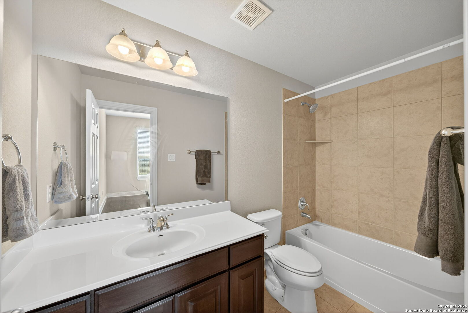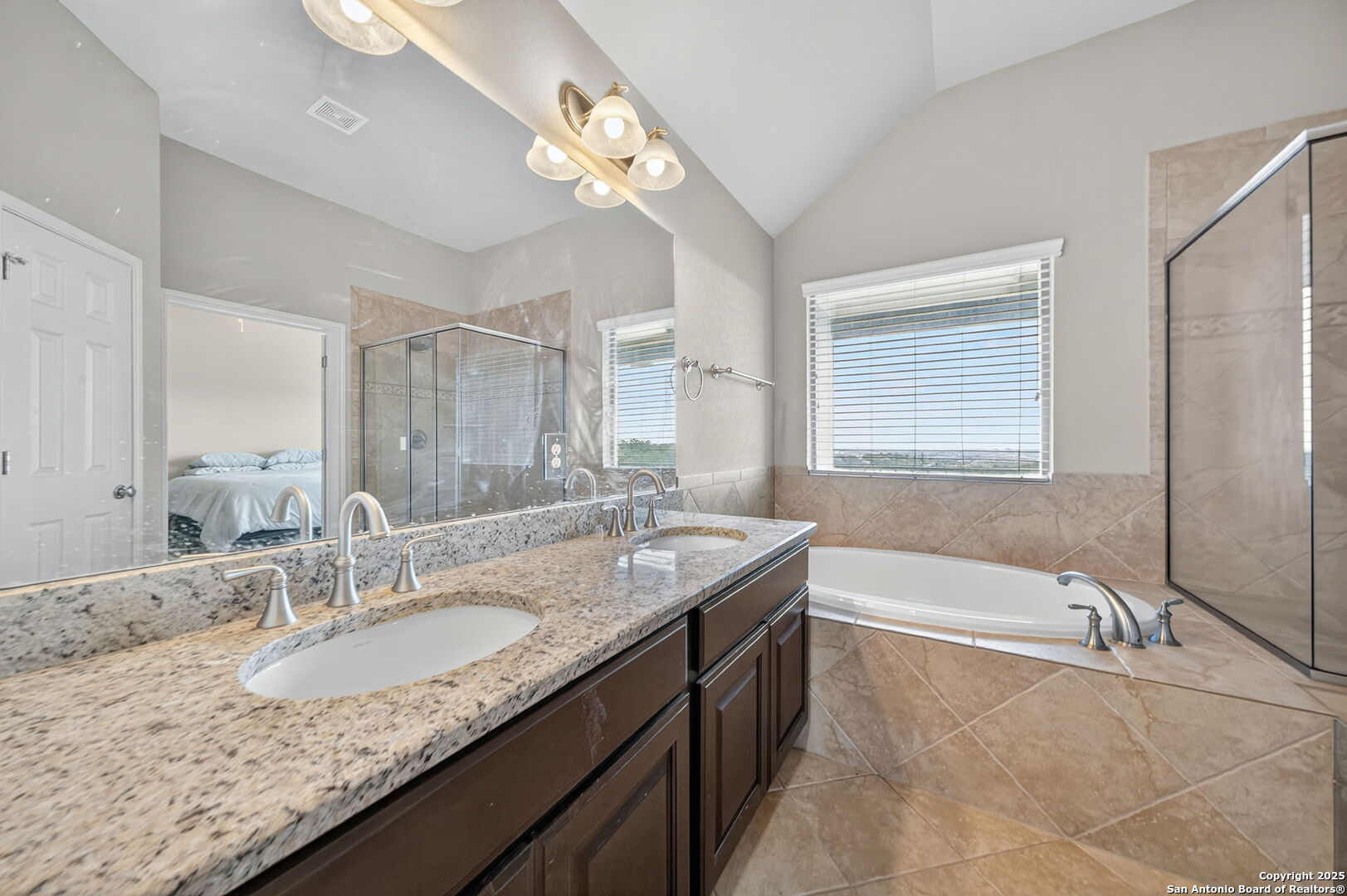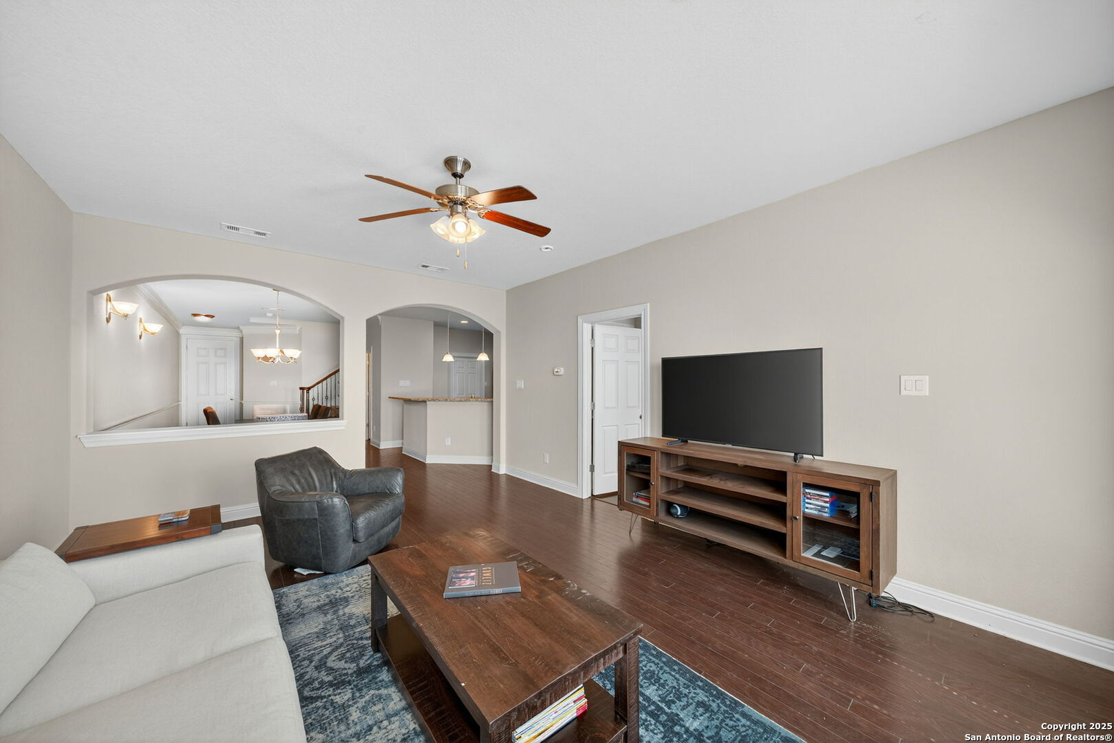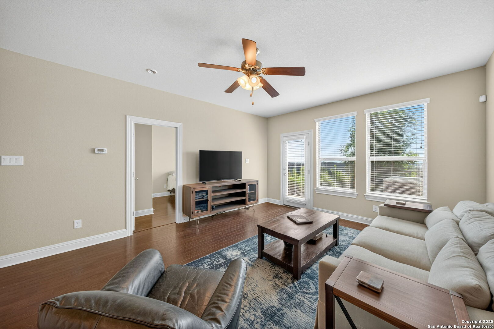 What a view! Who knew you could see downtown from this 4 bedroom 3.5 bath condo in a gated community near UTSA and the MedCenter. This unit has a secondary bedroom with full bath downstairs along with a large game room upstairs. Enjoy the fireworks nightly from Fiesta Tx from the balcony off the owners retreat or with guest off of the back patio that over looks the Palmer course. There is ample storage with a two car garage. Gated community with state of the art amenities to include sports courts olympic size pool quality gym and more.