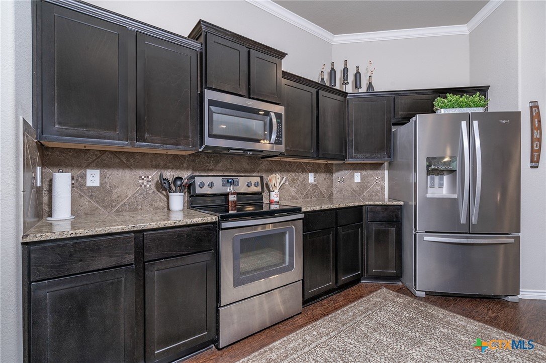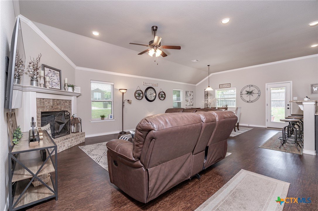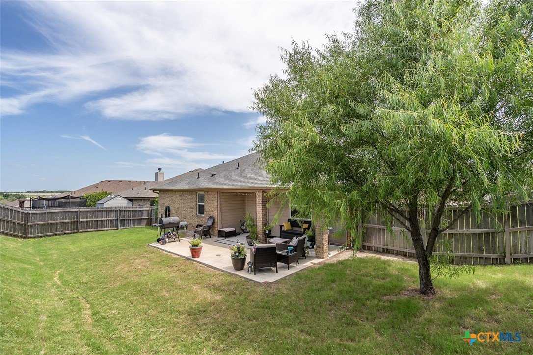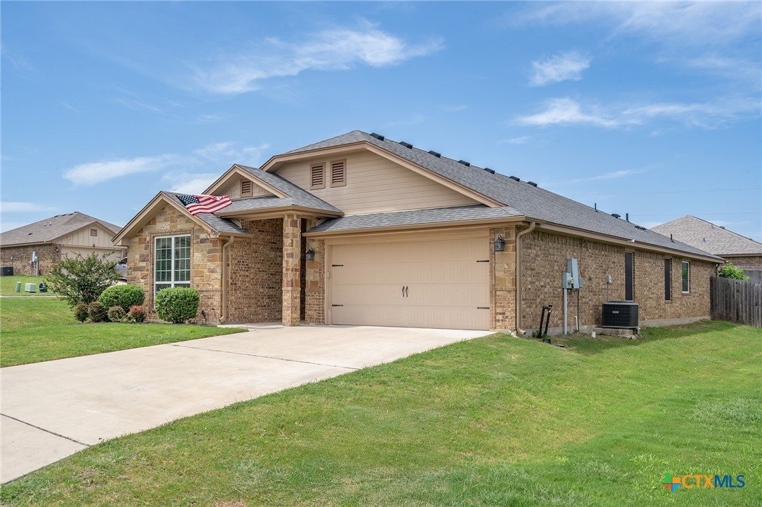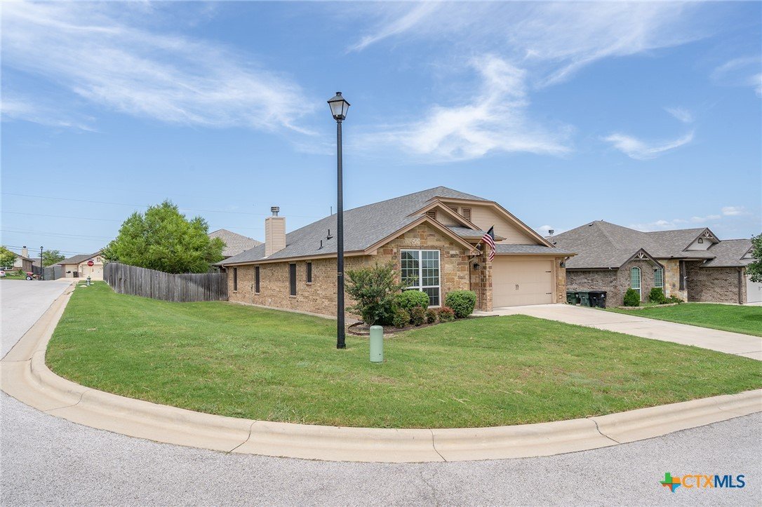 Welcome to this beautifully maintained 3-bedroom, 2-bath home on a desirable corner lot in the Canyon Ridge community of Temple. Built in 2017, this single-story residence offers 1,905 sq ft of open-concept living, featuring a spacious living room with a cozy fireplace and a modern kitchen adorned with granite countertops, elegant cabinetry, and stainless-steel appliances. The primary suite boasts a large walk-in closet, dual vanities, a soaking tub, and a separate shower. Enjoy luxury vinyl plank flooring in the main areas, plush carpet in the bedrooms, energy-efficient HVAC, and a two-car garage. Relax or entertain in the fully fenced backyard with a covered patio. With no HOA and convenient access to schools, shopping, Baylor Scott & White Medical Center, and major roadways, this move-in ready home delivers the perfect blend of comfort, flexibility, and location. Schedule your showing today!