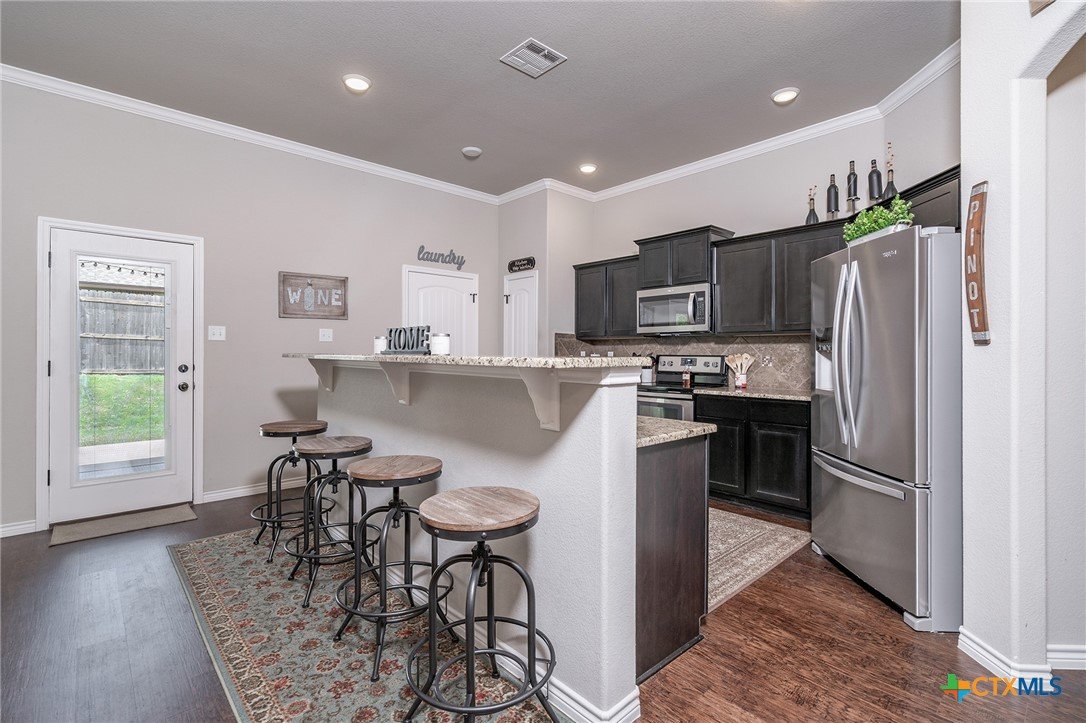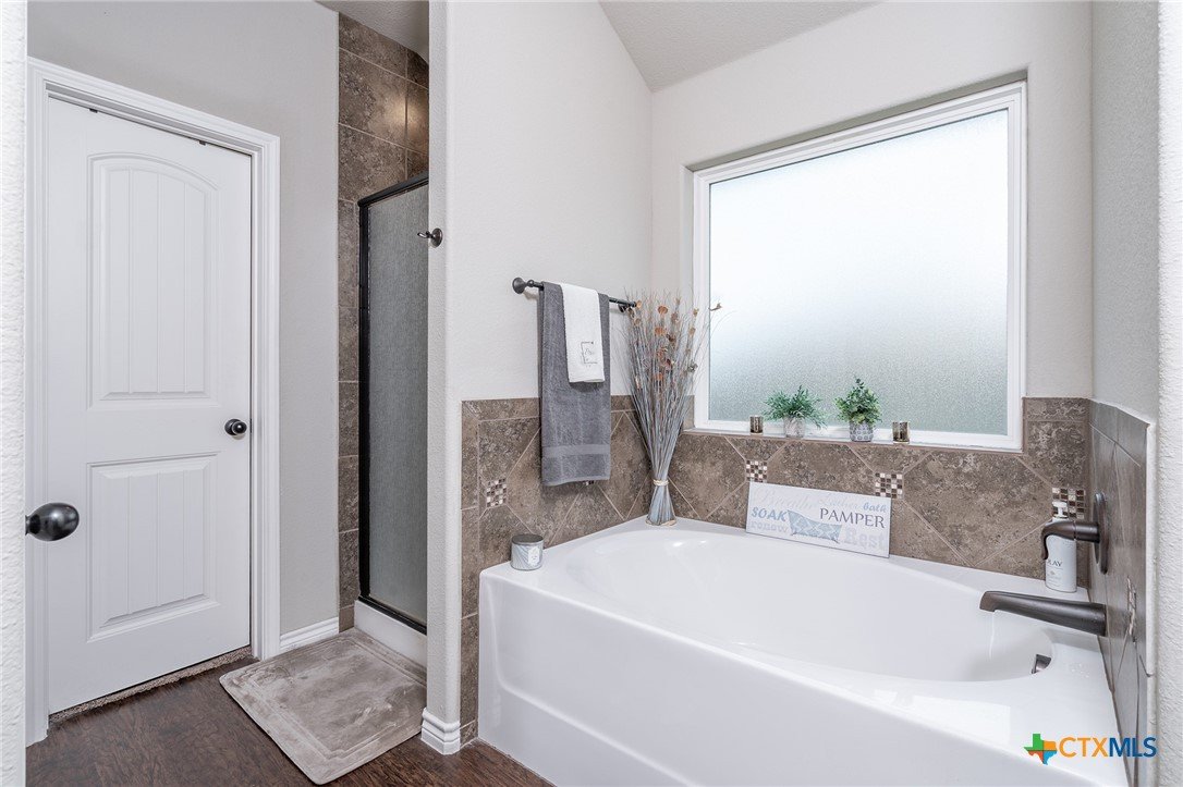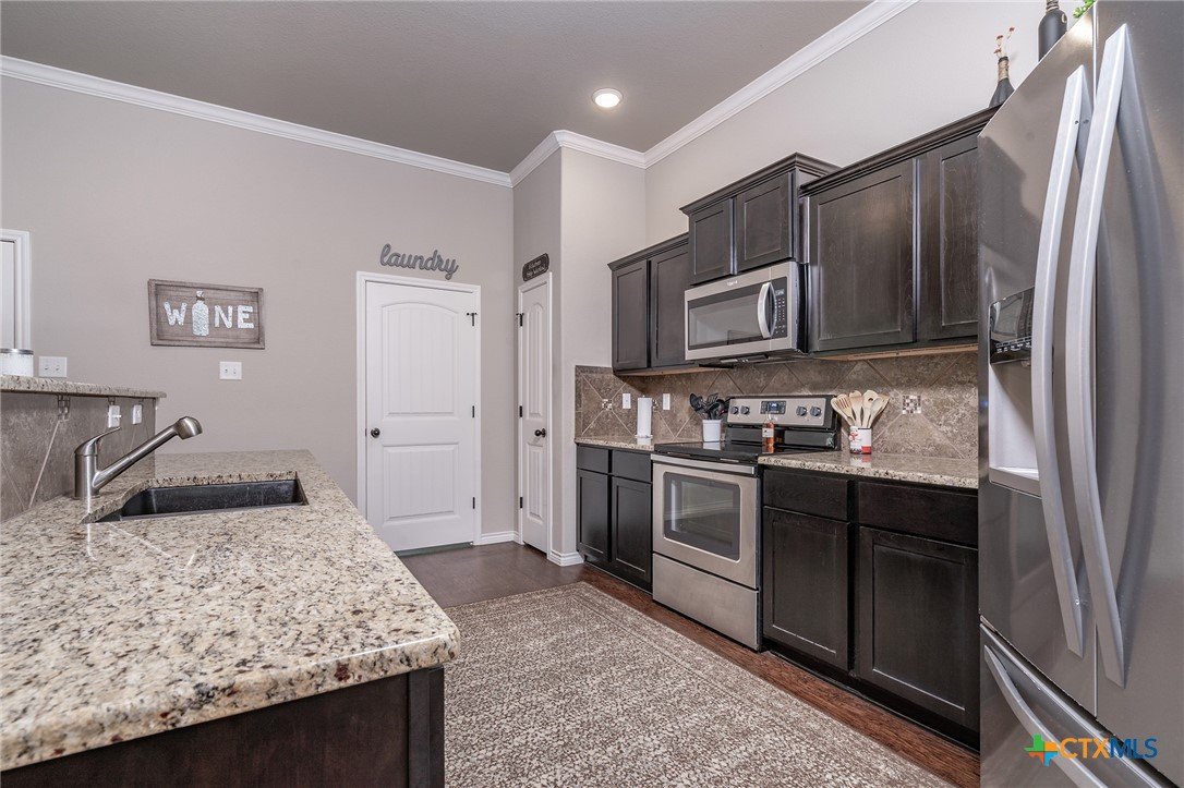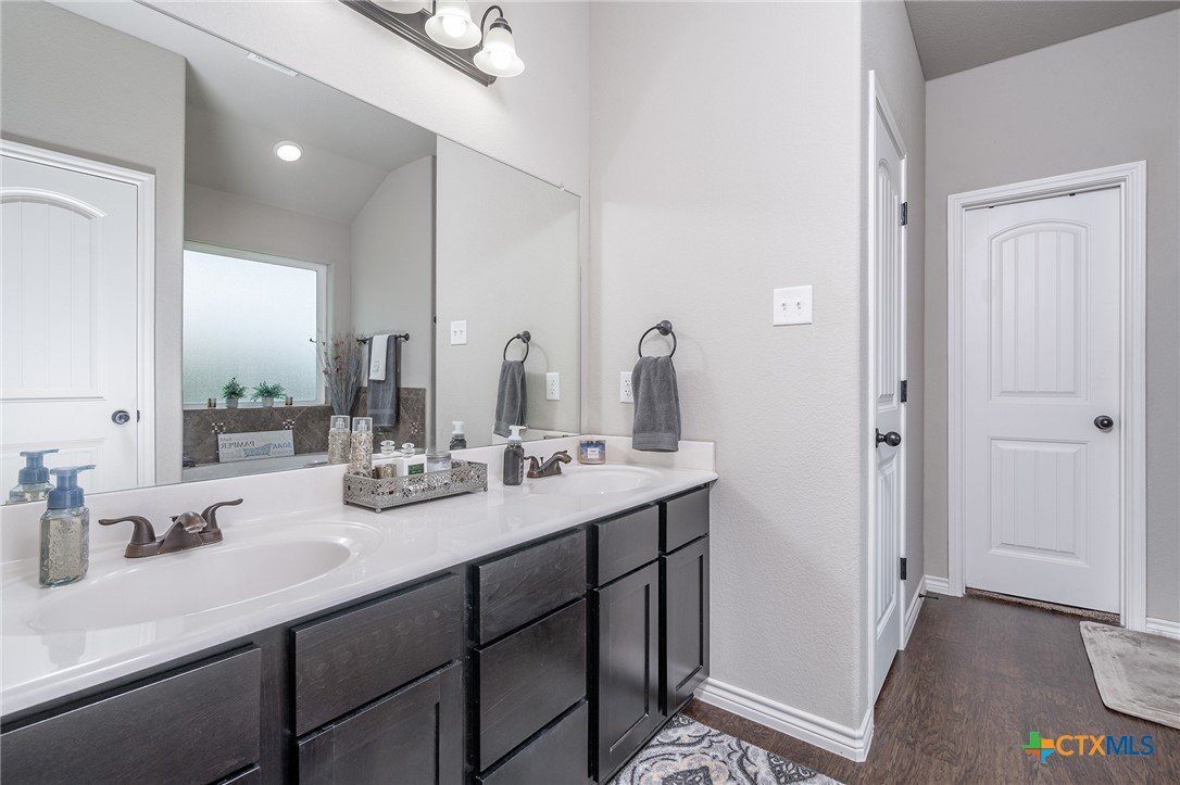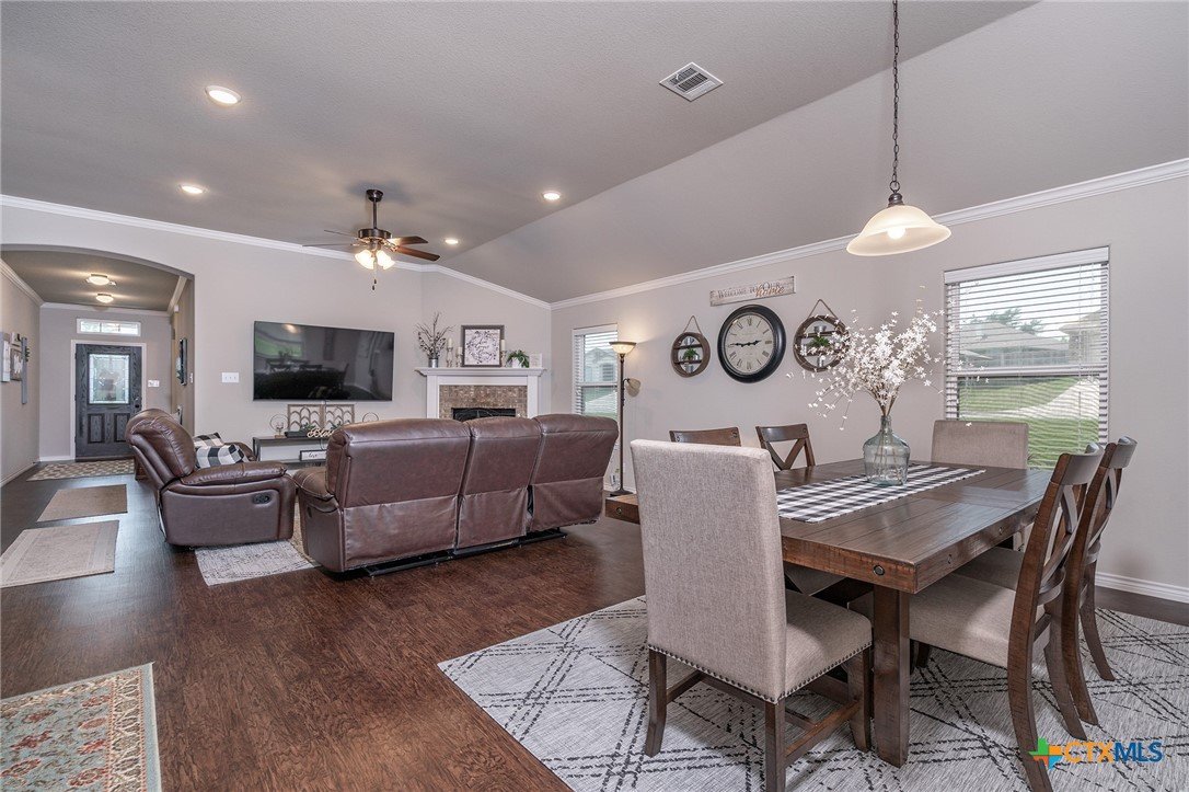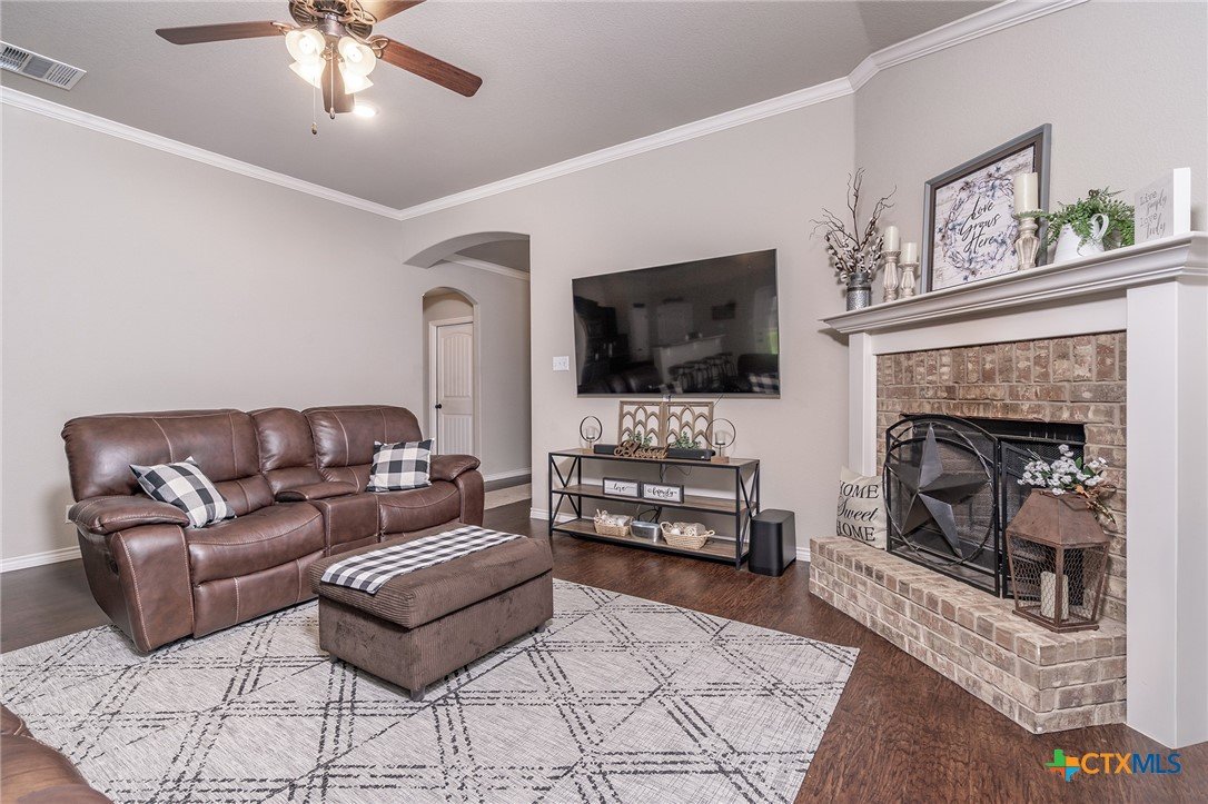 Welcome to this beautifully maintained 3-bedroom, 2-bath home on a desirable corner lot in the Canyon Ridge community of Temple. Built in 2017, this single-story residence offers 1,905 sq ft of open-concept living, featuring a spacious living room with a cozy fireplace and a modern kitchen adorned with granite countertops, elegant cabinetry, and stainless-steel appliances. The primary suite boasts a large walk-in closet, dual vanities, a soaking tub, and a separate shower. Enjoy luxury vinyl plank flooring in the main areas, plush carpet in the bedrooms, energy-efficient HVAC, and a two-car garage. Relax or entertain in the fully fenced backyard with a covered patio. With no HOA and convenient access to schools, shopping, Baylor Scott & White Medical Center, and major roadways, this move-in ready home delivers the perfect blend of comfort, flexibility, and location. Schedule your showing today!