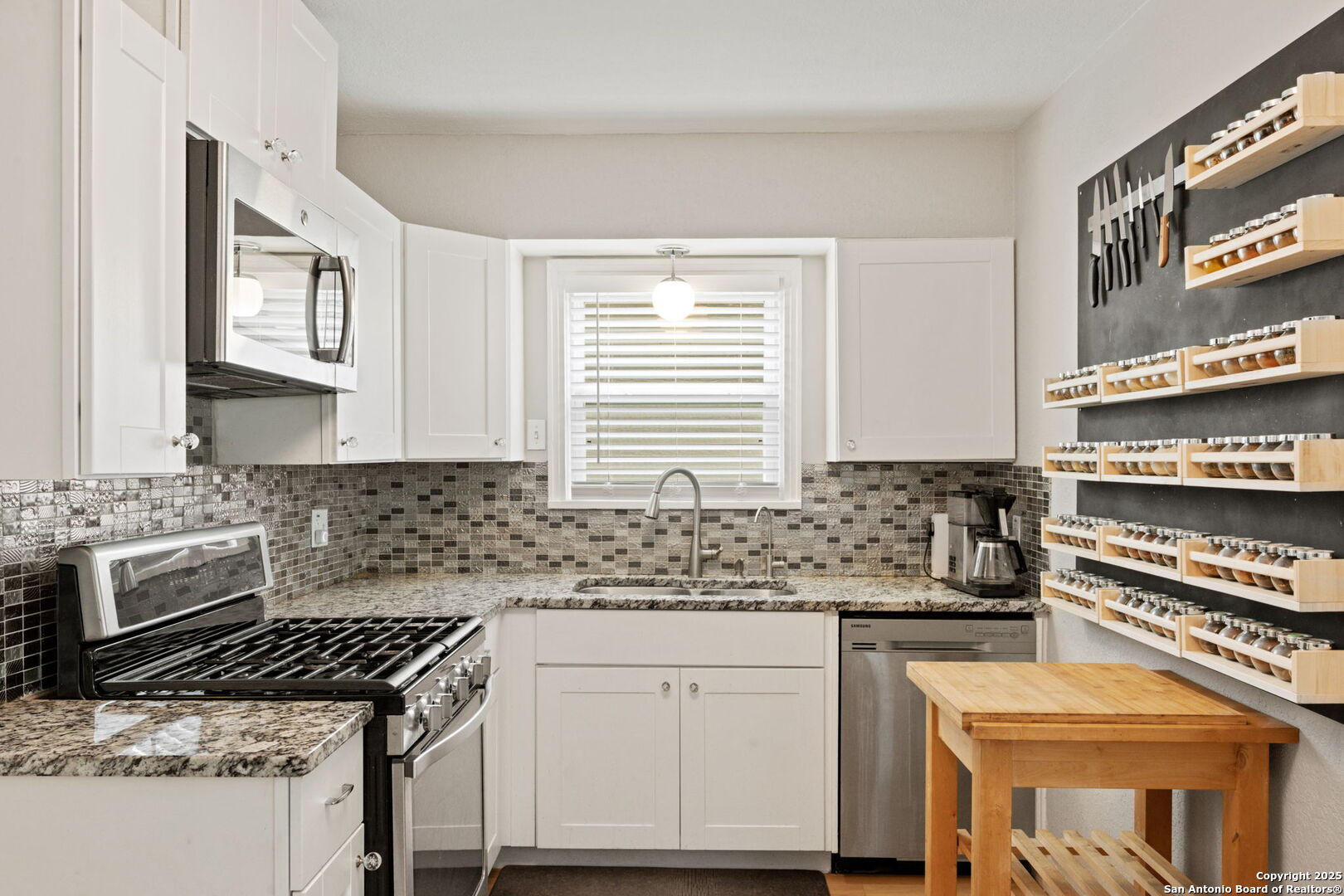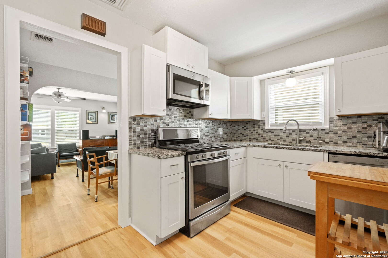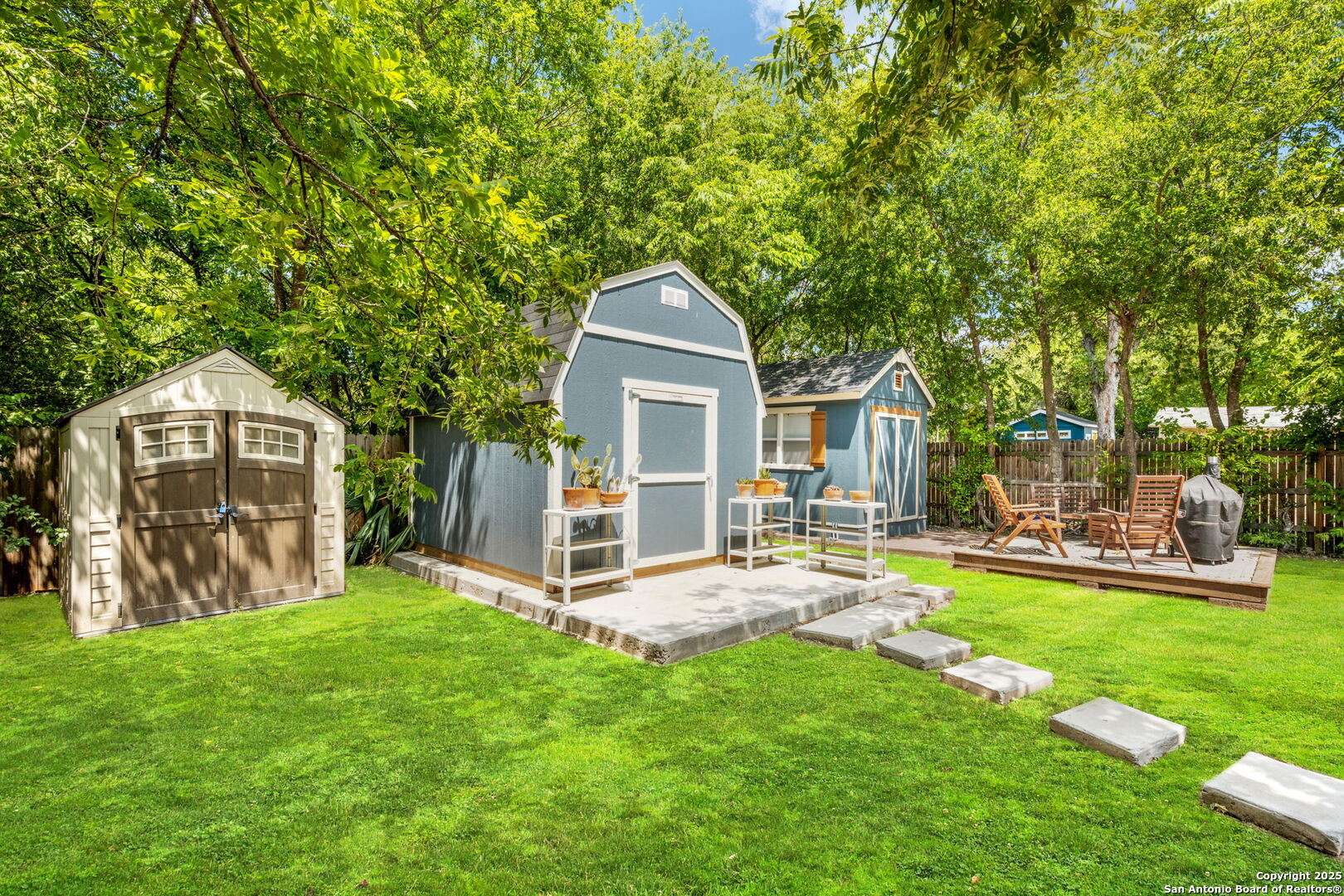 Welcome to this beautifully renovated 2-bedroom, 1-bath home in the vibrant and ever-evolving Beacon Hill neighborhood. Step inside to a surprisingly spacious and inviting layout with an open feel. The updated kitchen shines with granite countertops, stainless steel appliances, glass tile backsplash, and gas cooking-a chef's dream! The Bedrooms are comfortably sized, while the renovated bathroom features a new tiled shower and vanity for a fresh modern look. Additional upgrades include new light fixtures, ceiling fans, Elfa shelving, and a Kinetico water softener with reverse osmosis. Relax on the large front porch with your morning coffee, or enjoy the spacious backyard-ideal for pets, gardening, and entertaining. A new cedar privacy fence with galvanized steel posts provides style and peace of mind. A 200 sq ft Tuff Shed on a concrete pad offers bonus storage with a transferable warranty. One of the home's highlights is the newly finished detached office/studio that is air-conditioned with a Bosch mini-split, fully insulated, wired with electrical, CAT6 ethernet, and finished with drywall and flooring. This versatile space is perfect for a home office, art studio, guest retreat and endless possibilities. There are major upgrades and improvements such as a new Trane 2-ton 15.2 SEER heat pump and smart thermostat with warranty, foundation reinforcement with safety jacks and CMUs with warranty, 200-amp electrical service upgrade with attic/bedroom/living room coax and CAT6 ethernet, sealed attic with pull-down ladder and service platform, gutters with warranty, and more. Beacon Hill is known for its eclectic charm, walkability, and community spirit. From your doorstep, you're literally steps away from a thriving micro-district of local favorites: Chris Madrid's, Niki's Tokyo Inn, JAX, Julia's Bistro and bar, Blanco Cafe, Beacon Hill Market & Grill, Lolita's on Blanco, Bright Coffee, Roundabout Bodega, vintage shops, artist studios, and more. You may also enjoy Second Friday Blanco Block Walk. Additionally, you're close to San Pedro Park, H-E-B, multiple universities, The Quarry, San Antonio Zoo, Japanese Tea Garden, downtown San Antonio, Pearl, St. Mary's Strip, Brackenridge Park and major highways for easy navigation around the city. This home combines historic neighborhood charm with thoughtful modern updates offering true peace of mind. Whether you're searching for a cozy personal retreat, a functional live-work setup, or a centrally located gem in one of San Antonio's most exciting neighborhoods, 827 W Lynwood Ave is ready to welcome you home!