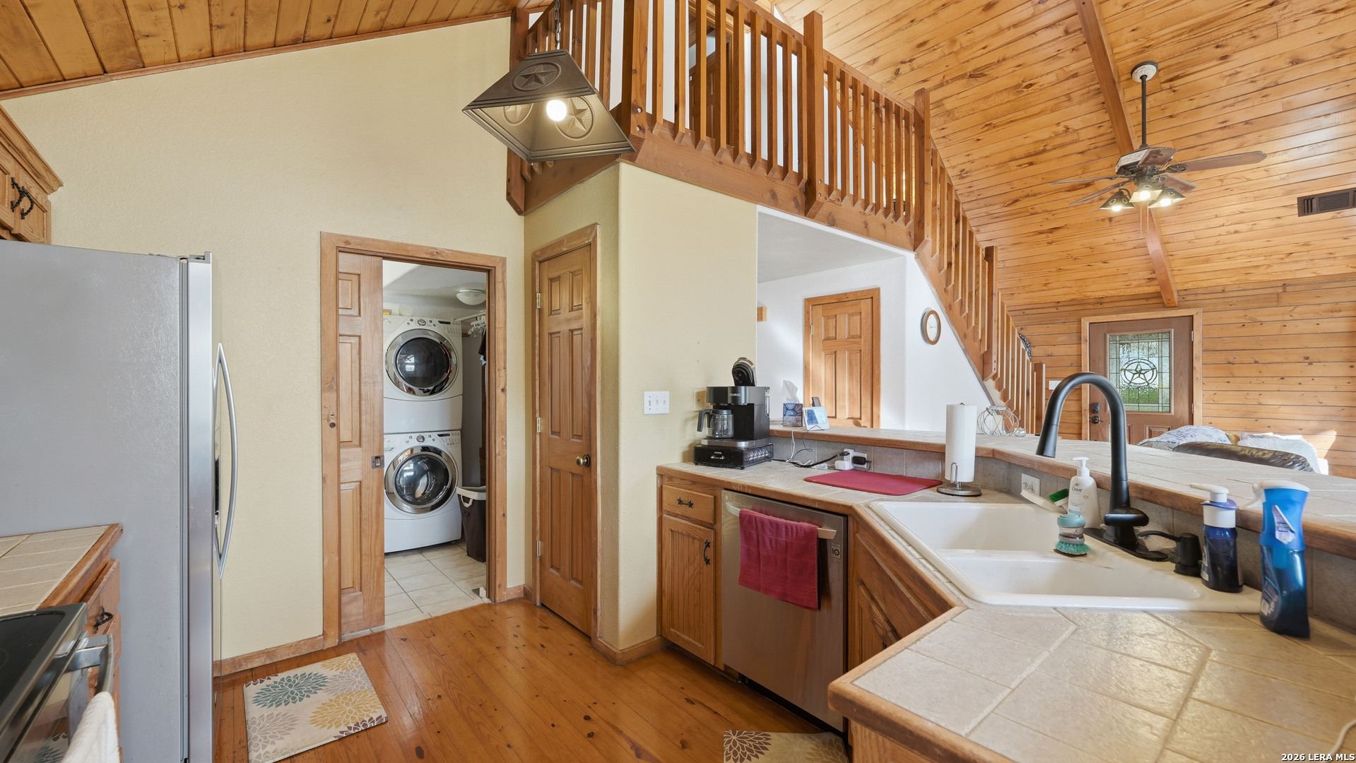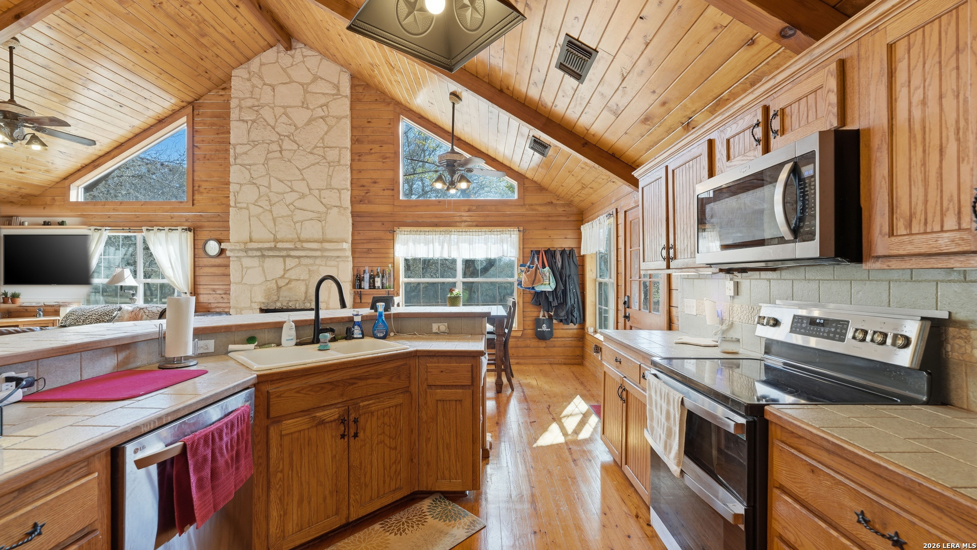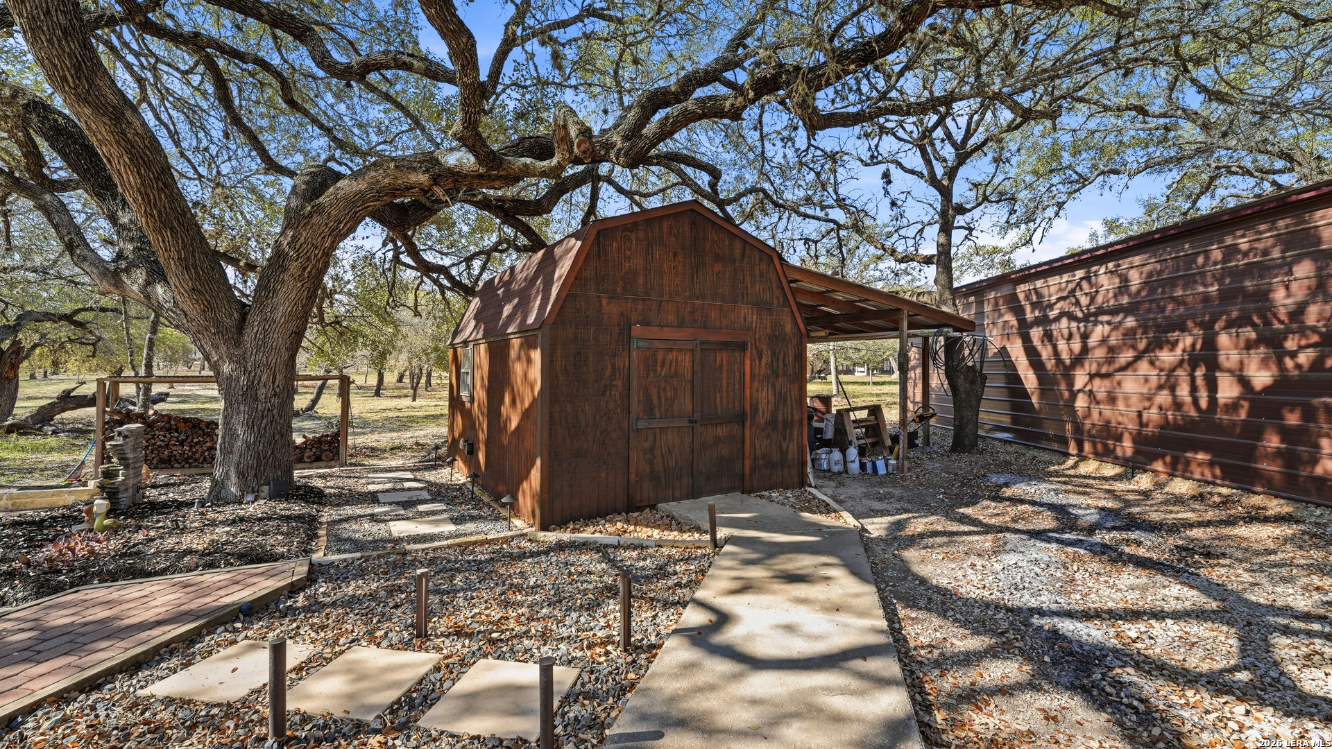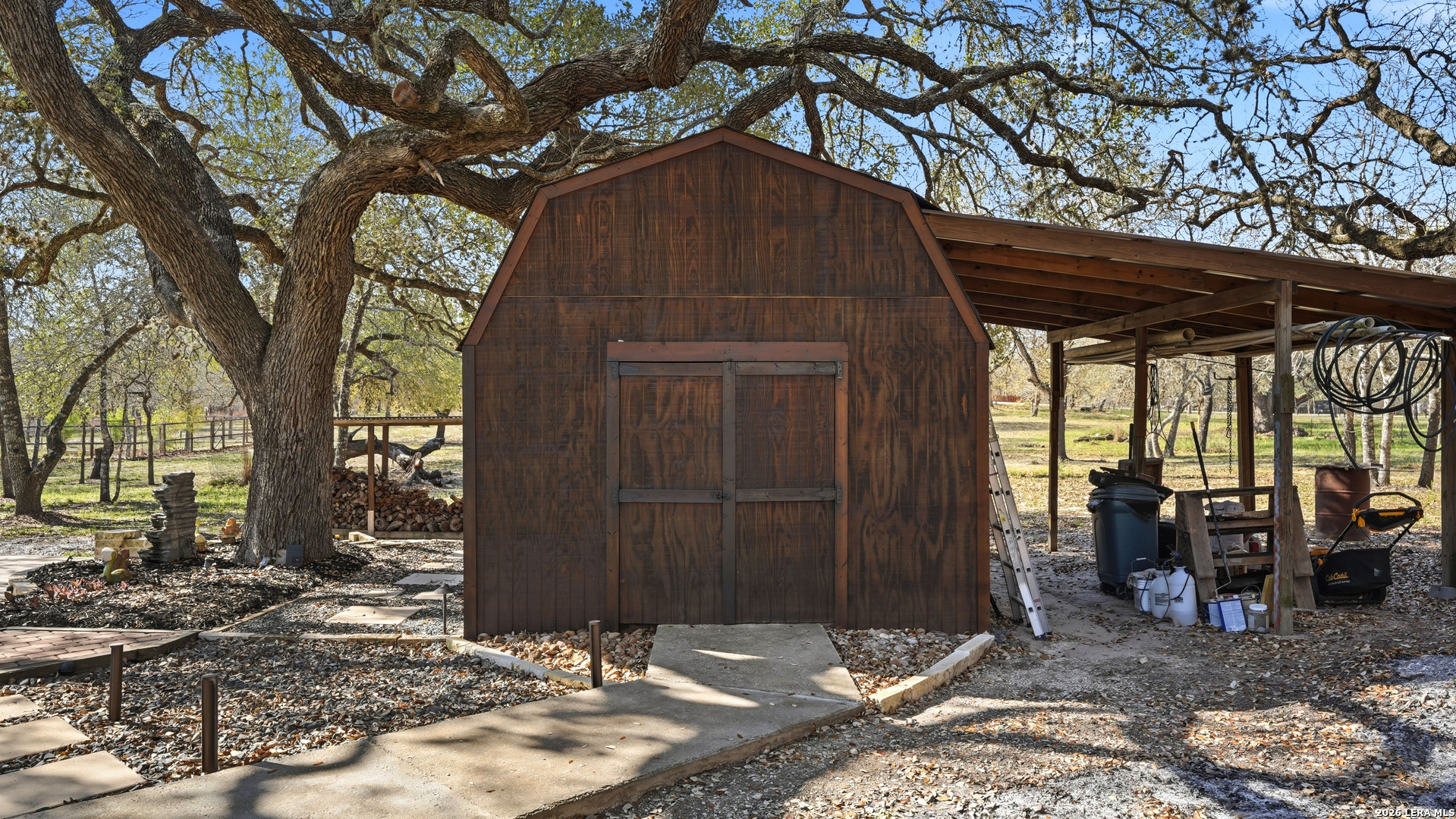 Gorgeous Custom Log Cabin on just over 5 acres with road frontage on both sides. Horses welcome! This home is shaded by mature oak trees. The backyard is built for entertaining with several covered patio areas, inground pool with water feature, landscaping, BBQ grill area with TV and bar. Water well for all irrigation outside. Detached 2 car carport with additional storage and a separate storage shed. The house has tall ceilings with an open floorplan. Downstairs has 2 bedrooms with a full bathroom and upstairs has 1 bedroom and 1 bathroom. The living room features a floor to ceiling fireplace and lots of windows for natural lighting. Kitchen has an open floorplan with wrap around breakfast bar. This is a one of a kind property!! LVISD