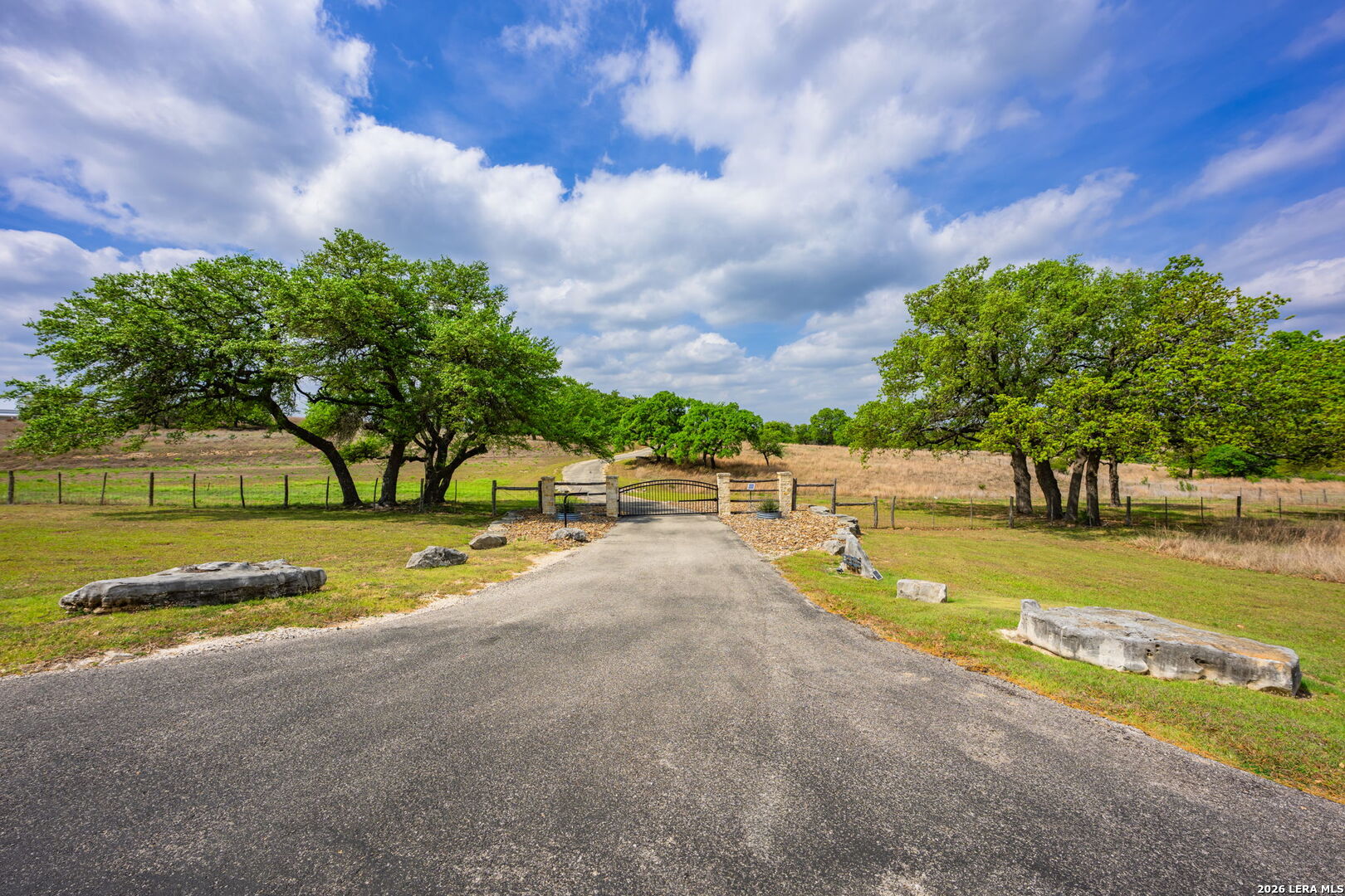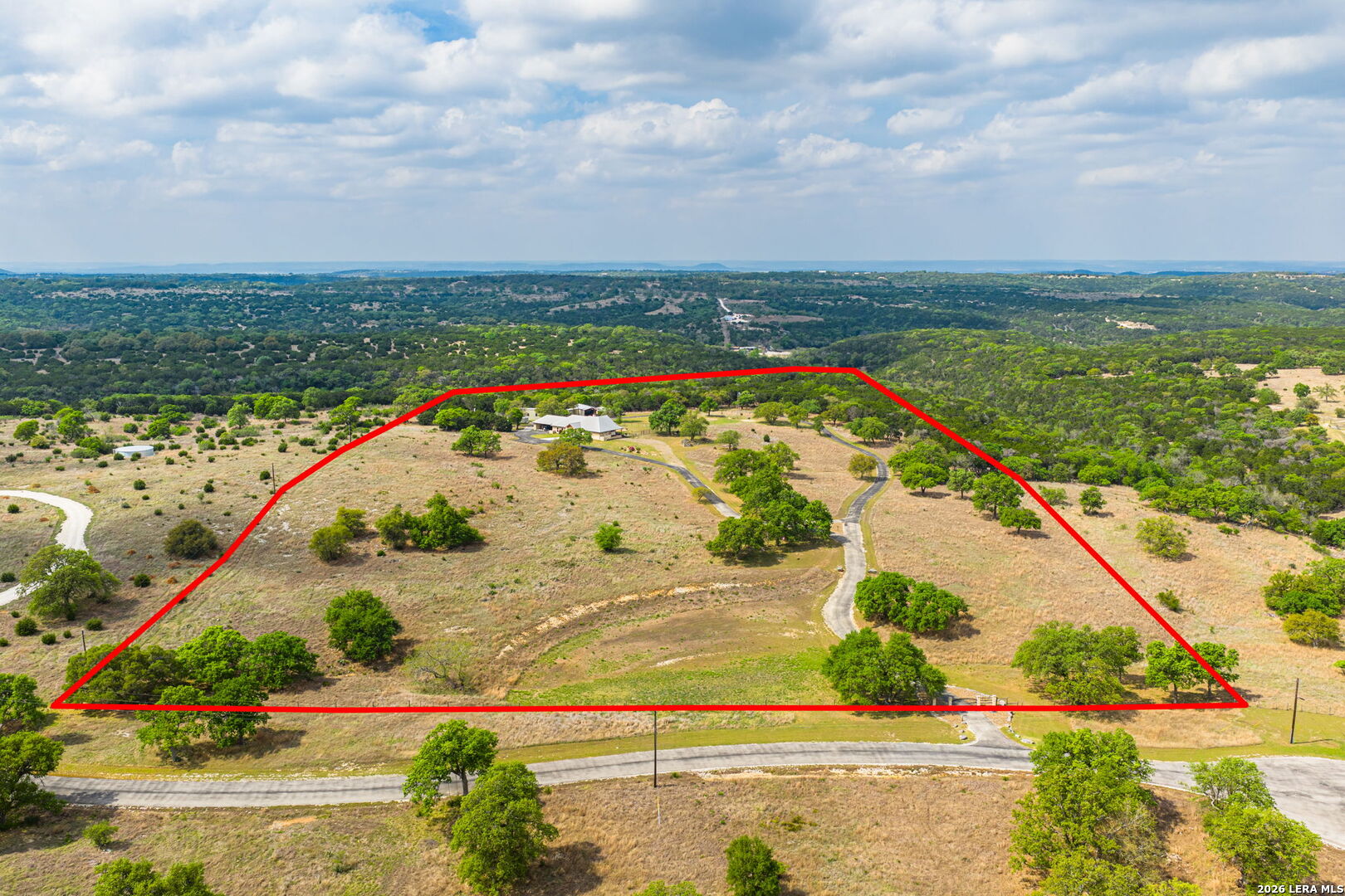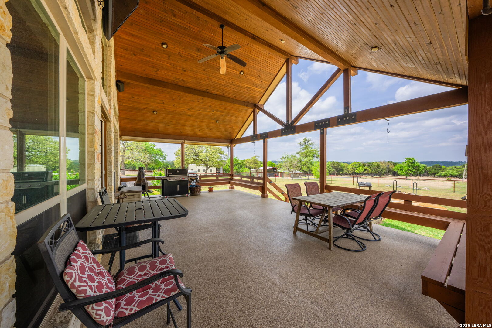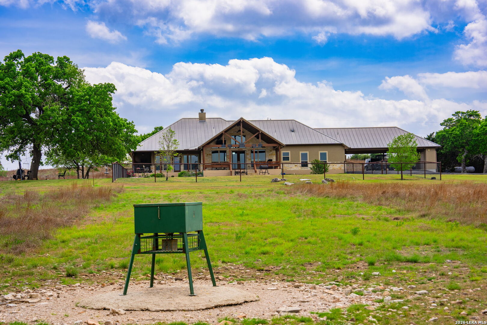 Luxurious country estate nestled on twenty-five acres within a private gated rural ranch setting known as The Quarry at Champee Springs. Custom crafted rock/stucco main home : three bedrooms; three and one-half bathrooms; expansive single living great room; wood burning fireplace; formal dining room; private office with 1/2 bath; stainless steel appliances; six burner gas stove; hickory wood cabinetry; fruitwood stained pine ceilings; wood and tile flooring; in-house vacuum system; covered back porch; fire pit; hot tub; attached side entry three vehicle porte cochere; standing seam metal roof; exterior rain gutters. Main house constructed in 2017 by renowned Hill Country builder Cadillac Custom Homes, known for their high quality craftsmanship. In addition to the main home, the country estate includes a guest house: 640 sq. ft. built in 2008 providing one bedroom, one bathroom, full kitchen and open living area; large metal framed equipment barn with office/bath; oversized Recreational Vehicle barn; foam insulated utility equipment barn; 30,000 gallon metal rain water catchment tank; 4,000 gallon concrete water well cistern; 500 gallon above ground propane tank; authentic metal windmill; home back-up power generator back-up system. The Estate currently maintains a Wildlife Exemption Plan.