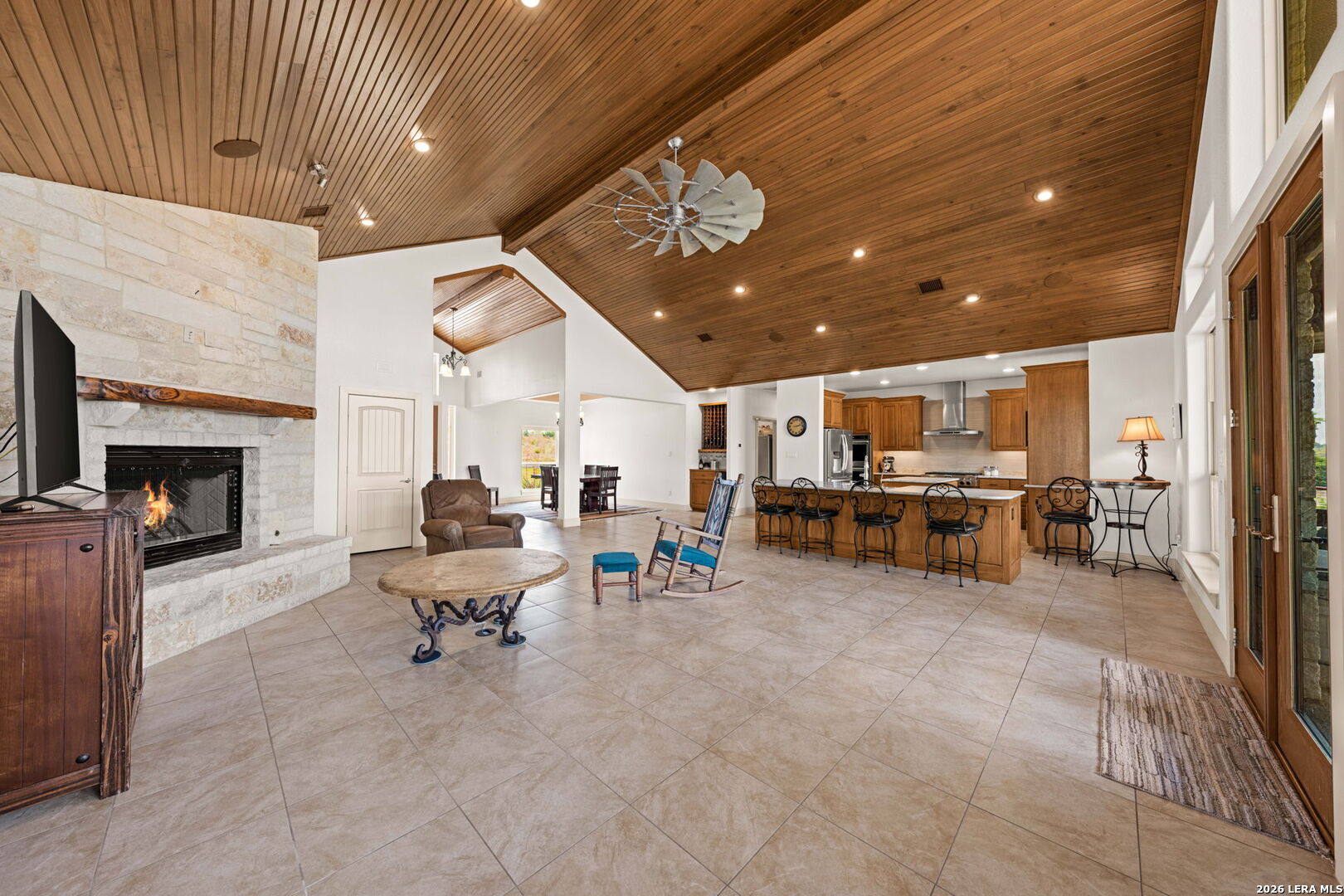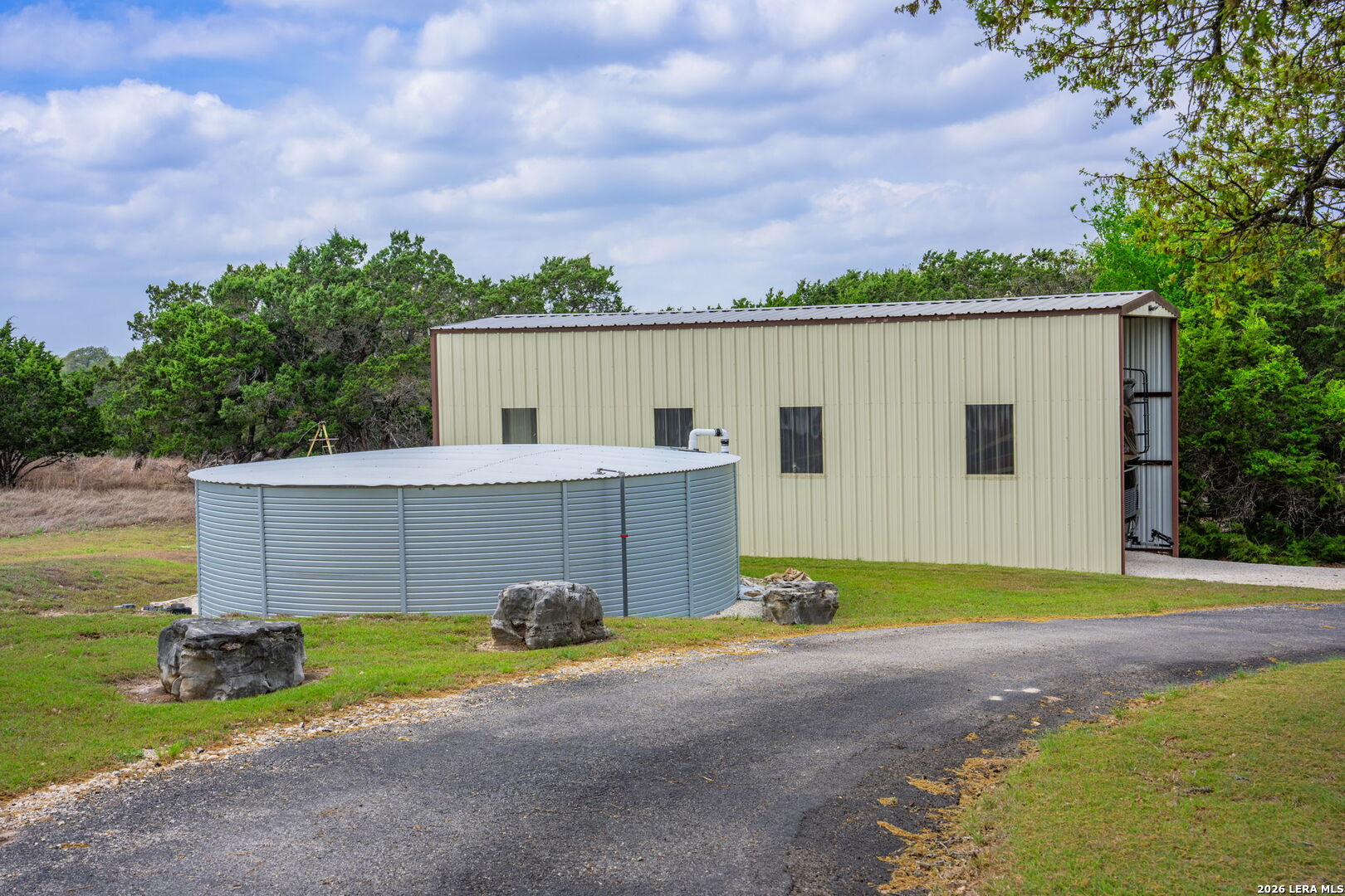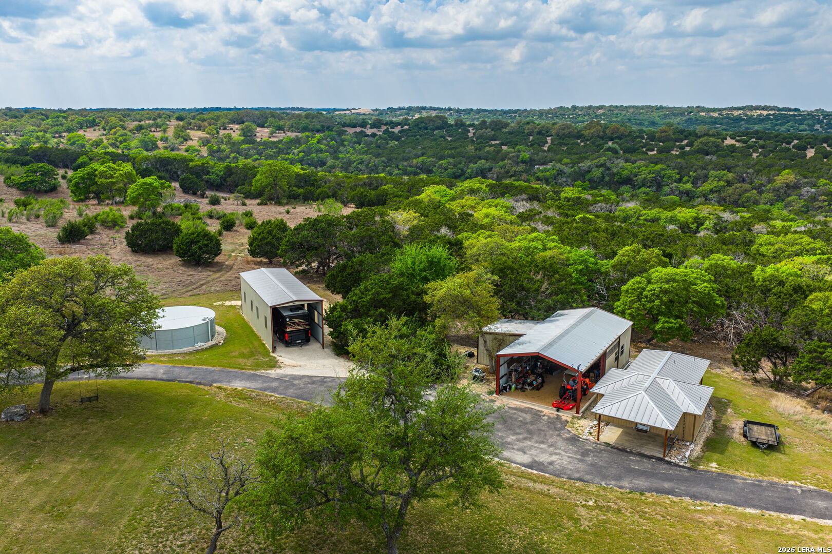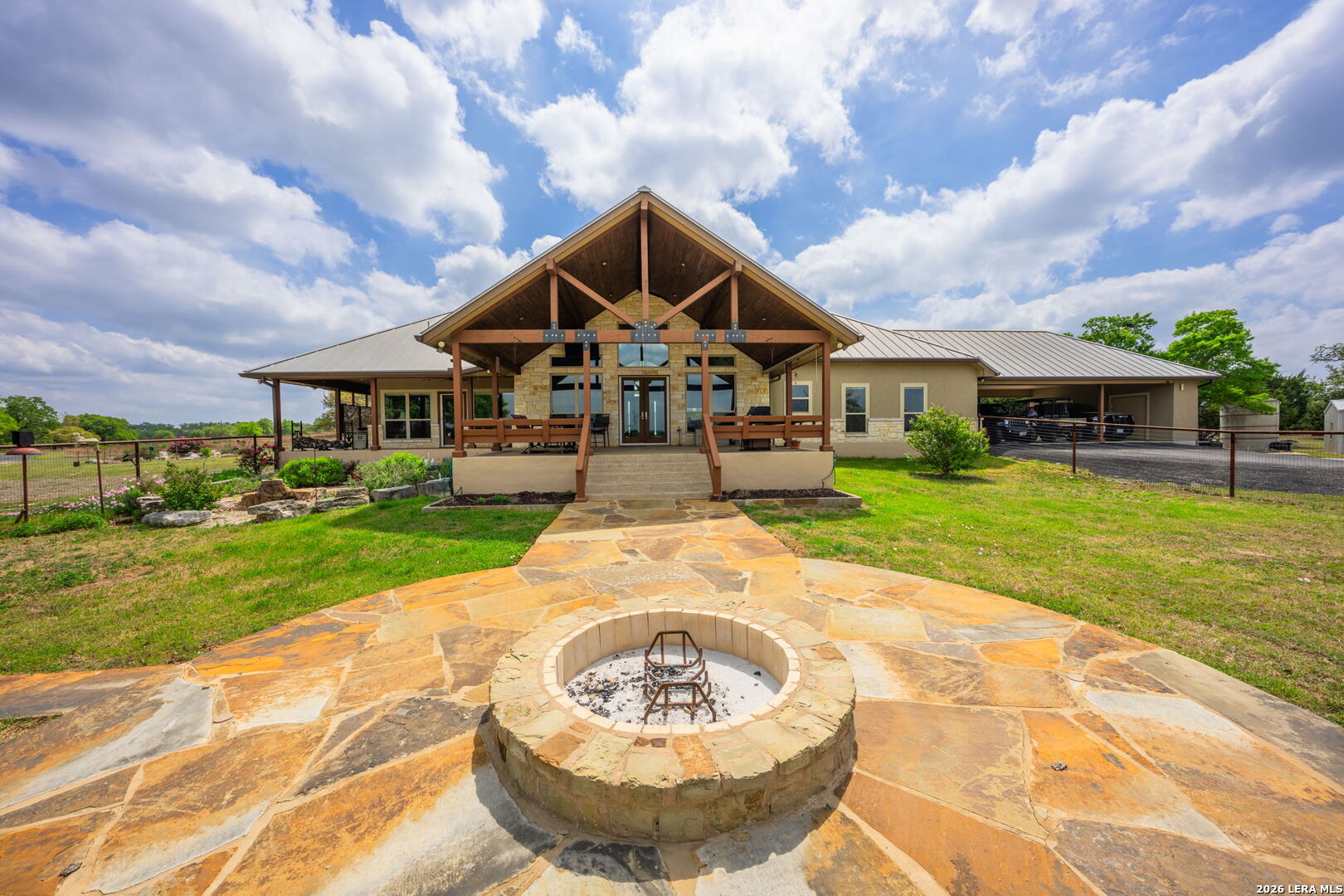 Luxurious country estate nestled on twenty-five acres within a private gated rural ranch setting known as The Quarry at Champee Springs. Custom crafted rock/stucco main home : three bedrooms; three and one-half bathrooms; expansive single living great room; wood burning fireplace; formal dining room; private office with 1/2 bath; stainless steel appliances; six burner gas stove; hickory wood cabinetry; fruitwood stained pine ceilings; wood and tile flooring; in-house vacuum system; covered back porch; fire pit; hot tub; attached side entry three vehicle porte cochere; standing seam metal roof; exterior rain gutters. Main house constructed in 2017 by renowned Hill Country builder Cadillac Custom Homes, known for their high quality craftsmanship. In addition to the main home, the country estate includes a guest house: 640 sq. ft. built in 2008 providing one bedroom, one bathroom, full kitchen and open living area; large metal framed equipment barn with office/bath; oversized Recreational Vehicle barn; foam insulated utility equipment barn; 30,000 gallon metal rain water catchment tank; 4,000 gallon concrete water well cistern; 500 gallon above ground propane tank; authentic metal windmill; home back-up power generator back-up system. The Estate currently maintains a Wildlife Exemption Plan.