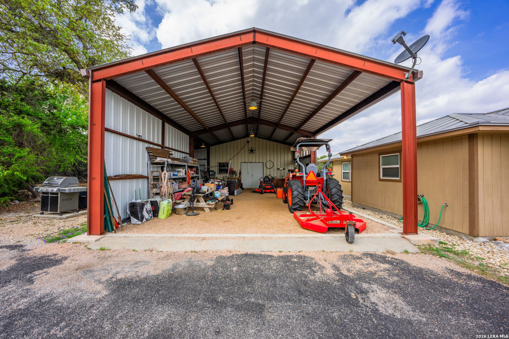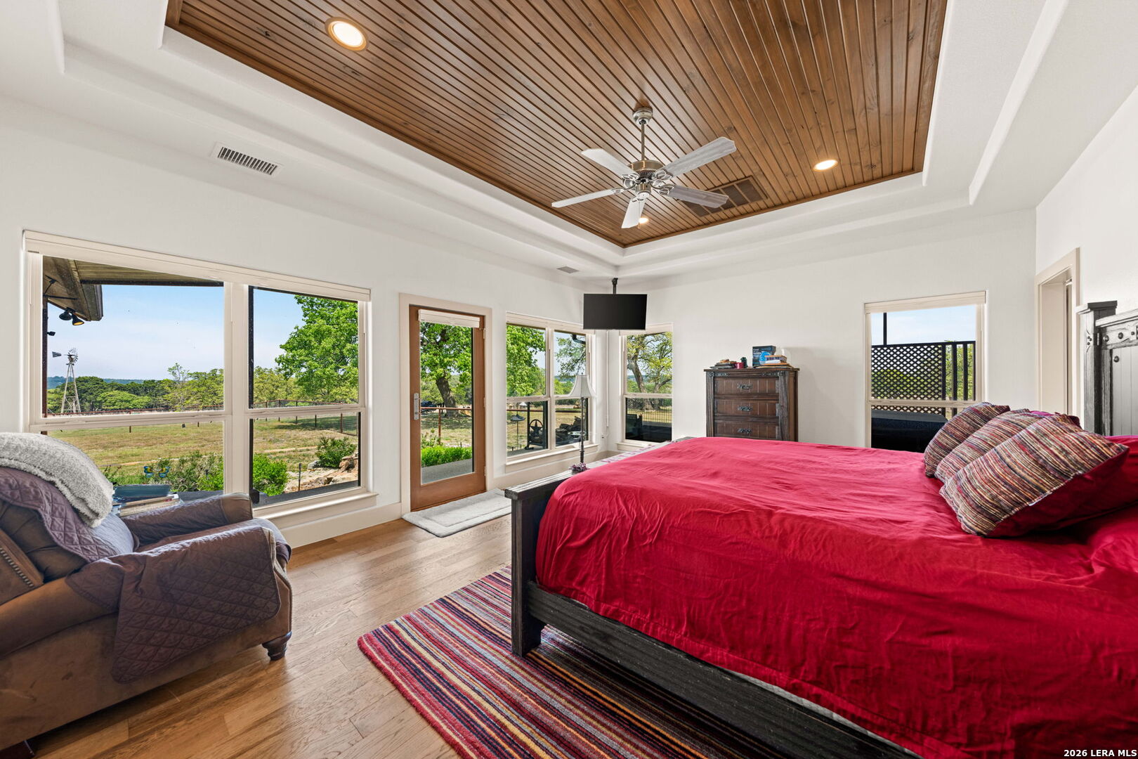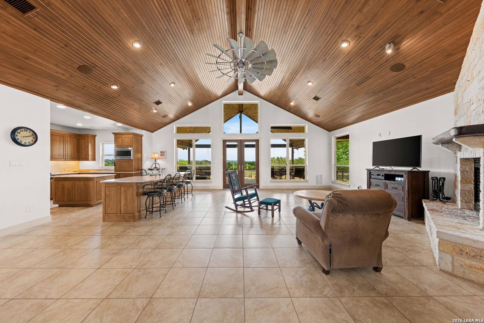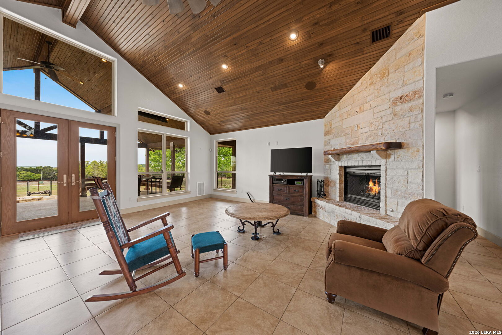 Luxurious country estate nestled on twenty-five acres within a private gated rural ranch setting known as The Quarry at Champee Springs. Custom crafted rock/stucco main home : three bedrooms; three and one-half bathrooms; expansive single living great room; wood burning fireplace; formal dining room; private office with 1/2 bath; stainless steel appliances; six burner gas stove; hickory wood cabinetry; fruitwood stained pine ceilings; wood and tile flooring; in-house vacuum system; covered back porch; fire pit; hot tub; attached side entry three vehicle porte cochere; standing seam metal roof; exterior rain gutters. Main house constructed in 2017 by renowned Hill Country builder Cadillac Custom Homes, known for their high quality craftsmanship. In addition to the main home, the country estate includes a guest house: 640 sq. ft. built in 2008 providing one bedroom, one bathroom, full kitchen and open living area; large metal framed equipment barn with office/bath; oversized Recreational Vehicle barn; foam insulated utility equipment barn; 30,000 gallon metal rain water catchment tank; 4,000 gallon concrete water well cistern; 500 gallon above ground propane tank; authentic metal windmill; home back-up power generator back-up system. The Estate currently maintains a Wildlife Exemption Plan.