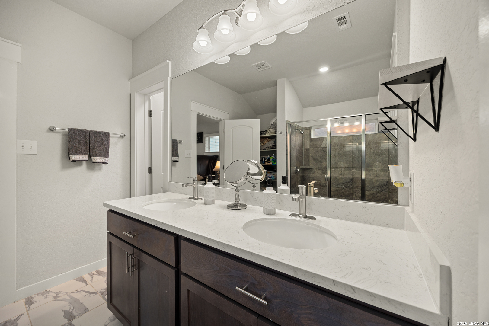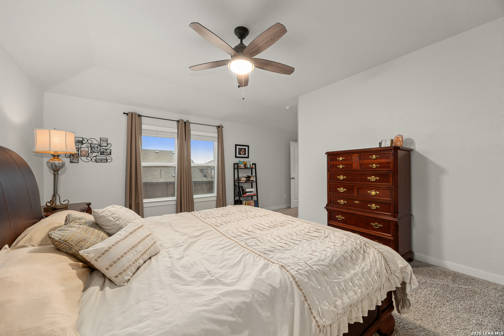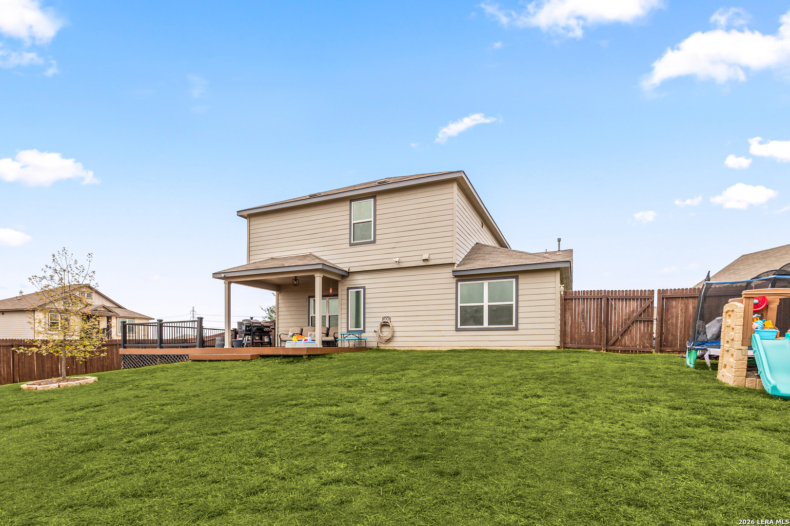 Located on a large corner lot in a quiet cul-de-sac in the Caledonian neighborhood, this spacious two-story home offers 5 bedrooms and 3 full baths with a light, open layout designed for everyday living. Inside, high ceilings and abundant natural light create an airy feel throughout the main living areas. The living room features a cozy fireplace and flows easily into the island kitchen, making it a great space for gathering and entertaining. The kitchen includes a breakfast bar, stainless steel appliances, gas cooking, and plenty of cabinetry and counter space for meal preparation and storage. The primary suite provides a comfortable retreat with a spacious layout and a well-appointed bath featuring a large walk-in shower. The dedicated office offers plenty of room for productivity and flexibility. Upstairs, a generous loft provides additional living space that can serve as a game room, media area, or second living space. The backyard offers a great outdoor setting with a covered patio, a large Trex deck installed within the last few years, and a wide lawn with space to relax or entertain. Recent updates include new tile flooring throughout the main floor installed less than a year ago, updated lighting and fixtures throughout the home, smart home features, stainless steel appliances, and additional insulation to help improve energy efficiency. Conveniently located near shopping, everyday amenities, and just 15 minutes to Randolph and 20 minutes to Ft. Sam. Don't miss the opportunity to make this your next home, book your tour today!