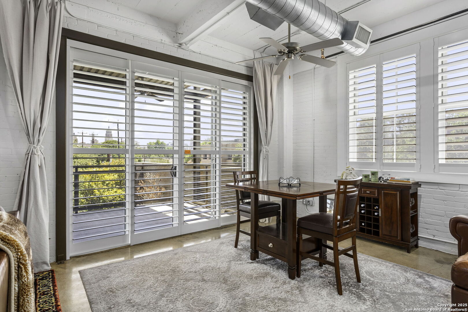 Incredible second floor corner unit in the extremely popular Judson Candy Factory Lofts. The downtown views are amazing from the 300 s/f covered terrace. This spacious 1122 s/f 1/1.5 condo offers an open floor plan (perfect for entertaining), high ceilings, concrete floors, track lighting, an abundance of natural lighting and plantation shutters. The island kitchen has hard surface countertops, stainless steel appliances, pendant lighting, filtered water system, breakfast bar and excellent cabinet space. The combination living and dining areas are open to the kitchen. The half bath is ideal for guests. The en-suite bedroom features built-ins, dual vanities, large shower, full-size stack washer & dryer and great walk-in closet. This gated community offers: swimming pool, gas grill, fitness center, indoor bike storage, pet grooming station and rooftop terrace. This condo also has 2 covered parking spaces near the rear entry door and a 8.5 X 30 climate-controlled storage unit in the basement. This loft is located in the highly coveted Southtown neighborhood, just steps from the King William section of the Riverwalk and the San Pedro Creek Cultural Park, convenient to the major interstates, HEB grocery store and some of the best restaurants and bars in the city, and all walkable!