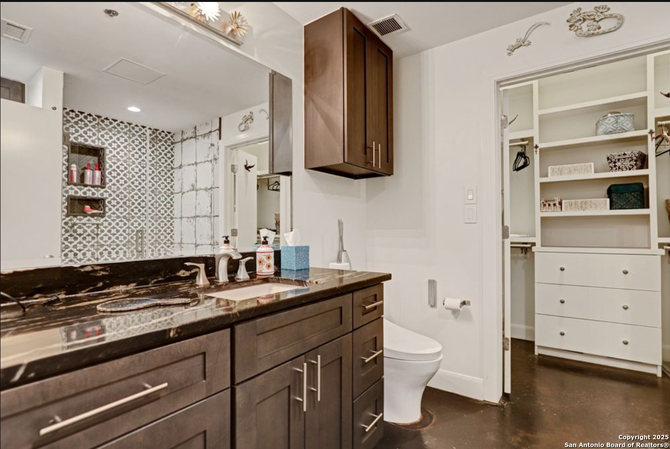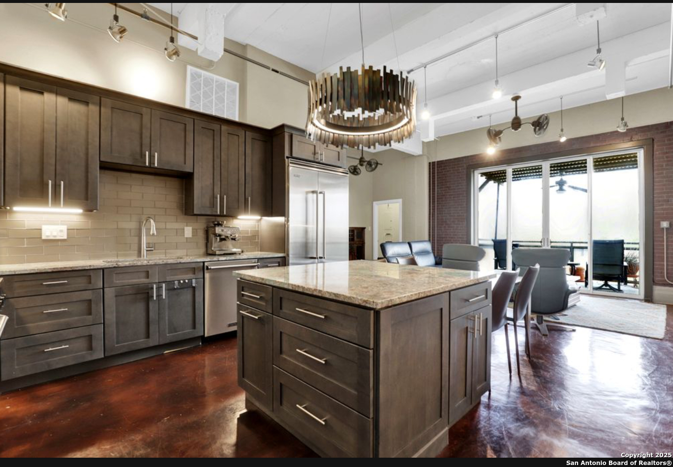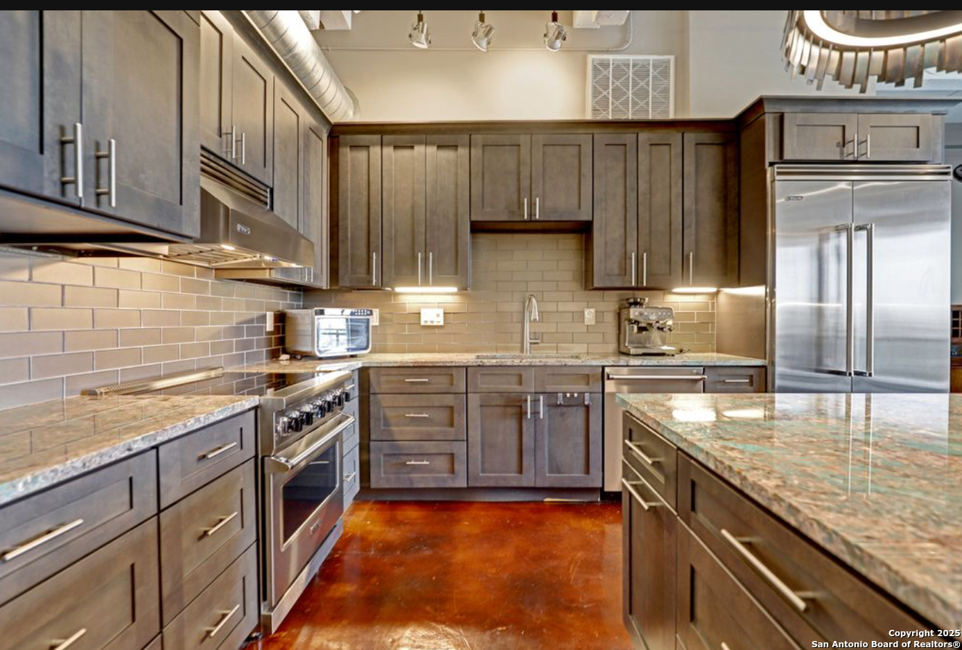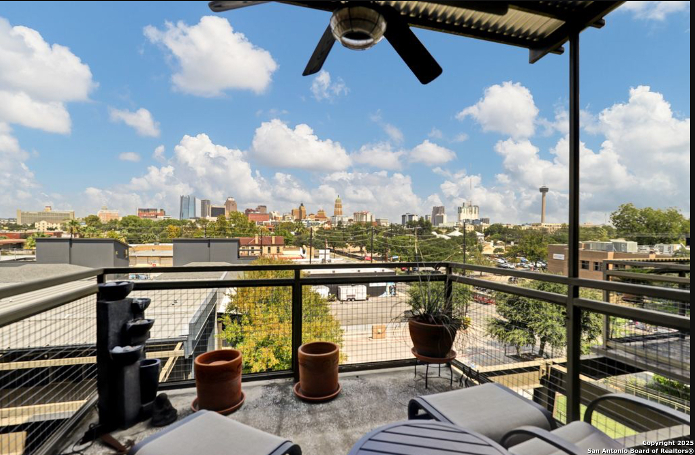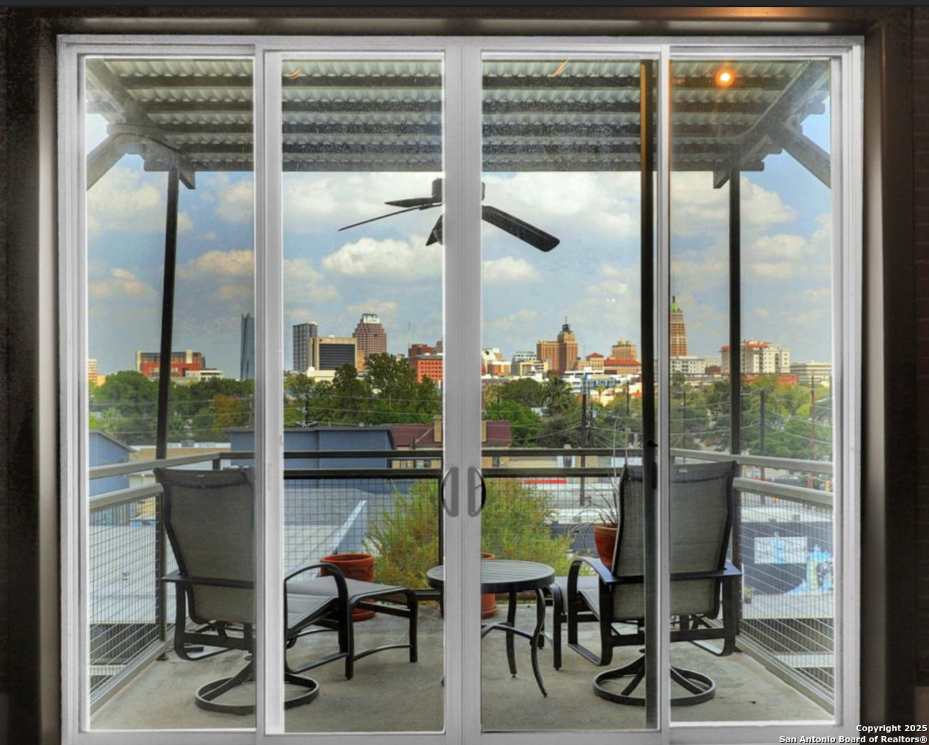 WOW! What a View! Wonderful view of the San Antonio downtown skyline right from your balcony. Enjoy luxury living in Southtown. This beautiful 1,500 sq ft with a open floor plan is elegance from top to bottom. The owners committed to a major investment to keep the industrial feel with a modern elegant look. ( complete list of upgrades in the additional information.) The kitchen has plenty of custom cabinet space with top of the line appliances. The granite countertops are just spectacular and the special added lighting makes extra bright. While you relax in the living area enjoy the city view. 2 full bedrooms very stylish with large shower areas and plenty of storage. The large comfortable bedroom also features a great city view and has plenty of added storage space. The office also serves as a guest bedroom. Additional features include gated entrance, nice pool, 2 covered parking spaces, 2 oversized storage units and a fitness center. There is also a pet grooming room and a great roof top terrace. Enjoy easy access to the large amount of restaurants in the area or take a stroll to downtown. Shopping includes HEB which is within walking distance. Come by and take a great view of the city.
