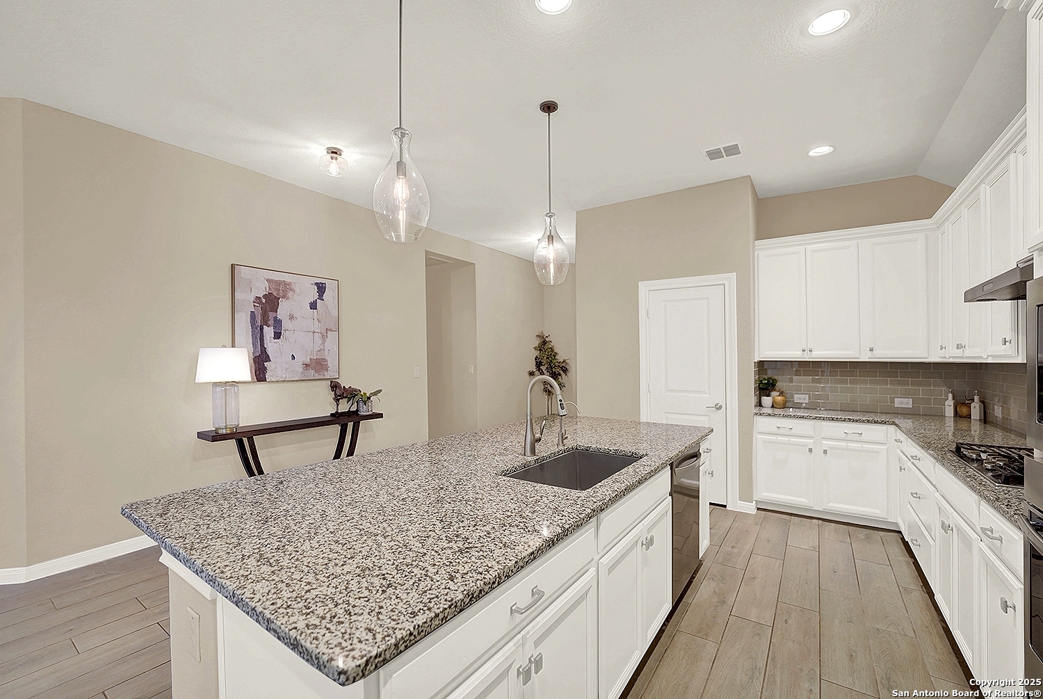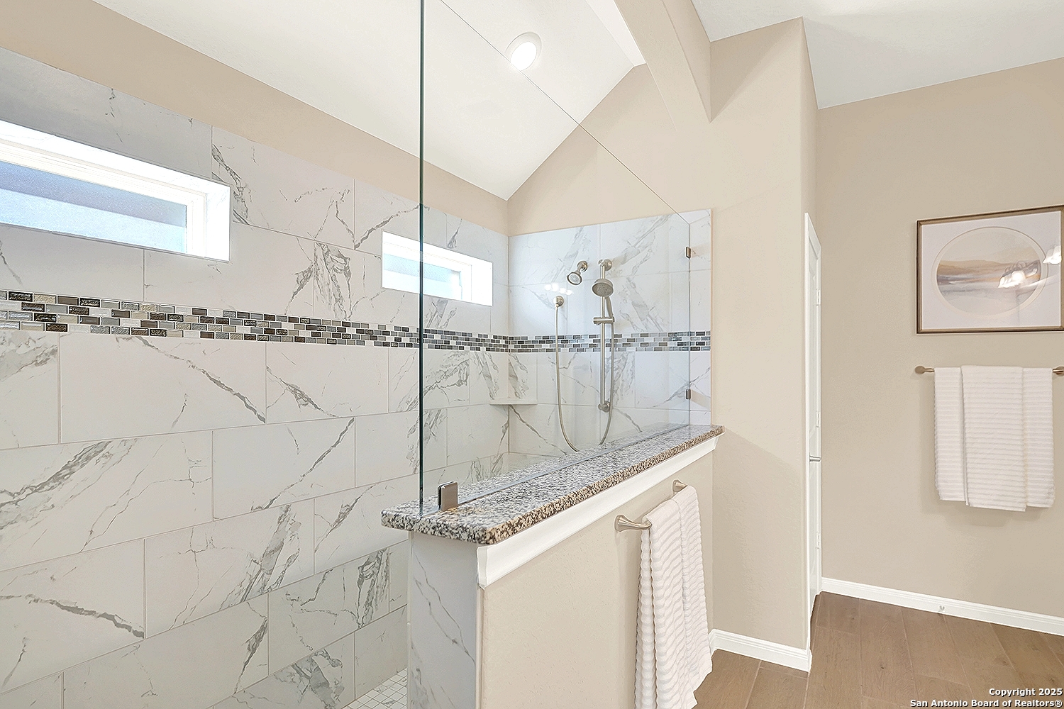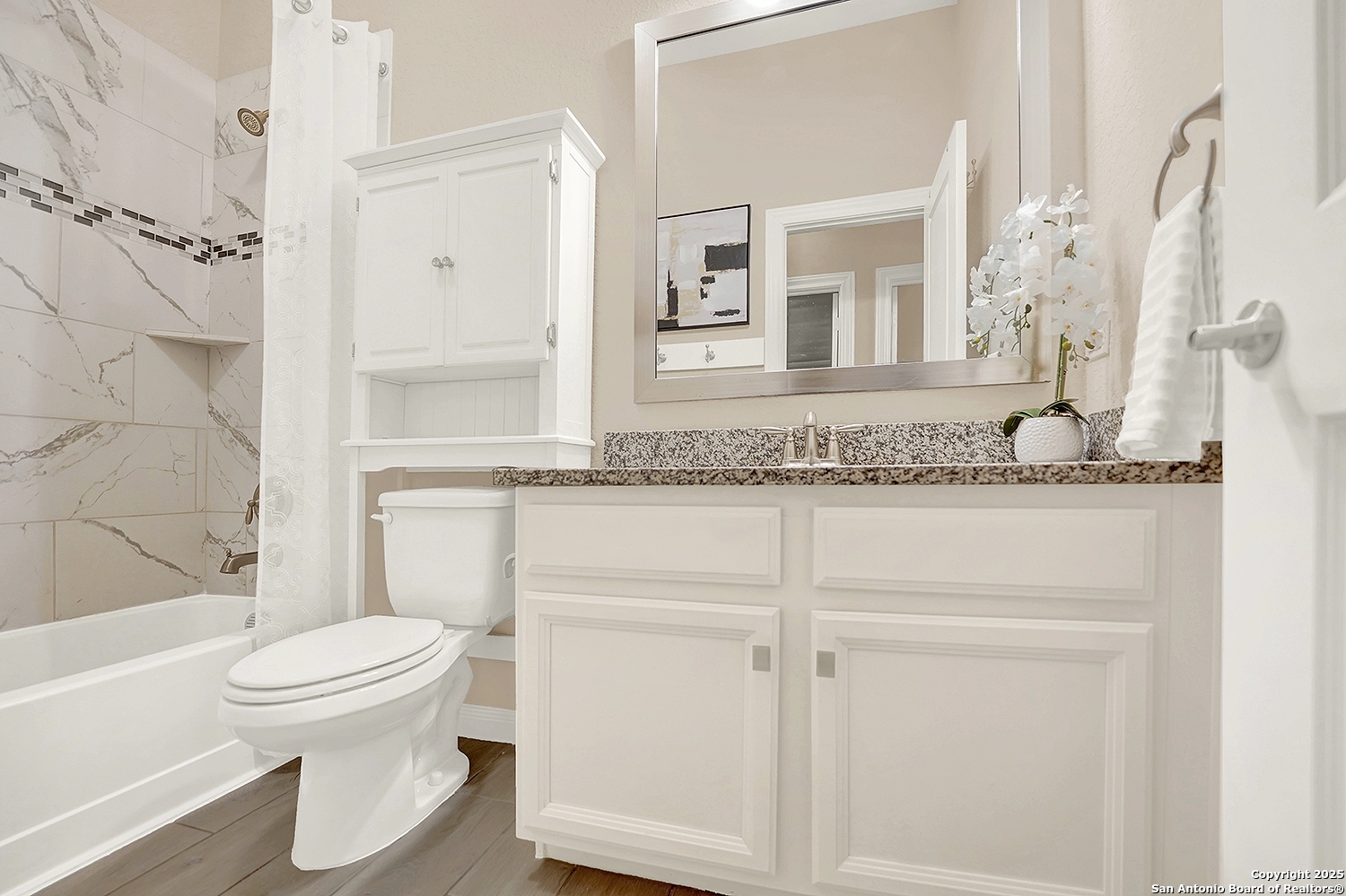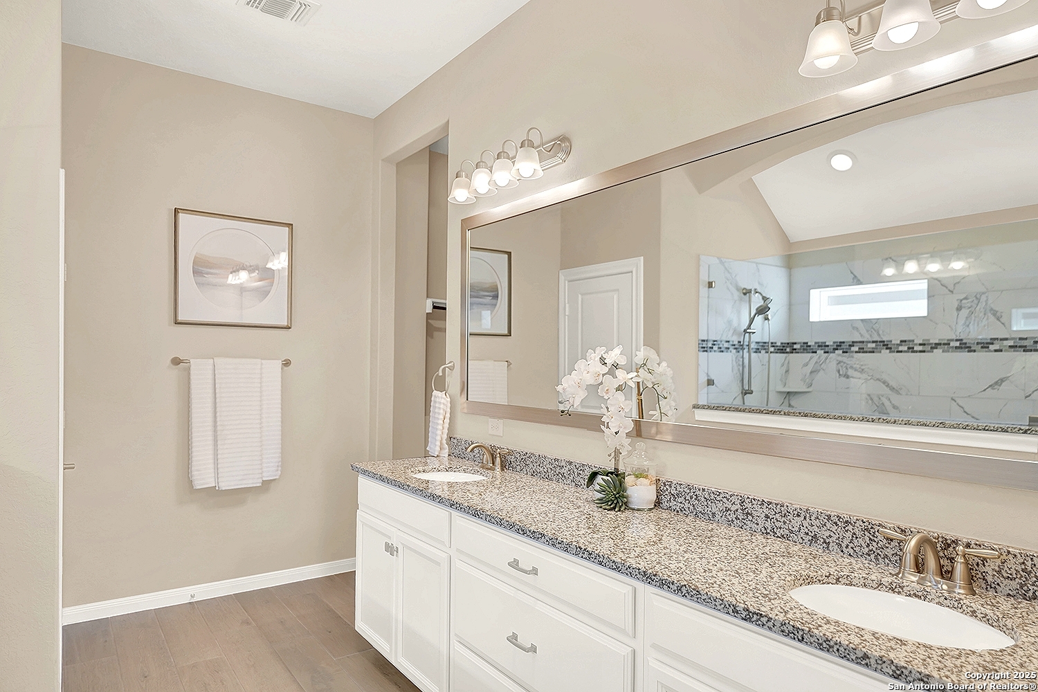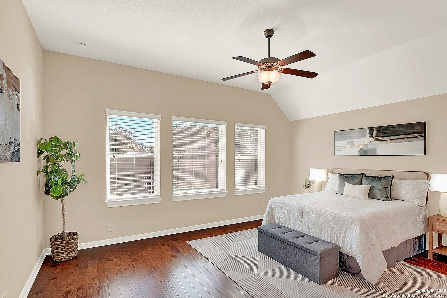 Single Story, 3 bedrooms plus a study that can be converted into a fourth bedroom, 2 full baths, and a 3-car garage across 2,255 square feet of thoughtfully designed living space. Welcome to 8312 Merchants Lodge, a meticulously maintained David Weekley Home built in 2018 that feels brand new. Located within the gated community of The Heights of Two Creeks, this home combines privacy, security, and convenience. Residents enjoy access to jogging and walking trails, a resort-style community pool, clubhouse, and sports center, creating an ideal setting for both recreation and relaxation. The location is truly unbeatable, just 2 minutes from I-10 and 10 minutes from Loop 1604, offering quick commutes to major employers, downtown San Antonio, and the Texas Hill Country. Everyday conveniences and entertainment are only minutes away, with The Rim Shopping Center just 8 minutes out and The Shops at La Cantera about 10 minutes away. Enjoy premier dining, shopping, and entertainment including popular spots like Bob's Steak & Chop House, The Rustic, and Signature, Inspired by Chefs, all within easy reach. Inside, you'll find high ceilings, abundant natural light, and an open-concept layout perfect for modern living. The spacious kitchen features granite countertops, a large island with bar seating, gas cooking, and plenty of storage, opening seamlessly to the dining and living areas. The primary suite offers an oversized walk-in closet, large walk-in shower, and double vanity. Each secondary bedroom includes its own walk-in closet, and there is a large coat closet near the entry for added convenience. Finishes include ceramic tile in wet areas, hardwood flooring in all bedrooms, faux wood blinds throughout, and a stone-and-brick exterior that enhances curb appeal. The covered patio with ceiling fans overlooks beautifully maintained landscaping, providing the perfect space for outdoor entertaining. The roof is just six years old, and the home's energy-efficient construction adds to its lasting value. This property offers the perfect blend of comfort, convenience, and community in one of San Antonio's most desirable neighborhoods, an ideal retreat for those seeking luxury living with everyday practicality.