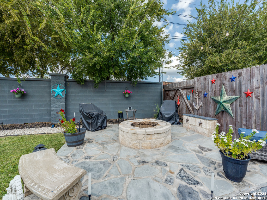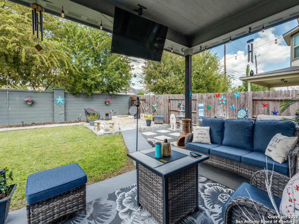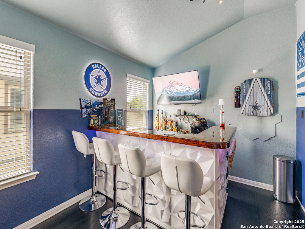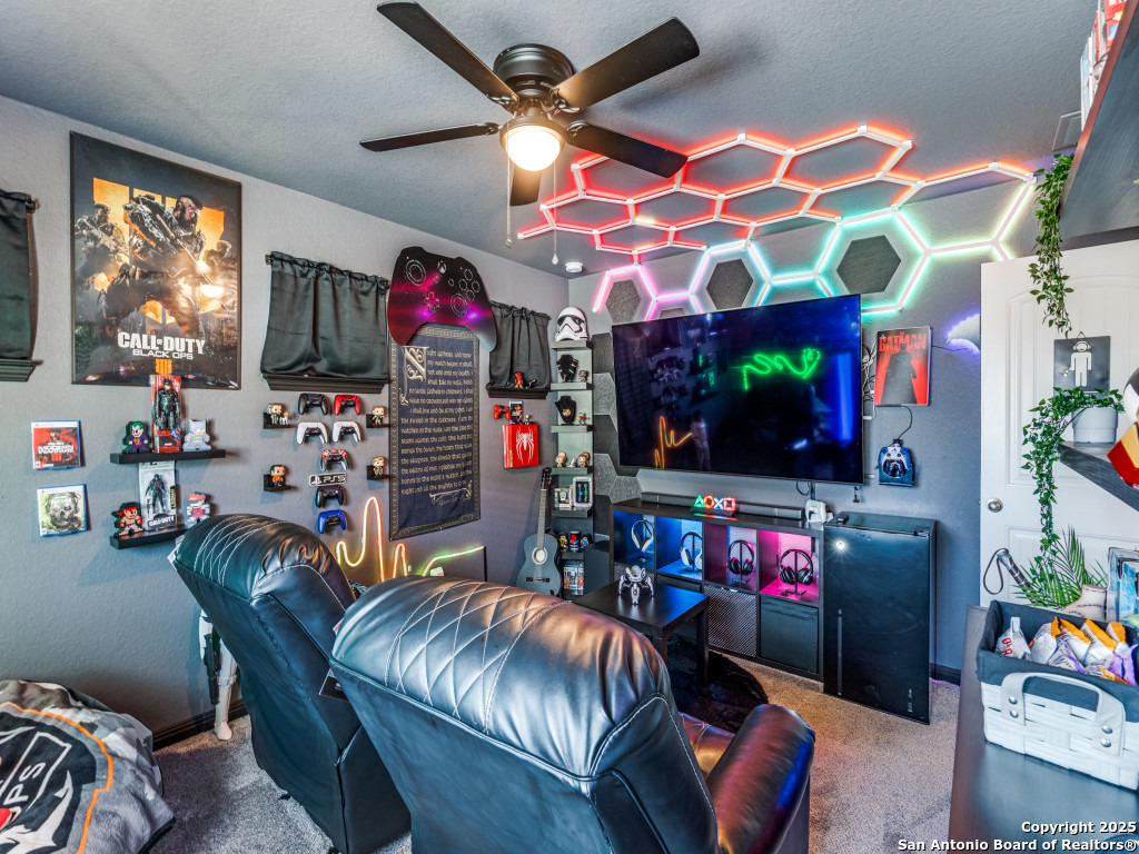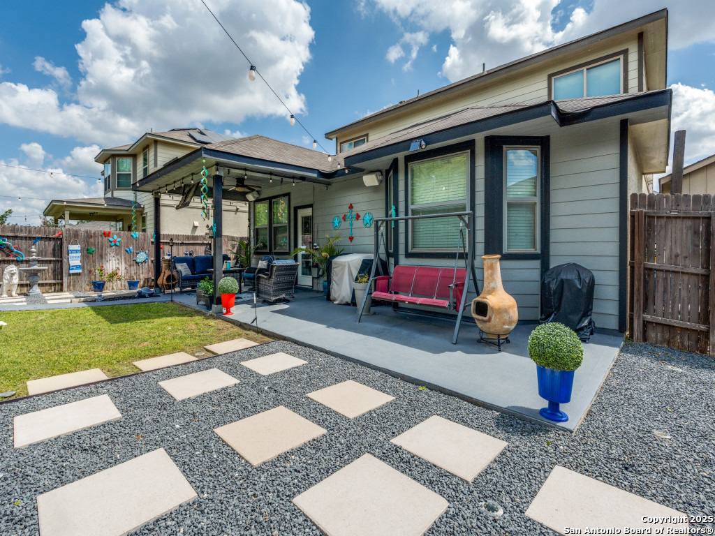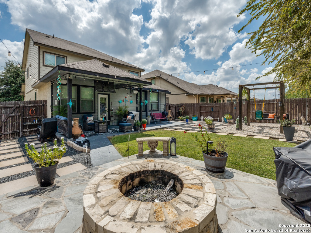 This beautifully upgraded 4-bedroom, 2.5-bath home offers approximately 2,400 square feet of stylish and functional living space. Designed with entertainment and comfort in mind, the property features unique enhancements throughout. Interior Highlights: Private media room ideal for movie nights, Custom-designed bar lounge for gatherings, Game room conversion offering versatile living space, Elegant black marble flooring and a striking custom fireplace wall. Outdoor Living: The backyard is built for relaxation and entertainment, featuring a covered patio, a distinctive zero-shaped fire pit sitting area, a swing set, and plenty of room for barbecues and hosting events. Located in the desirable Far West San Antonio area, this property combines modern finishes with lifestyle amenities, creating a one-of-a-kind home for buyers seeking both comfort and entertainment. Schedule your private tour today!