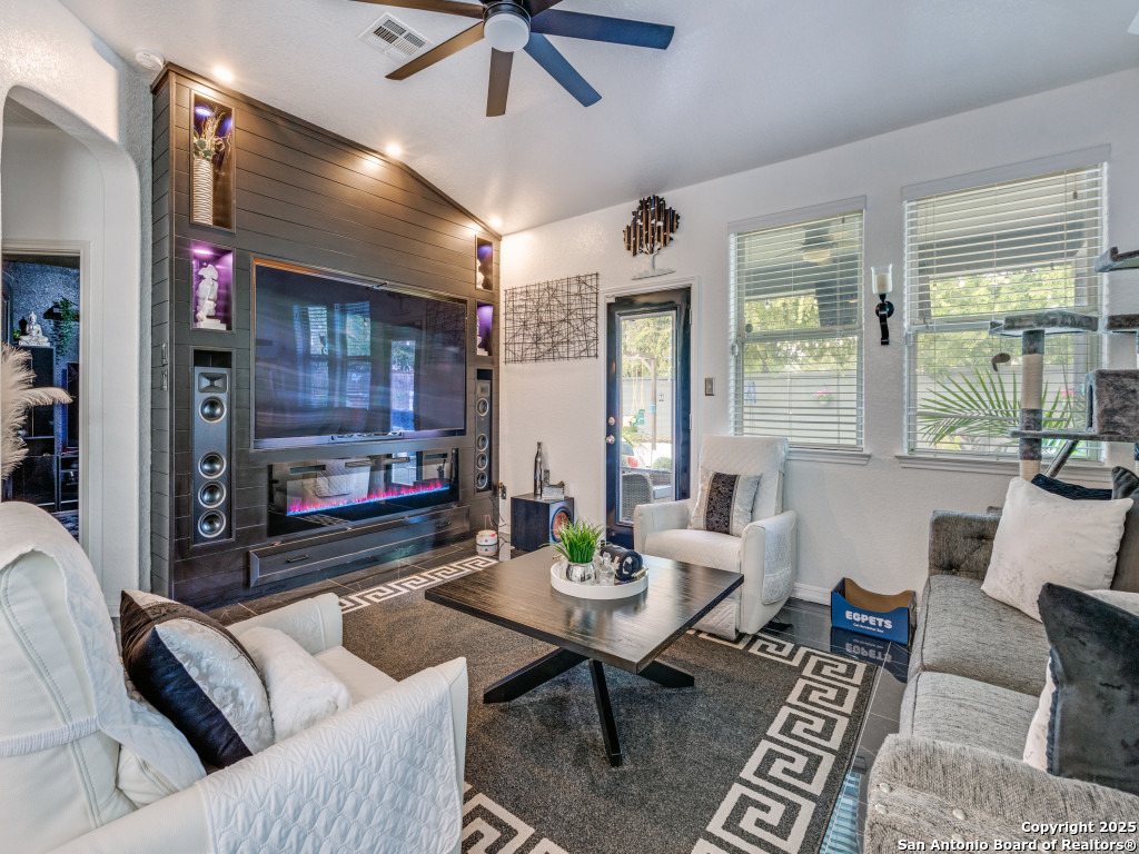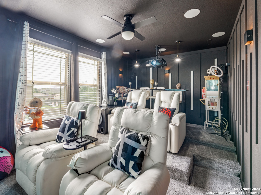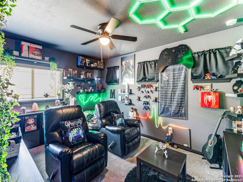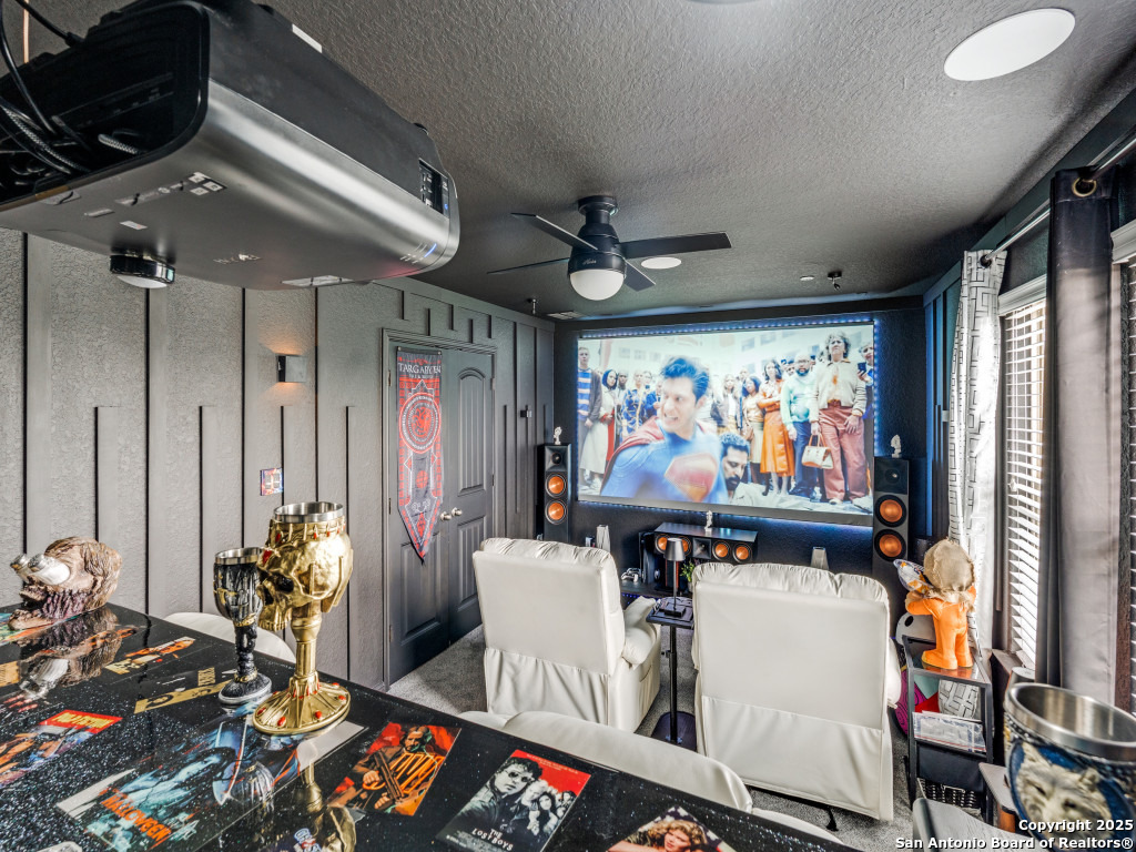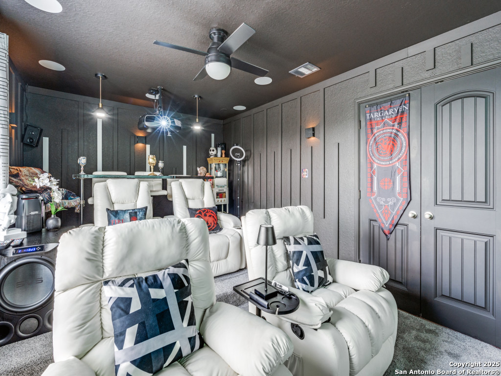 This beautifully upgraded 4-bedroom, 2.5-bath home offers approximately 2,400 square feet of stylish and functional living space. Designed with entertainment and comfort in mind, the property features unique enhancements throughout. Interior Highlights: Private media room ideal for movie nights, Custom-designed bar lounge for gatherings, Game room conversion offering versatile living space, Elegant black marble flooring and a striking custom fireplace wall. Outdoor Living: The backyard is built for relaxation and entertainment, featuring a covered patio, a distinctive zero-shaped fire pit sitting area, a swing set, and plenty of room for barbecues and hosting events. Located in the desirable Far West San Antonio area, this property combines modern finishes with lifestyle amenities, creating a one-of-a-kind home for buyers seeking both comfort and entertainment. Schedule your private tour today!