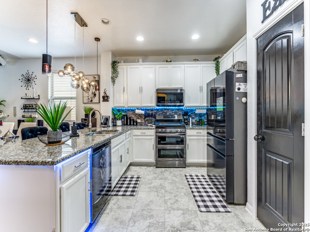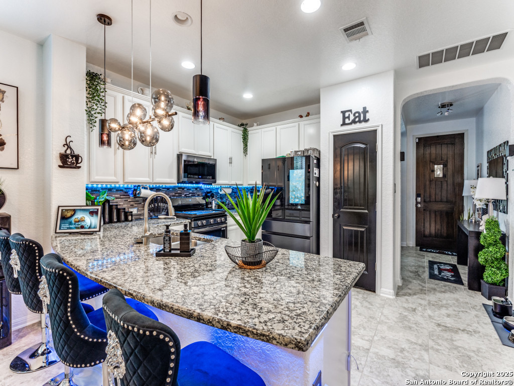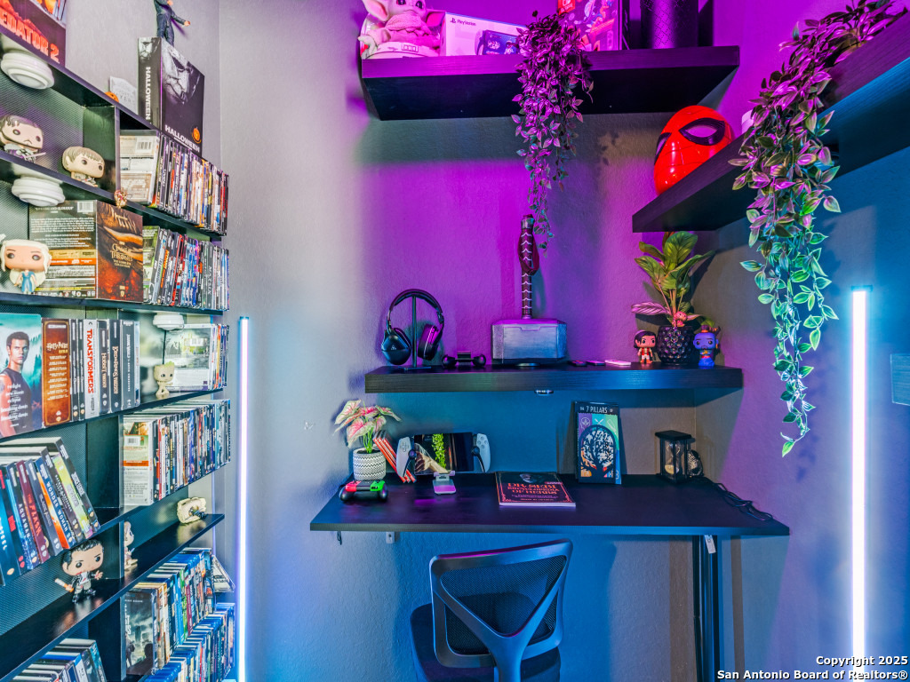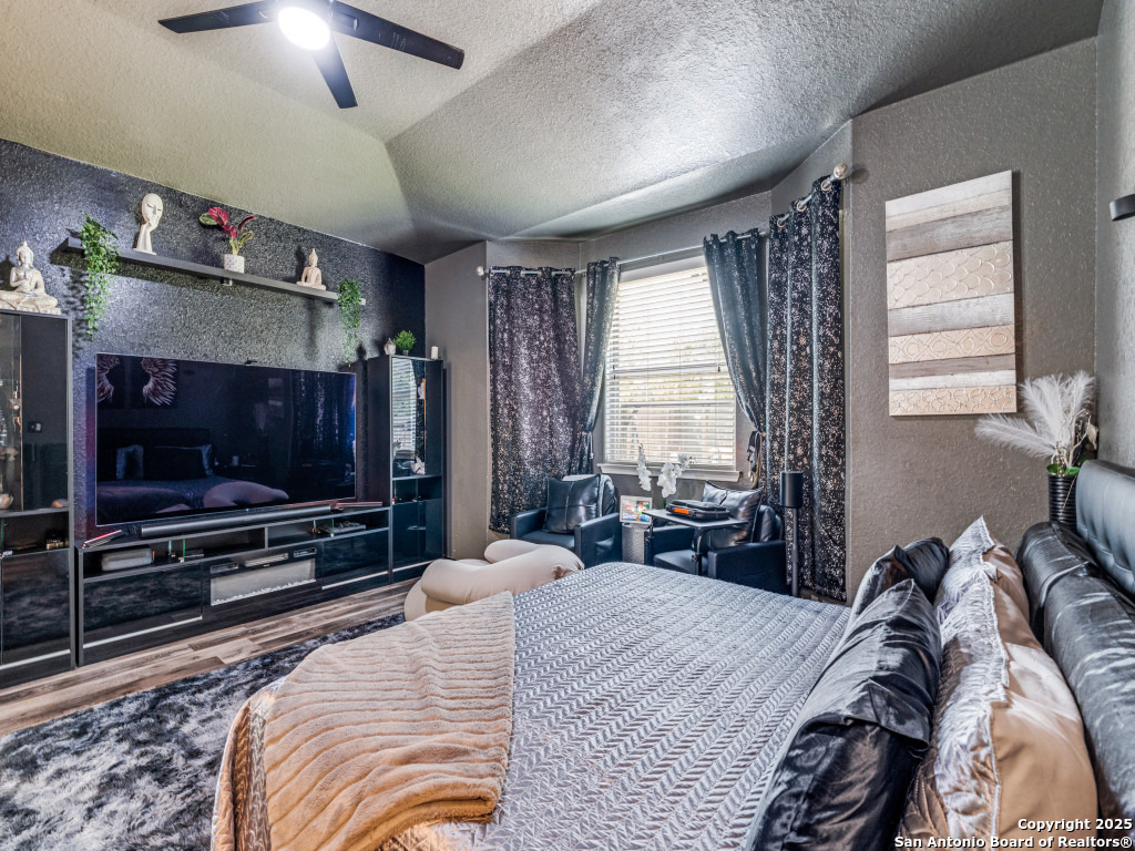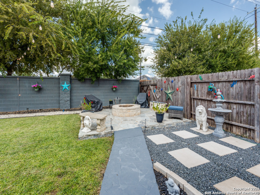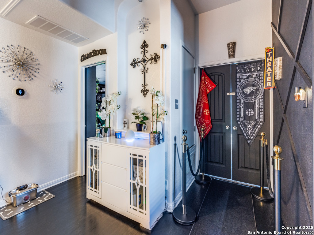 This beautifully upgraded 4-bedroom, 2.5-bath home offers approximately 2,400 square feet of stylish and functional living space. Designed with entertainment and comfort in mind, the property features unique enhancements throughout. Interior Highlights: Private media room ideal for movie nights, Custom-designed bar lounge for gatherings, Game room conversion offering versatile living space, Elegant black marble flooring and a striking custom fireplace wall. Outdoor Living: The backyard is built for relaxation and entertainment, featuring a covered patio, a distinctive zero-shaped fire pit sitting area, a swing set, and plenty of room for barbecues and hosting events. Located in the desirable Far West San Antonio area, this property combines modern finishes with lifestyle amenities, creating a one-of-a-kind home for buyers seeking both comfort and entertainment. Schedule your private tour today!