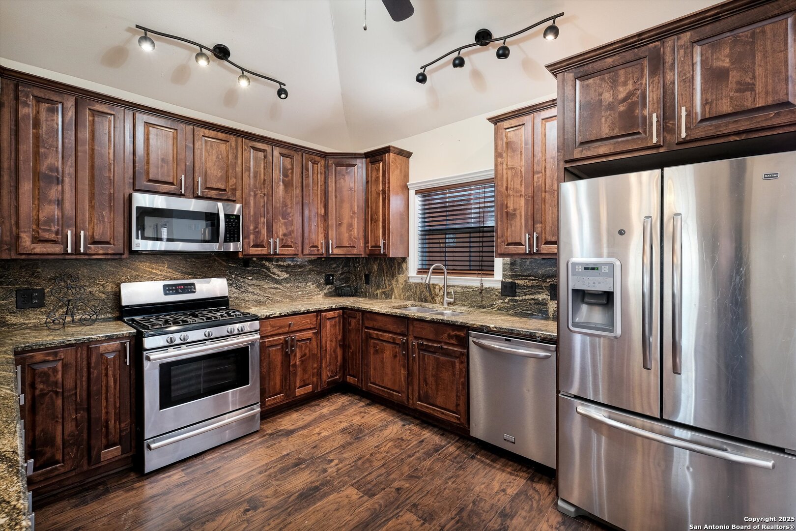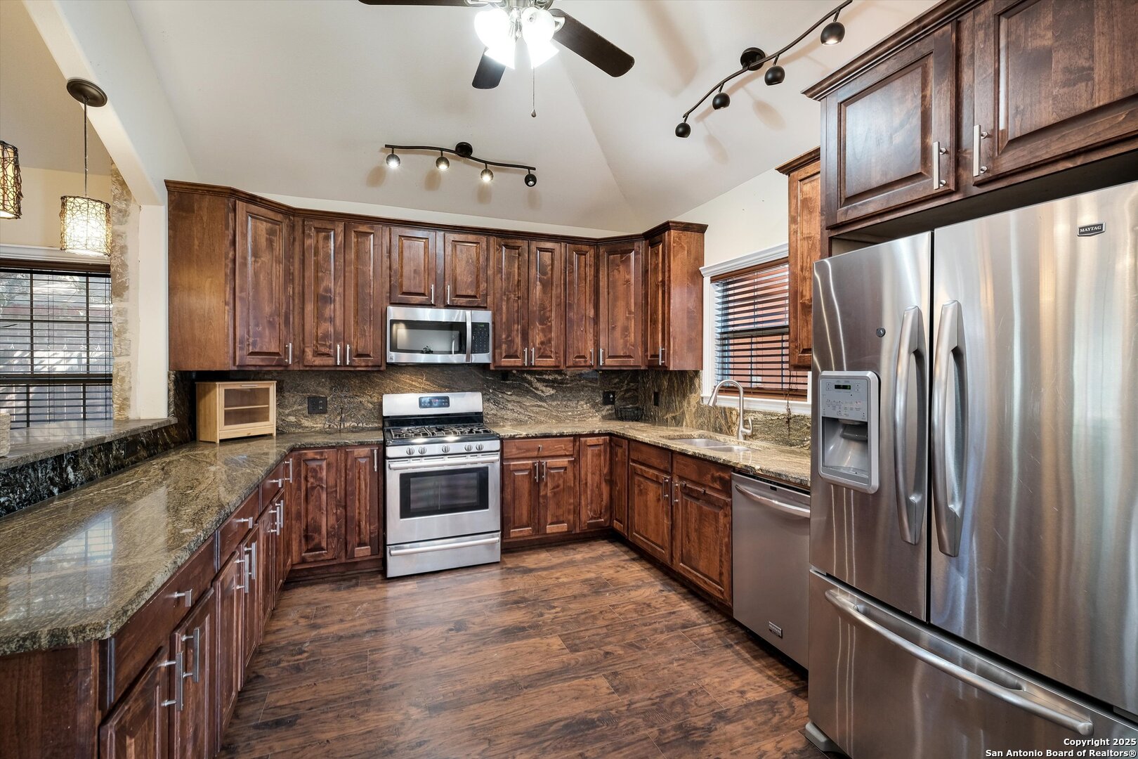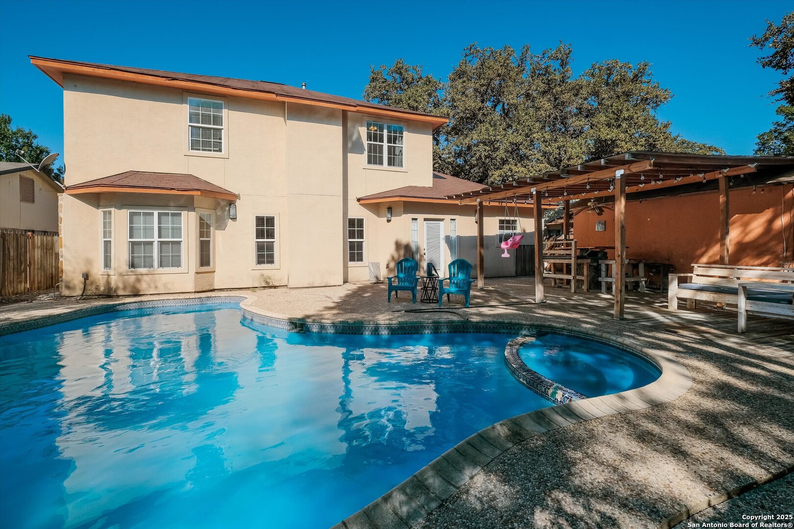 OPEN HOUSE NOVEMBER 29TH FROM 9AM TO 11AM! **Assumable VA Loan 2.75%!!!** Exquisite design and everyday functionality come together in this 4-bedroom, 2.5-bath home featuring thoughtful upgrades and a backyard built for family fun. The open-concept layout offers a spacious living area and kitchen with vaulted ceilings, creating a bright and welcoming space. The kitchen includes gas cooking, granite countertops, and custom cabinetry-perfect for family meals or entertaining guests. Upstairs, the large game room provides the ideal spot for movie nights, playtime, or a home office. Step outside to your private backyard retreat with a sparkling pool, covered pergola area for relaxing or grilling out, and a large shed for extra storage. Located just minutes from H-E-B, shopping, dining, and medical centers-and best of all, no HOA-this home offers both comfort and convenience in a location families love.
