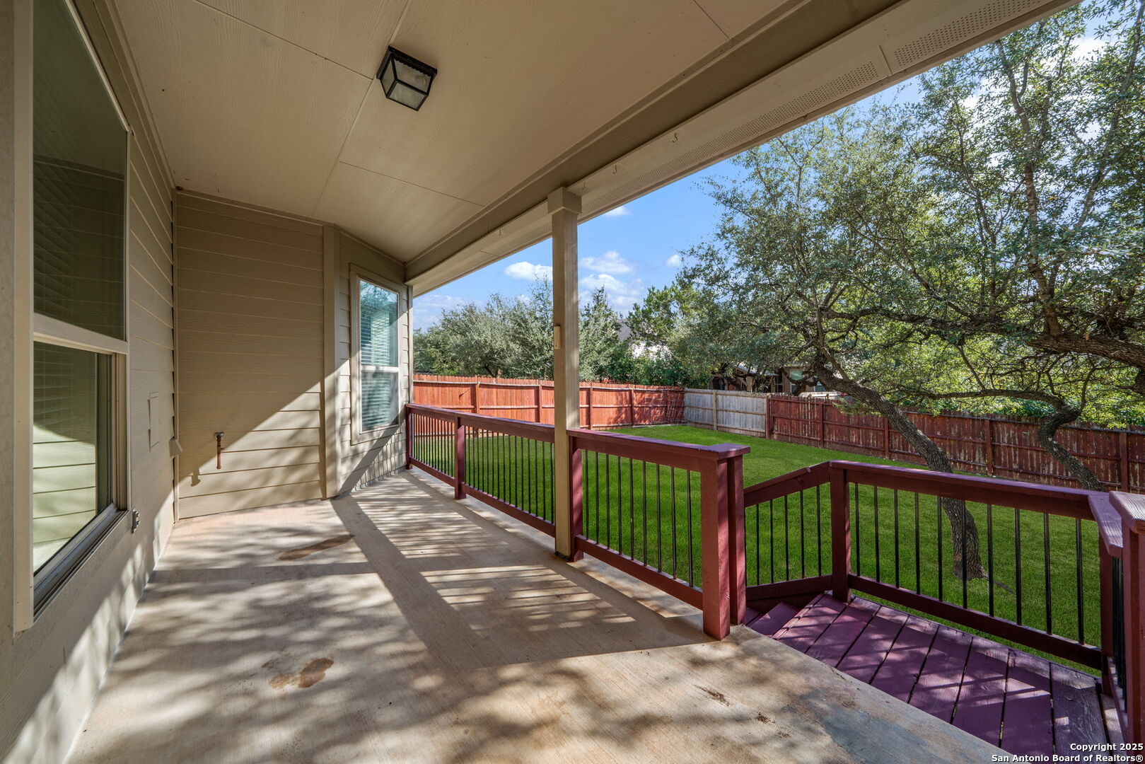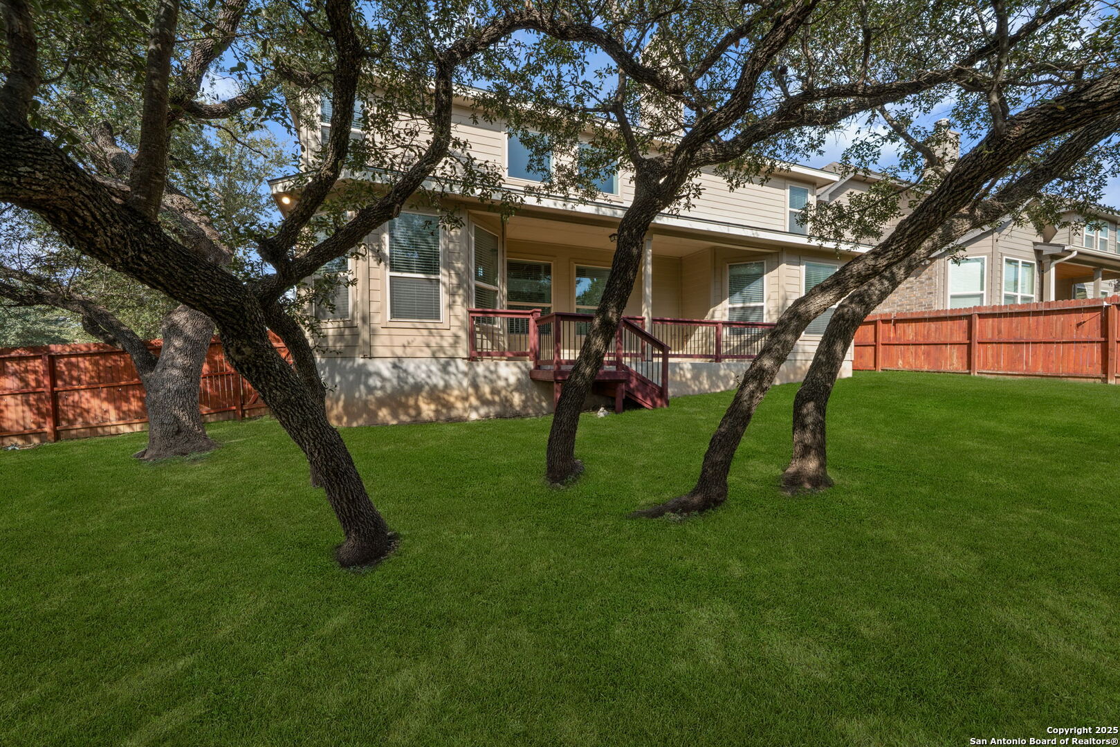 Move-in ready, freshly painted 4-bedroom, 3.5 bath home, with an open, light-filled floor plan. Features include a kitchen with built-in stainless steel appliances, granite countertops, new carpet throughout, and a beautiful stone fireplace. Situated on a desirable corner lot with a large backyard. Located in the gated Fallbrook community with amenities including a pool, clubhouse, and playground. Close to The Rim and La Cantera, and zoned to highly rated Boerne ISD.