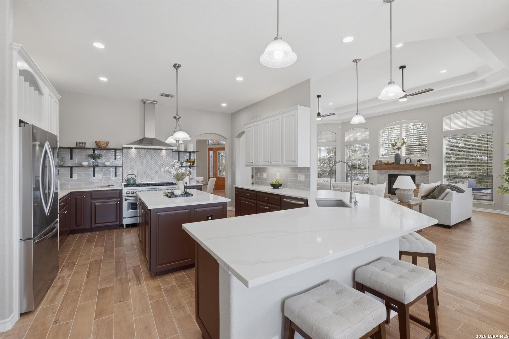***Open House, March 22, 2-4PM**** This home sits at the top of the hill with gorgeous views!! Beautifully maintained home in the sough-after Village Green Community of Boerne featuring a stunning Keith Zars pool and beautiful, updated, remodeled kitchen. Designed with spacious living areas, natural light, and a functional open layout. The private primary suite provides a peaceful retreat with sitting area to relax, read a book, or watch TV. A standout feature of the property is the full-size apartment over the three-car garage, perfect for in-laws, guests, multigenerational living, private office, or additional living space.