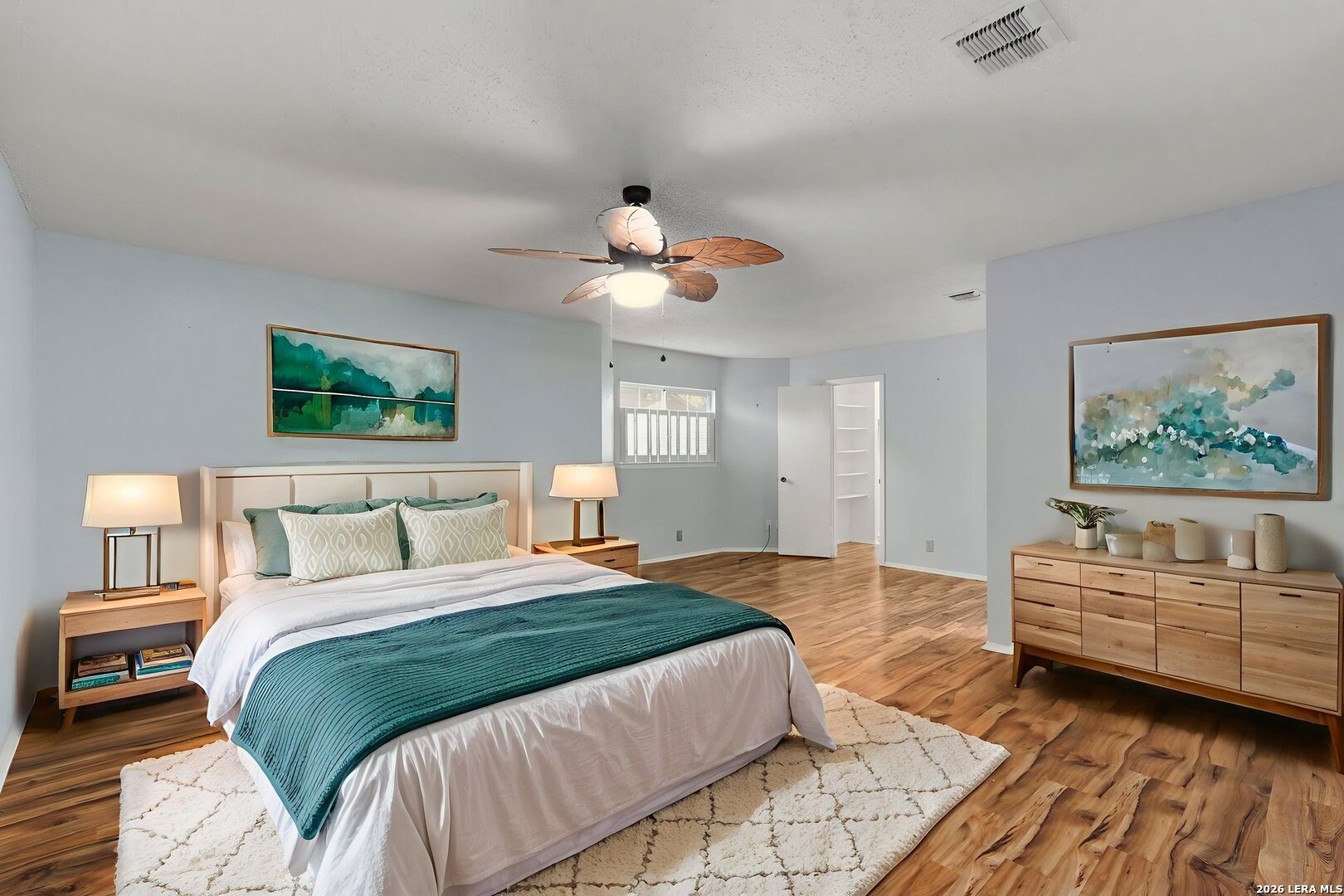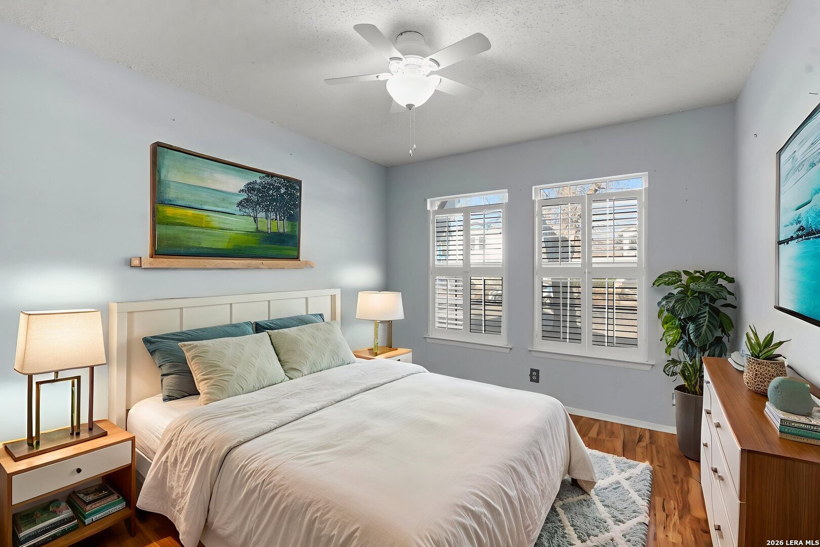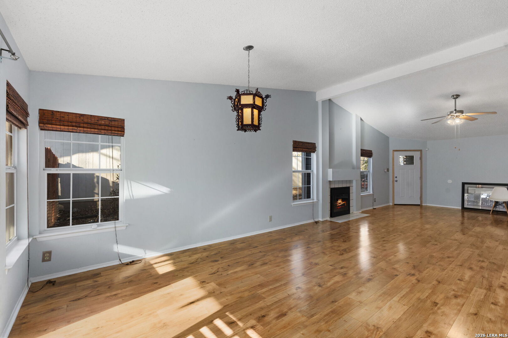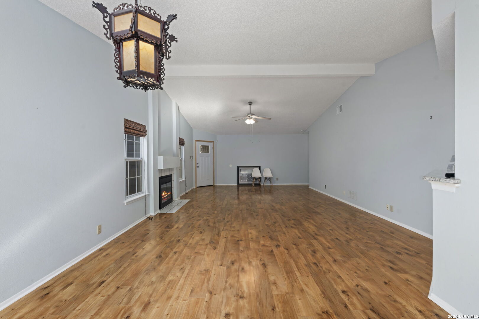 Welcome home to this charming single-story gem offering 3 bedrooms, 2 baths, and a 2-car attached garage-all designed for comfortable, easy living. Step inside to a spacious living and dining room combination featuring high ceilings and a cozy fireplace that creates the perfect focal point for gatherings or quiet evenings at home. The kitchen is both stylish and functional, showcasing granite countertops, ample cabinetry, and an additional eating area ideal for casual meals or morning coffee. The open layout keeps everyone connected while still providing defined spaces. The private primary suite offers a relaxing retreat with a full bath that includes a double vanity and an oversized walk-in shower. A thoughtfully designed walk-through laundry area connects the primary bedroom to the kitchen, adding everyday convenience right where you need it most. Wood-look flooring and tile flows throughout the home-no carpet, just a clean, cohesive look that's both modern and low maintenance. Conveniently located with quick access to Highway 151 and Loop 410, this home makes commuting, shopping, and dining a breeze.