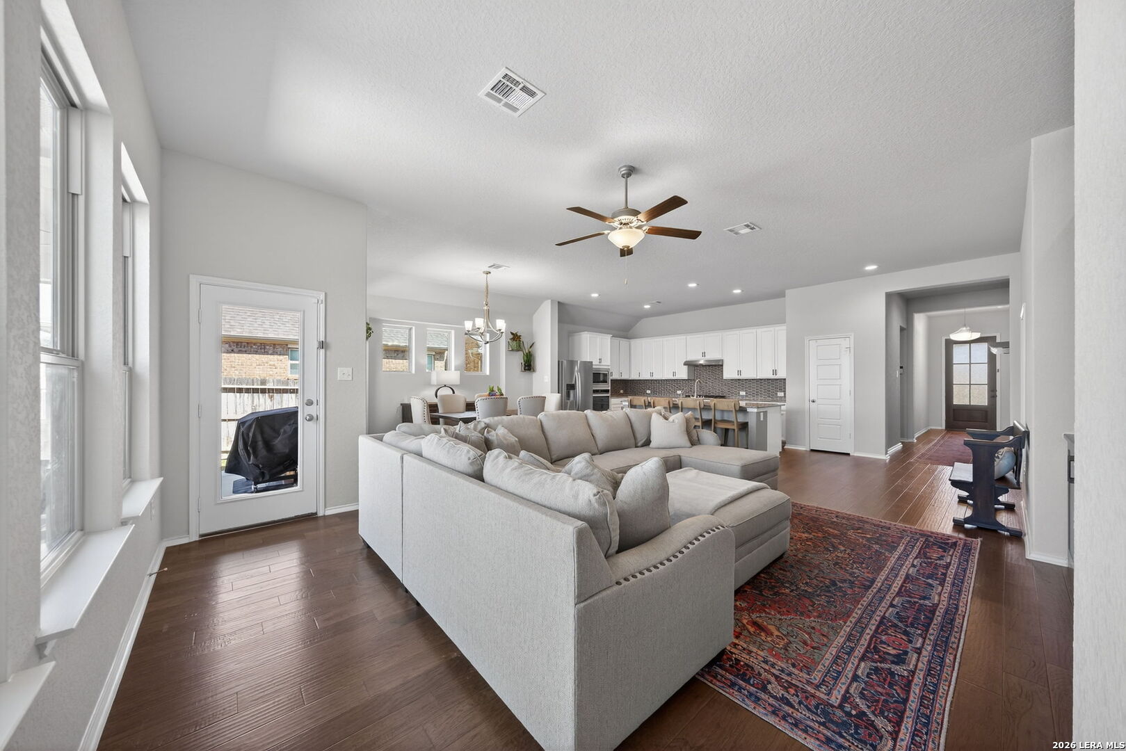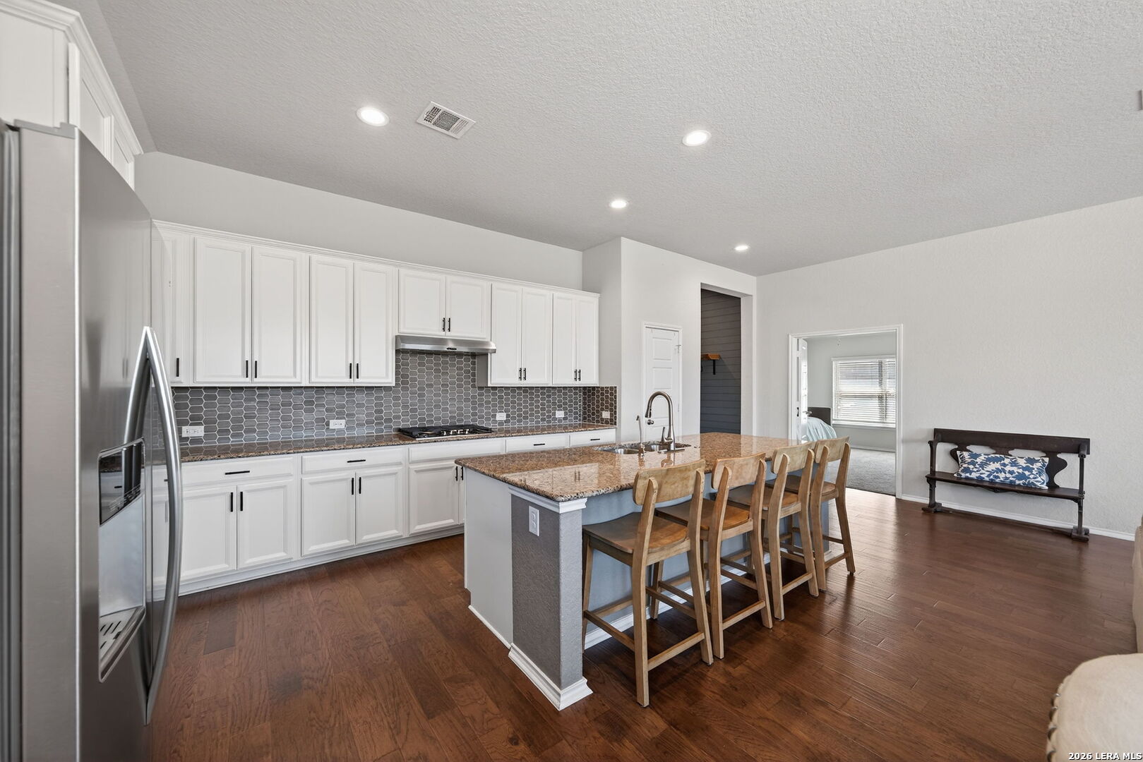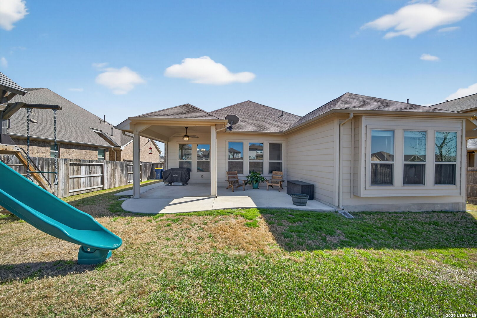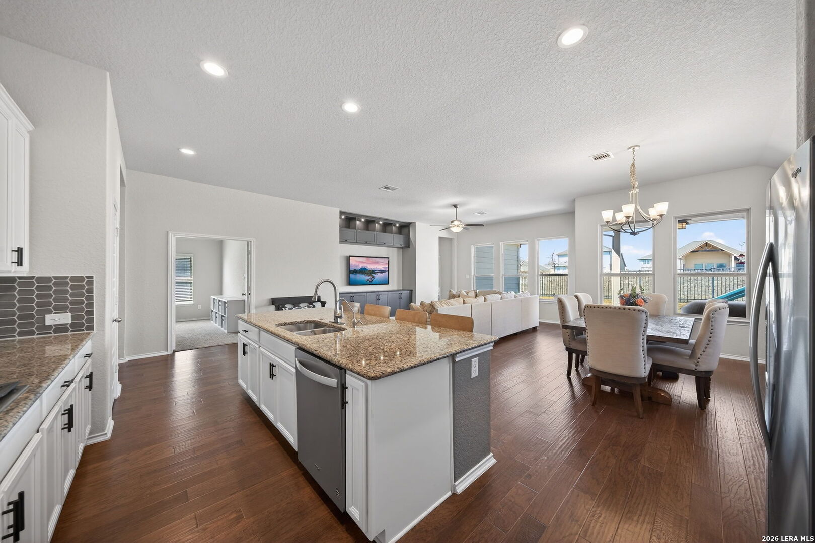 Immaculate move in ready one-story 3 bedroom, 2.5 bath home built in 2019 by Wilshire Homes, offering 2,088 sq ft of living space in the sought-after Foxbrook subdivision of Cibolo. This energy-efficient residence is ENERGY STAR and LEED certified, with tons of modern features designed for lower utility costs and exceptional comfort and luxury. The open floor plan showcases a designer kitchen with granite countertops, gas stove, and generous cabinetry, flowing seamlessly into the living area complete with a new built-in entertainment center. Flooring includes ceramic tile, wood, and carpet. Granite counters continue into the bathrooms for a cohesive, modern aesthetic. Additional highlights: expanded back patio overlooking a private greenbelt, 2-car garage, and a spacious 0.18-acre lot. Convenient Cibolo location with quick access to I-35, major employers including Randolph AFB, shopping, dining, and New Braunfels and the Hill Country. A rare opportunity to own a premium, move-in-ready home with green features, privacy, and strong value in the desirable Foxbrook subdivision.