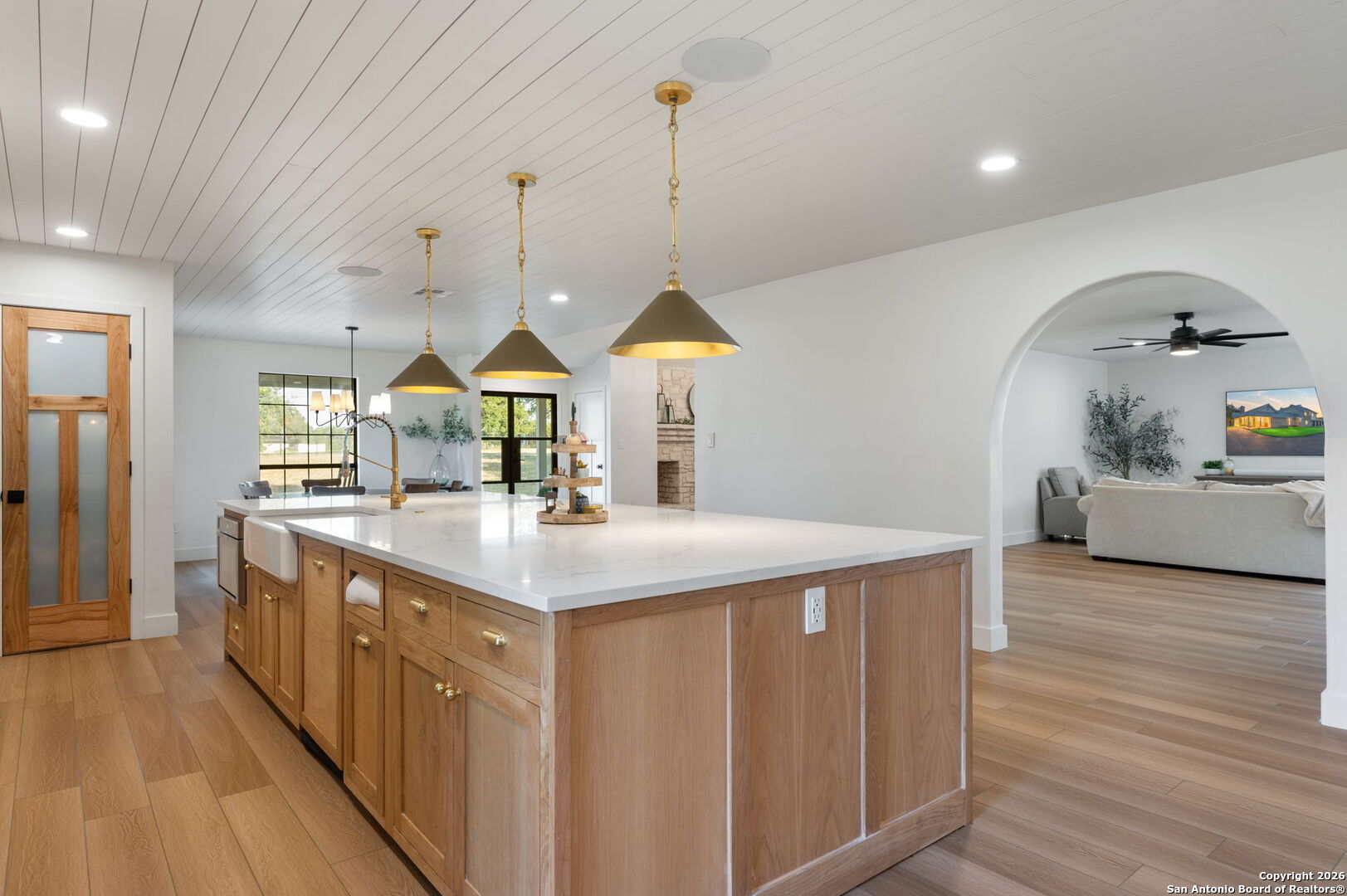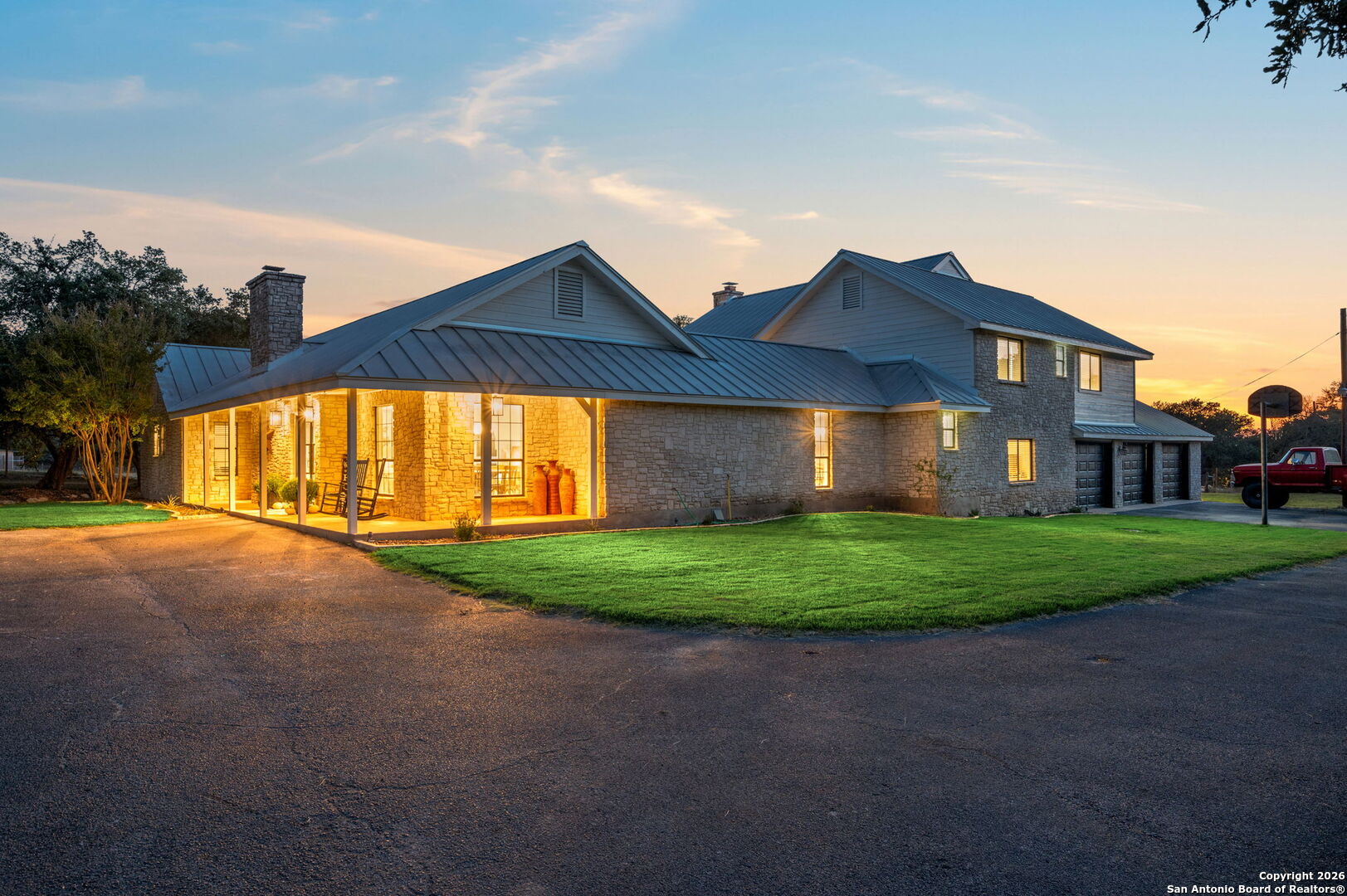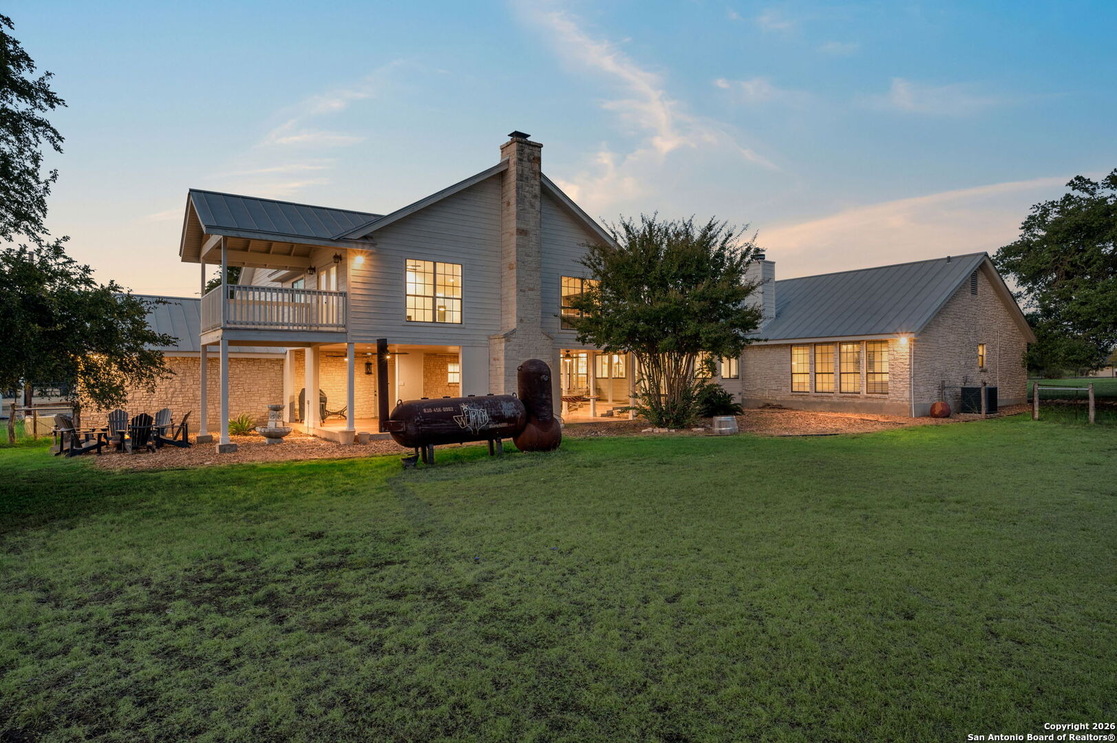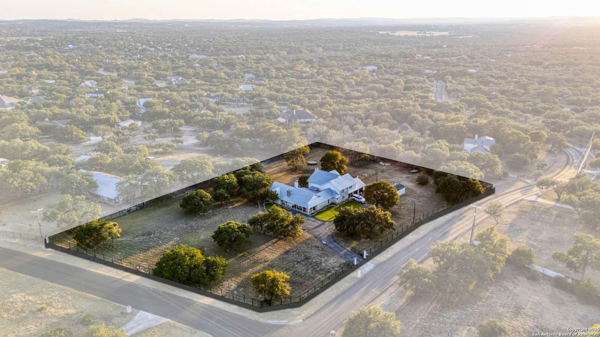 HUGE, high-dollar renovation already completed by the sellers! This newly renovated luxury estate sits on a private 2.46 acre corner lot in the heart of Fair Oaks Ranch, zoned to exemplary Boerne ISD-perfect for buyers seeking space, privacy, and refined living. This stunning 5-bedroom, 3.5-bath residence offers 4,358 sqft an elegant yet functional open-concept design with multiple living and dining spaces, all finished with new luxury vinyl plank flooring throughout. Heavy-duty metal double entry door sets the tone for the quality and craftsmanship found inside. The chef's kitchen is anchored by a 12-foot island, custom white oak cabinetry, Thermador appliances, and connects seamlessly to the family room, where large sliding glass doors open directly to the back porch, creating a beautiful transition to outdoor living. The main-level primary suite is a true retreat, featuring dual vanities, a walk-in shower with full-length bench, expansive closet, private office/flex space, and a cozy fireplace. A second fireplace enhances the main living room. Upstairs, an expansive game room opens to a private deck overlooking the Hill Country. Outdoor living shines with a grand covered patio and wood-burning stone fireplace, all set behind private gates and surrounded by mature trees. A rare opportunity to own 2+ acres of land with luxury finishes, privacy, and convenience-just minutes from top schools, shopping, and dining in one of Fair Oaks Ranch's most prestigious settings.