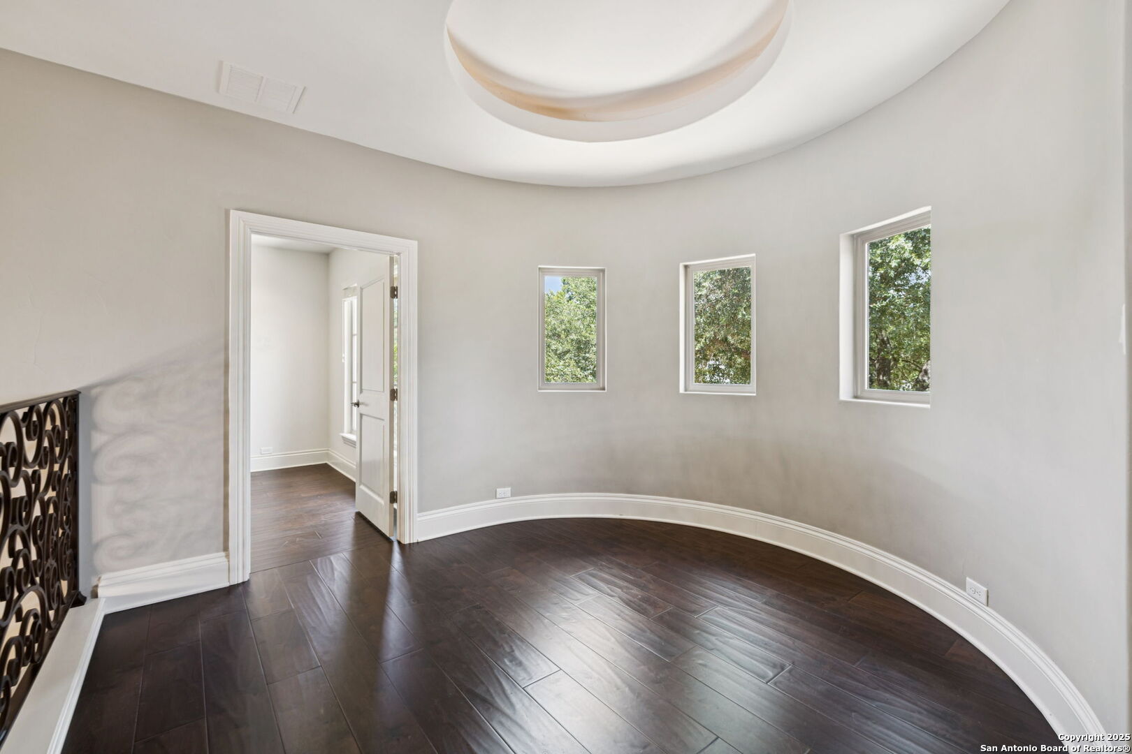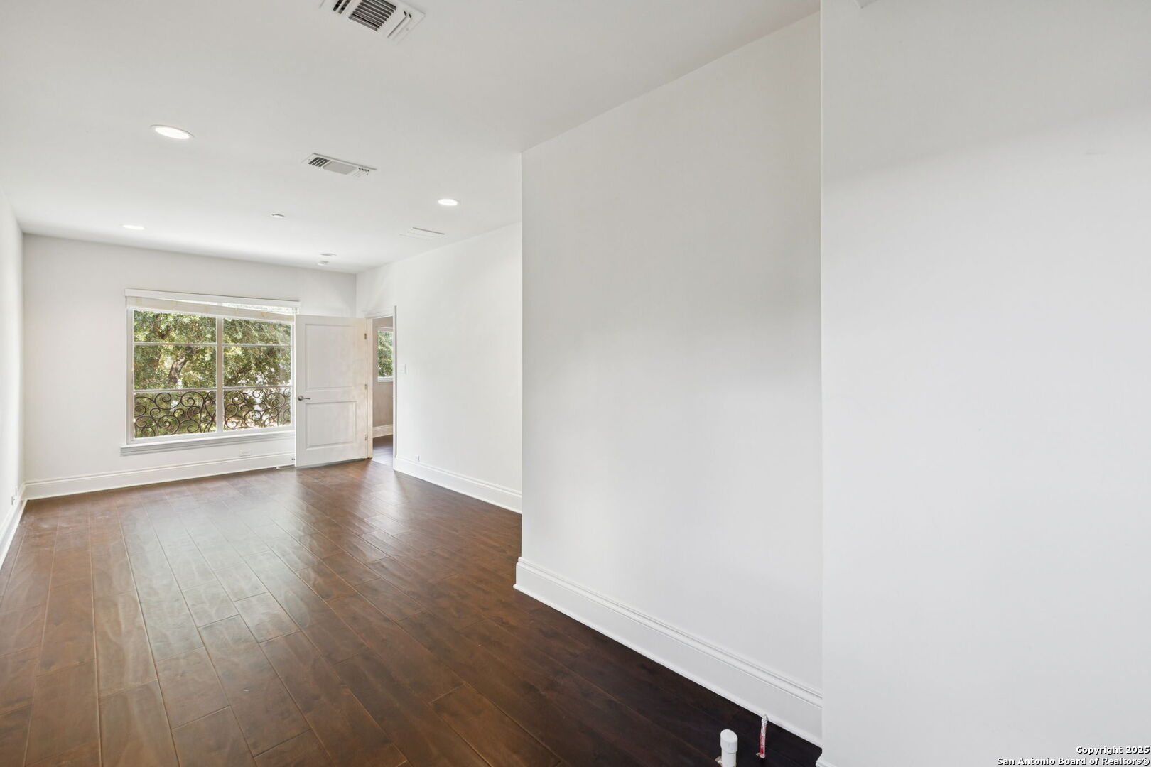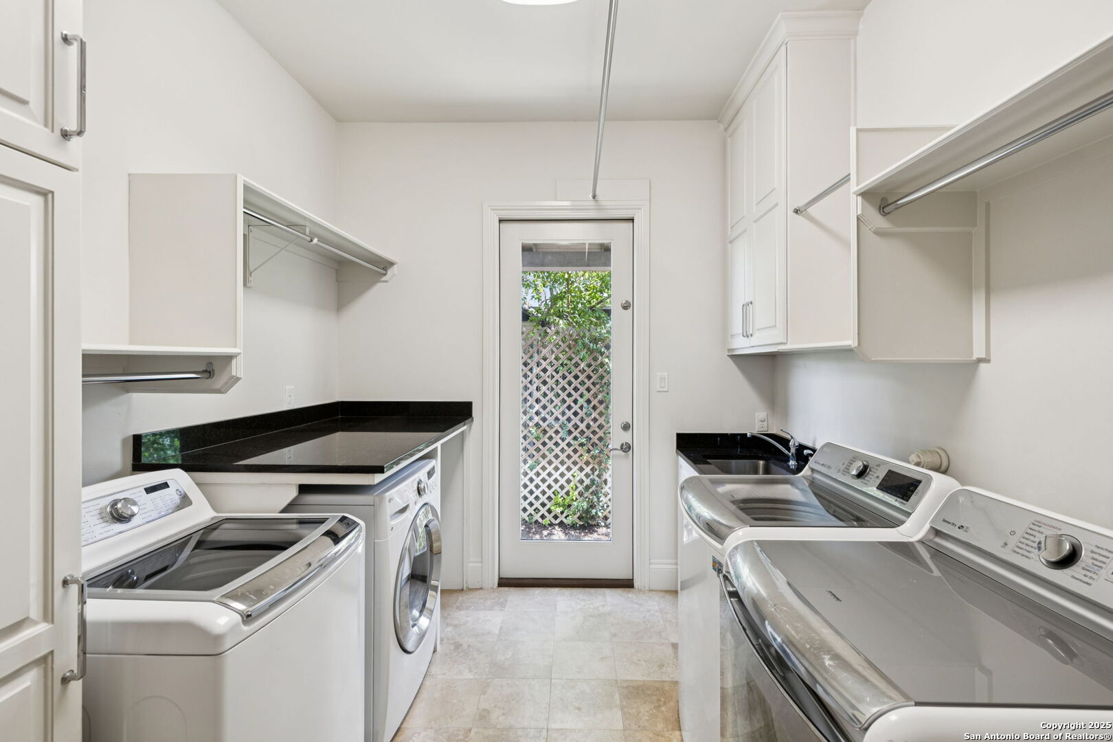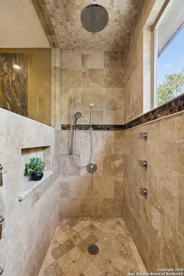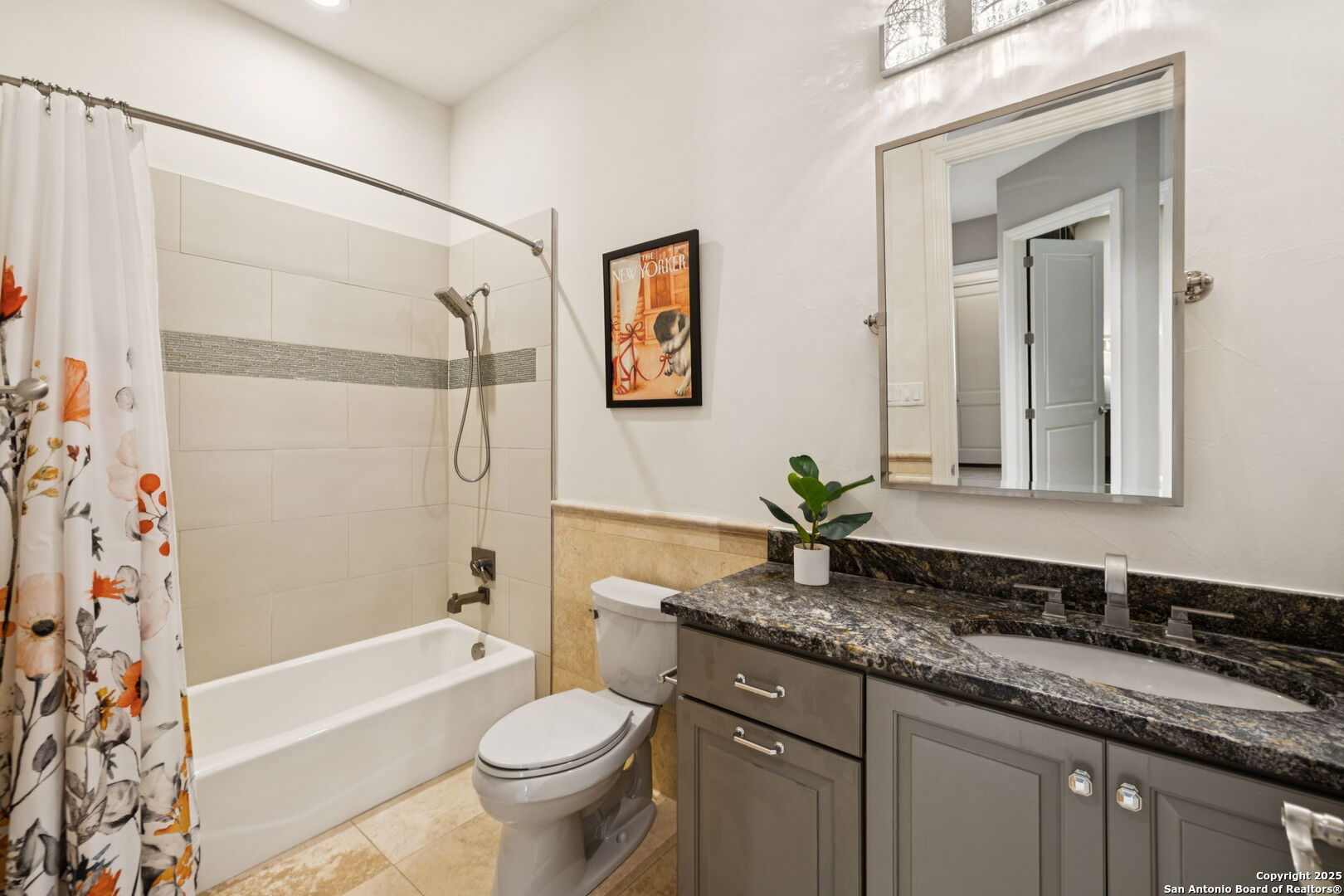 In one of San Antonio's most coveted ultra-luxury communities, this Burdick custom home pairs beautifully finished interiors with a year-round resort atmosphere. Hardwood and travertine floors lead through open, light-filled spaces with 25-foot ceilings, where quartzite and honed granite surfaces and striking light fixtures set an elevated tone. Two bedrooms, including the primary suite, are on the main level along with a private office and media room. The kitchen is anchored by a handsome stainless Wolf gas range and custom cabinetry. The primary suite features an incredible walk-in closet and a bath with a steam shower and a dramatic marble wall above the tub. Upstairs, a generous flex space adapts for storage, fitness, or a second office. Glass accordion doors open to a Keith Zars pool and spa with natural rock waterfall and slide, an outdoor kitchen with built-in grill and Green Egg, and an outdoor shower surrounded by lush landscaping and shaded terraces. 4 bed 4 bath 4258 sq ft .32 acre 25 ft ceilings Private study Media room Flex room Pool + spa w outdoor shower 3 car garage