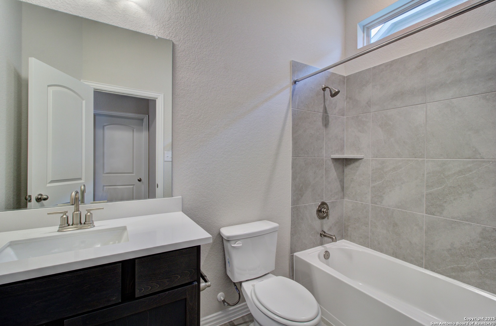 Welcome to the Tahiti plan by DRB Homes. DRB Homes at Clear Creek are the only new homes with direct access to I 35 access road. This is a two story home, with 4 bedrooms and 3 bathrooms located at Clear Creek. The exterior of the home features brick & stone, a covered patio, full yard sprinkler system, 6 foot privacy fence with a gate, and 2 car garage. Kitchen features 42" wood cabinetry with crown molding with 2 glass doors at upper cabinets, a buffet, Stainless steel gas appliances, Kitchen island with sink, corner pantry, granite countertops with ceramic tile backsplash. Owner's suite is located at the rear of the home featuring Marlena dual sink vanity with 42" mirrors, generous sized closet, private water closet, linen closet, and large free standing shower with tile surround and glass shower door. Clear Creek residents enjoy direct access to the access road of I35. The nearby Lake Dunlap is a peaceful retreat for fishing and other water activities. Nature enthusiasts will appreciate the proximity to Canyon Lake, where scenic views and outdoor adventures await. Downtown New Braunfels boasts exciting entertainment, boutique shopping, local dining, and events. The Gruene Historic District is a hub for live music, events, and the famous Gruene Hall. Come experience the beauty and convenience of Clear Creek in New Braunfels.