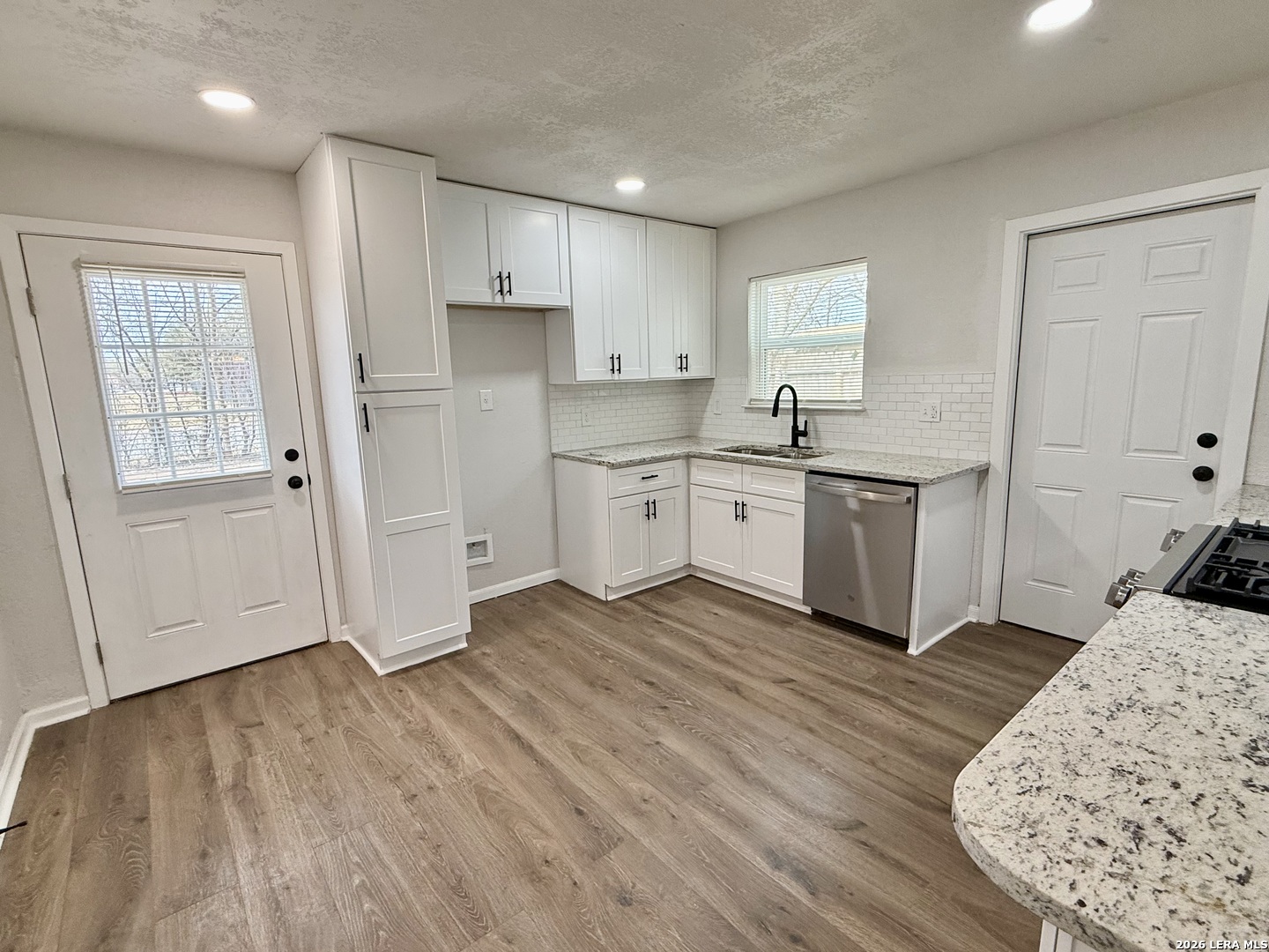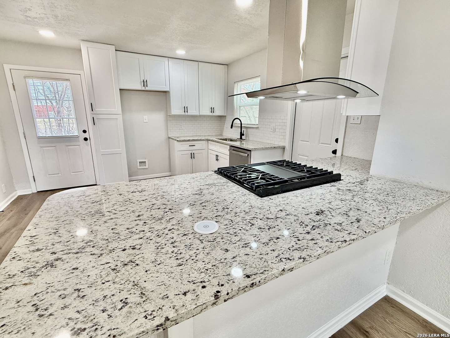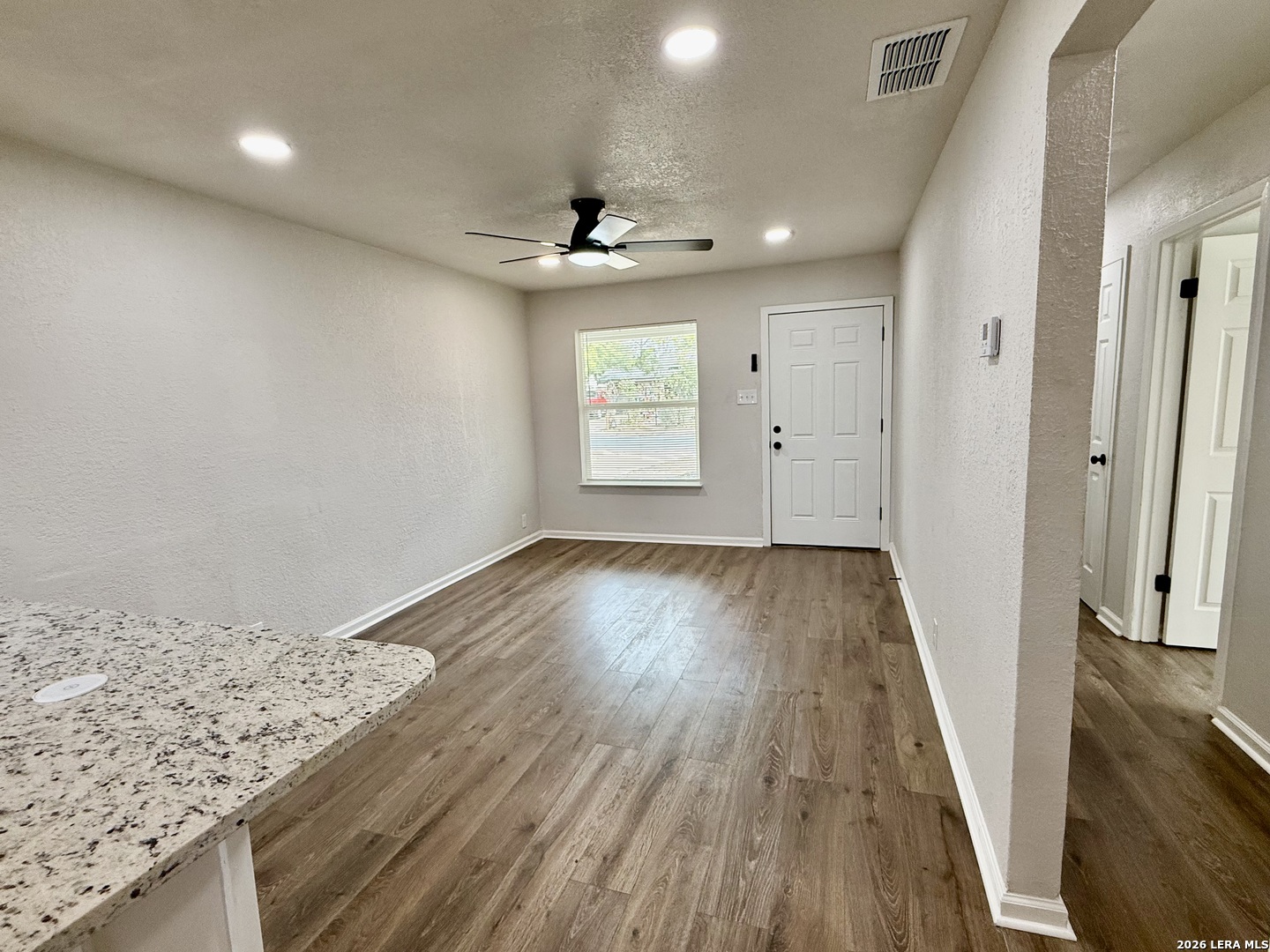 Completely Renovated & Move-In Ready! Welcome to 839 Pleasure Park, a beautifully updated single-story home offering modern style, comfort, and functionality throughout. This property has been thoughtfully renovated from top to bottom, with all rehabilitation completed in compliance with City of San Antonio building codes, providing peace of mind for the next owner. The brand-new kitchen features new cabinetry, granite countertops, a pantry, and a spacious breakfast bar-ideal for both everyday living and entertaining. All-new stainless steel appliances include a range, dishwasher, and a sleek ceiling-mounted vent hood. Interior upgrades include new flooring throughout, new double-pane windows, new exterior, interior, and closet doors, a new garage door, updated lighting, and new ceiling fans. The bathroom has been fully refreshed with new tile and a new vanity. Major system improvements include a new roof, a new HVAC system, and updated electrical and plumbing brought up to current code. The one-car garage has been sheetrock-patched for a clean, finished look and includes washer and dryer connections, additional storage space, and a door providing direct access to the backyard. Exterior improvements include a new mailbox, refreshed front landscaping, and a clean backyard-ready for your personal touch and design, a true blank canvas. Located in a quiet, established neighborhood with convenient access to major highways, shopping, dining, and parks. Situated within Northside Independent School District. Schedule your private showing today!