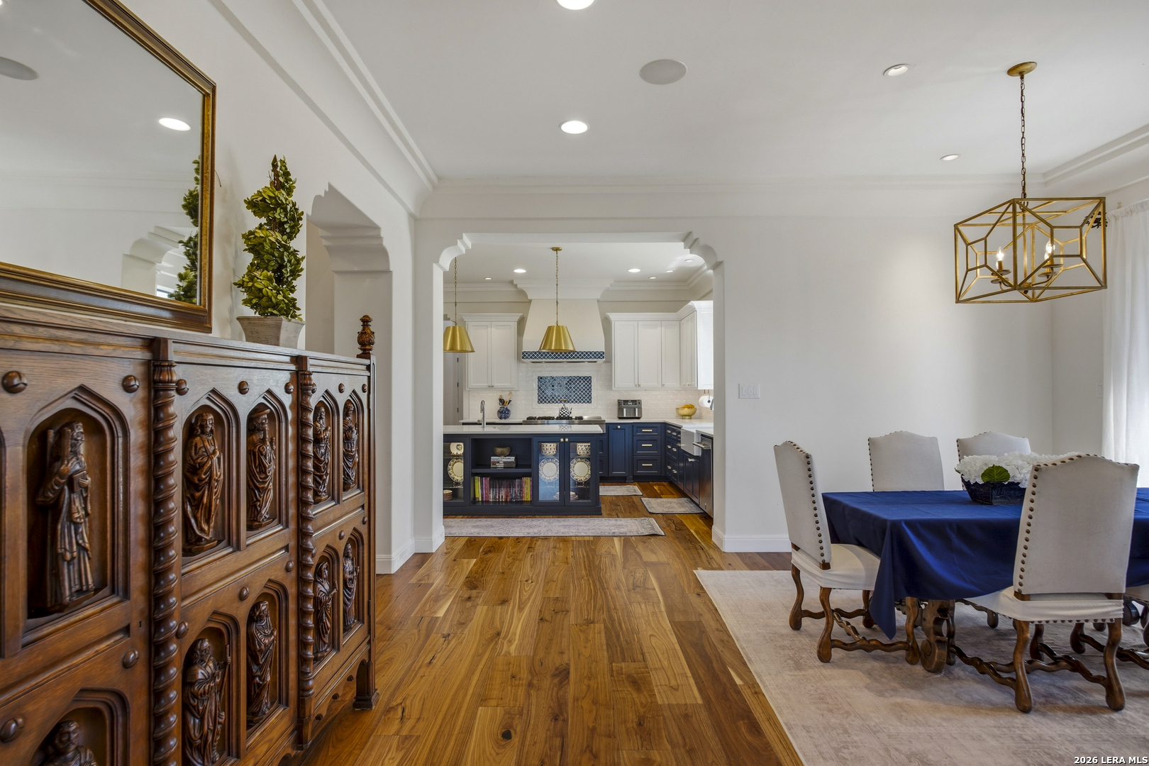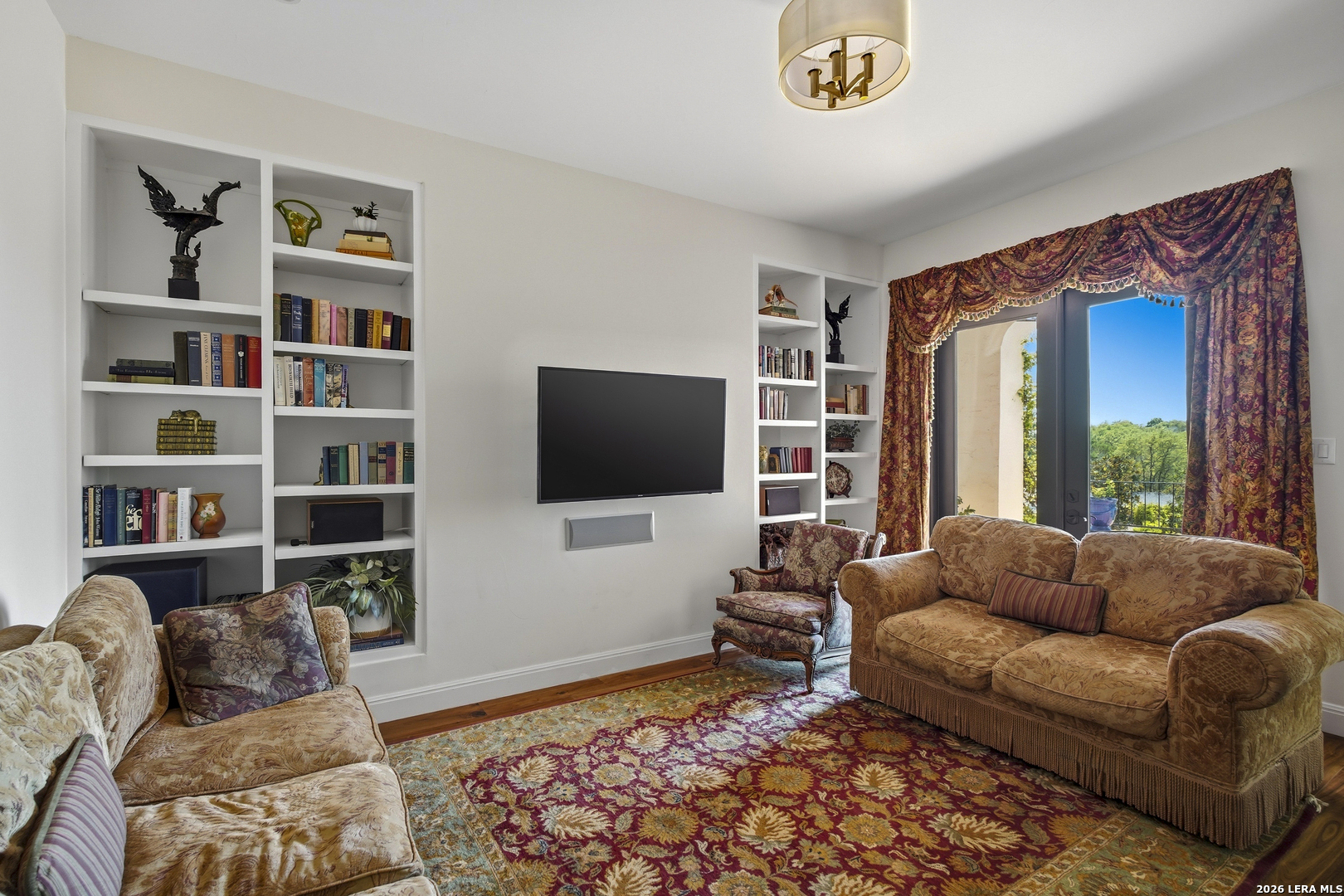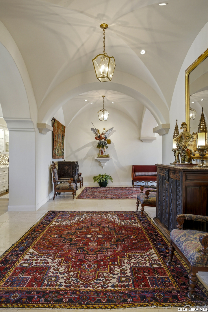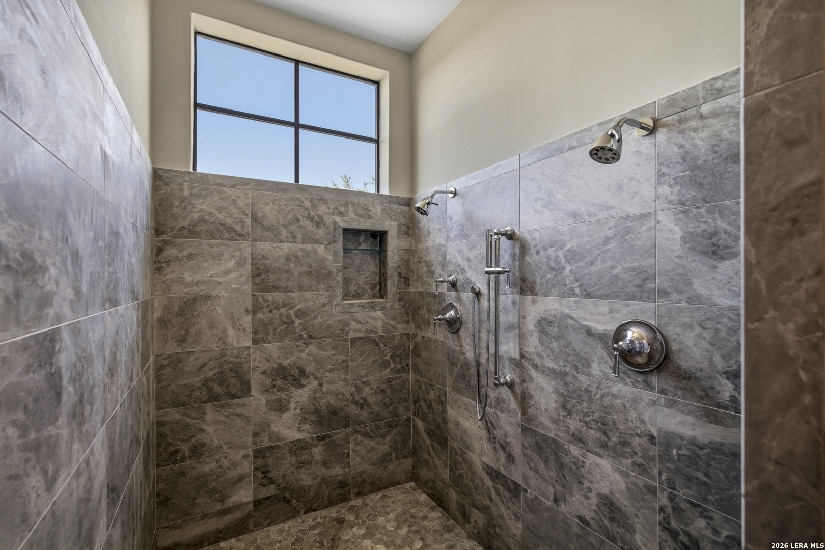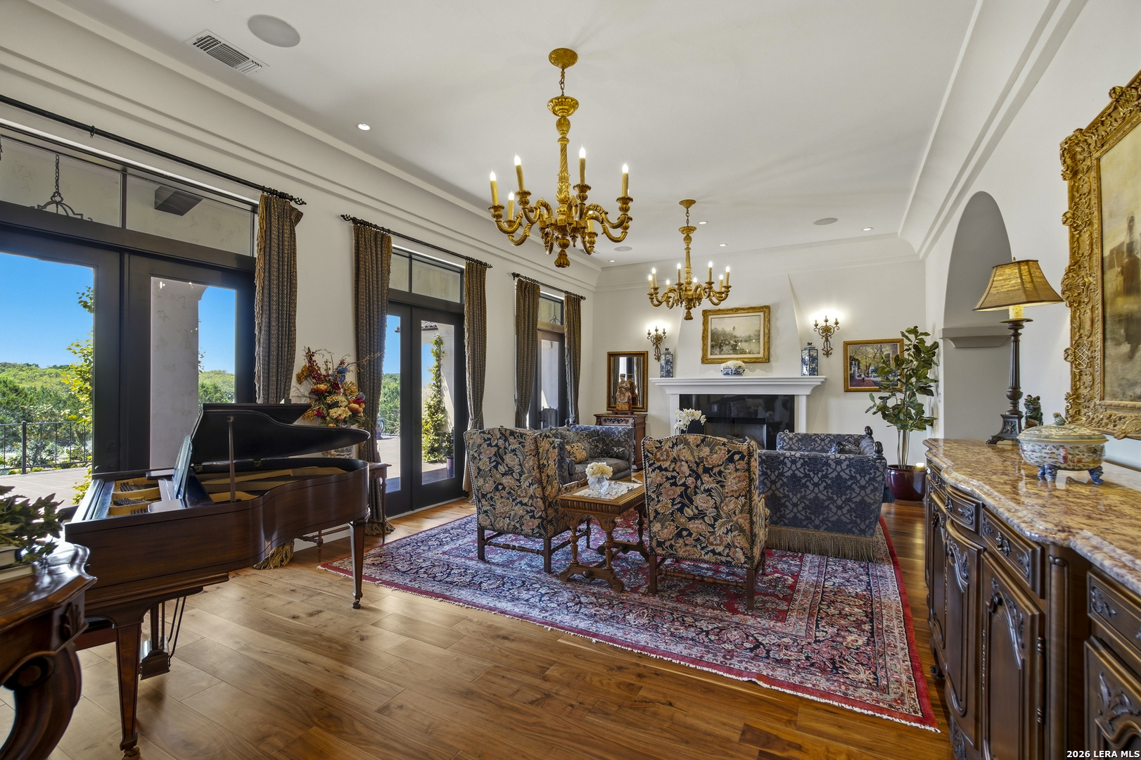 Nestled within the highly desirable Cordillera Ranch community, this stunning Spanish-style luxury estate sits on just over 2.5 acres, offering exceptional privacy surrounded by mature trees and natural beauty. As you enter the home, you're immediately welcomed by the first living area, where expansive views of your outdoor oasis set the tone. This inviting space features a fireplace and ample room for gathering, seamlessly blending indoor comfort with outdoor charm. To the left, a graceful gallery leads you past a separate formal dining room, perfect for hosting elegant dinners. Beyond, the home opens into a spectacular great room with an open-concept layout connecting the breakfast area, kitchen, and wet bar, complete with a sink and beverage refrigerator, creating an ideal setting for entertaining. The kitchen is a true centerpiece, featuring a large island, abundant cabinetry, double ovens, gas cooking, marble countertops, and a farmhouse sink perfectly positioned beneath a window overlooking the outdoors. A butler's pantry enhances functionality with a wine fridge, sink, and space for a second refrigerator, in addition to a separate walk-in pantry. On the opposite wing of the home, a cozy sitting room leads into the luxurious primary suite. This private retreat includes two walk-in closets and a spa-like bathroom with a garden tub, walk-in shower, and dual vanities. The main level also offers three additional bedrooms, each with walk-in closets, two connected by a Jack and Jill bathroom and one featuring its own en suite. Upstairs, you'll find a versatile hobby or craft room along with a spacious bonus room, ideal for a game room or additional living space. Step outside to your own private oasis, designed for both relaxation and entertaining. Expansive covered patios, an outdoor kitchen with a gas grill and sink, and a charming courtyard all overlook breathtaking views. The space continues with a step-down to a large pool, complete with a pergola and adjacent fire pit, as well as a whole garden for added tranquility. A separate patio pergola off the breakfast room offers yet another peaceful retreat. Additional features include a spacious laundry room, a 4-car attached garage, and abundant natural light throughout the home, enhancing its warm and inviting atmosphere. This remarkable property combines timeless Spanish architecture, thoughtful design, and serene surroundings to create a truly exceptional living experience.