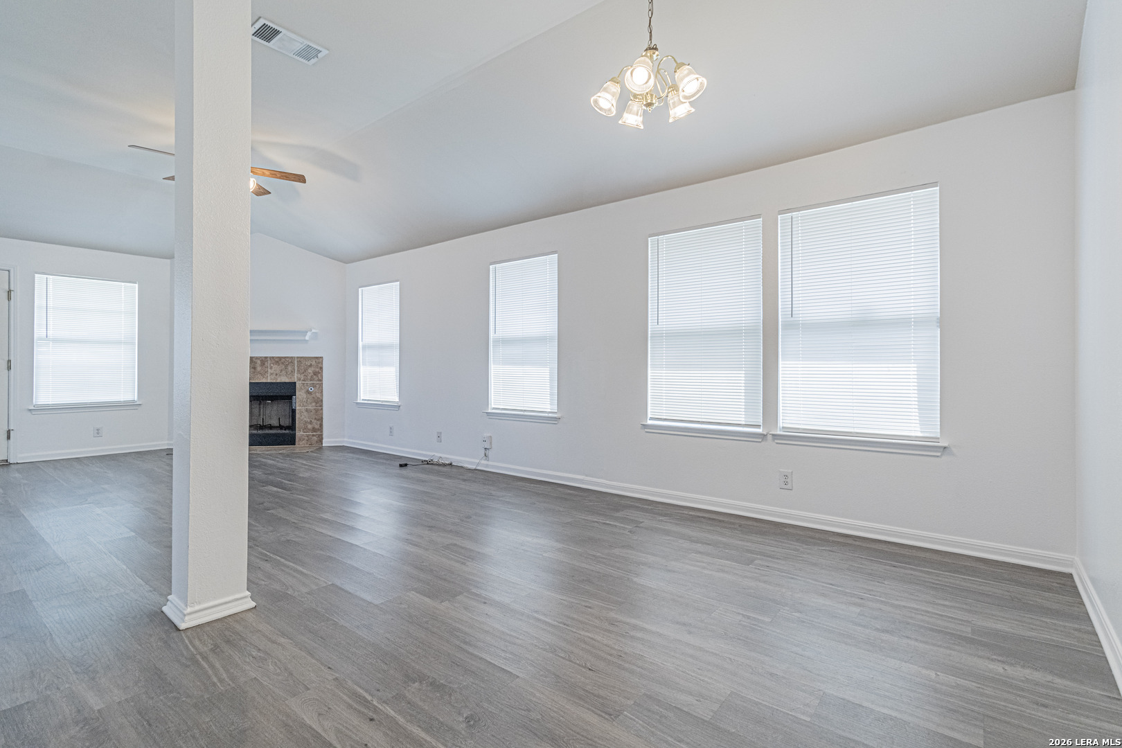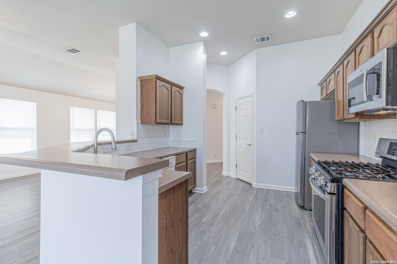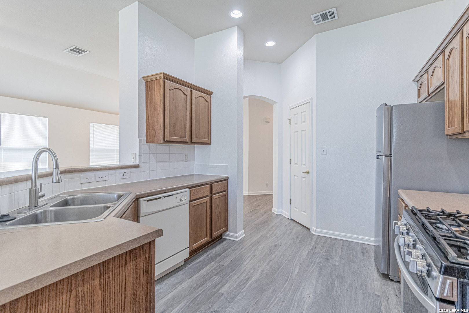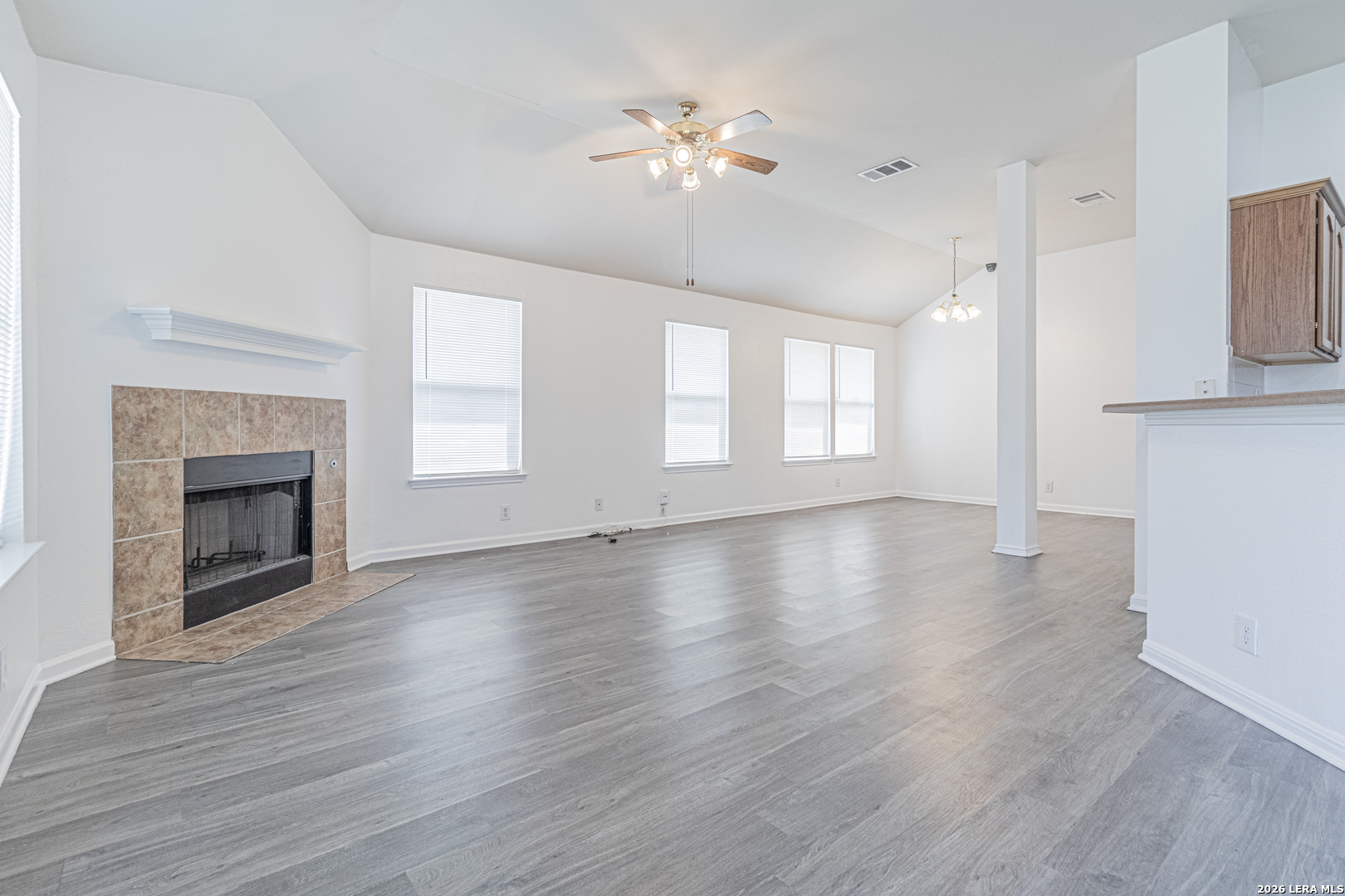 Charming one-story home featuring 3 bedrooms, 2 bathrooms, and a private office, perfectly designed for comfortable living. This inviting home offers an open floor plan with a spacious family room, highlighted by high ceilings and a cozy fireplace ideal for gathering and entertaining. Enjoy both a formal dining room and an eat-in kitchen complete with a gas range, providing plenty of space for meals and hosting. The master suite is generously sized and includes a private office tucked behind elegant French doors, along with a full bathroom featuring dual vanities. Brand-new flooring and fresh paint throughout the home give it a clean, modern feel and make it truly move-in ready. Conveniently located in Converse, just minutes from Randolph AFB and Ft. Sam Houston, this home offers both comfort and accessibility.