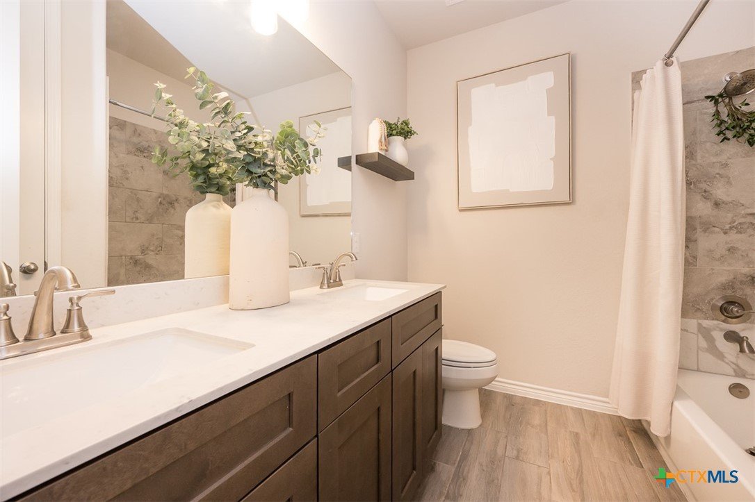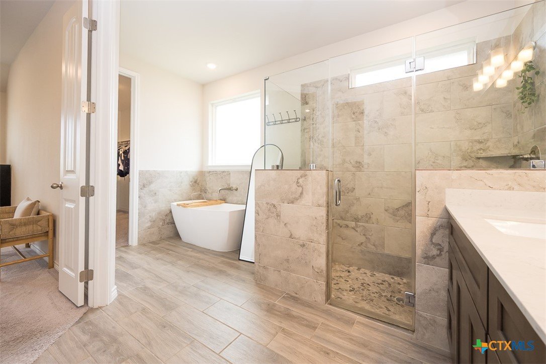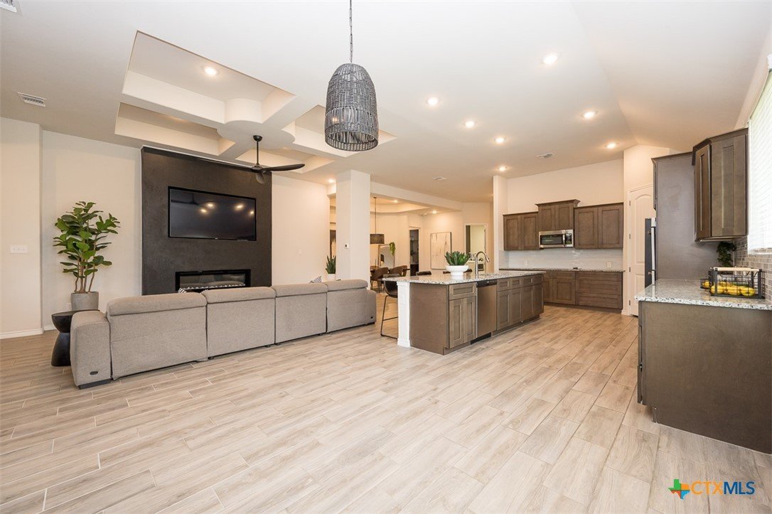 Set on an over quarter-acre lot, this home offers the space you’ve been looking for with a backyard ready for relaxing, entertaining, or future possibilities. The exterior makes a strong first impression, leading into an immaculate interior designed for both comfort and style. Inside, wood-look tile floors flow through a stunning open living area that seamlessly connects the dining room, great room, and kitchen. The dining room features a tray ceiling that adds character, while the great room is anchored by a bold fireplace. The island kitchen is a standout with stainless steel appliances, granite counters, a white subway tile backsplash, and an abundance of cabinet space to keep everything organized. The owner’s suite is generously sized, creating a true retreat at the end of the day. The en suite bath feels like a spa with a modern soaking tub, separate walk-in shower, and plenty of space to unwind. A 3-car garage adds convenience and flexibility, and the covered patio out back is the perfect spot to enjoy the expansive yard. This home combines space, style, and thoughtful design in a way that’s easy to appreciate from the moment you walk in.