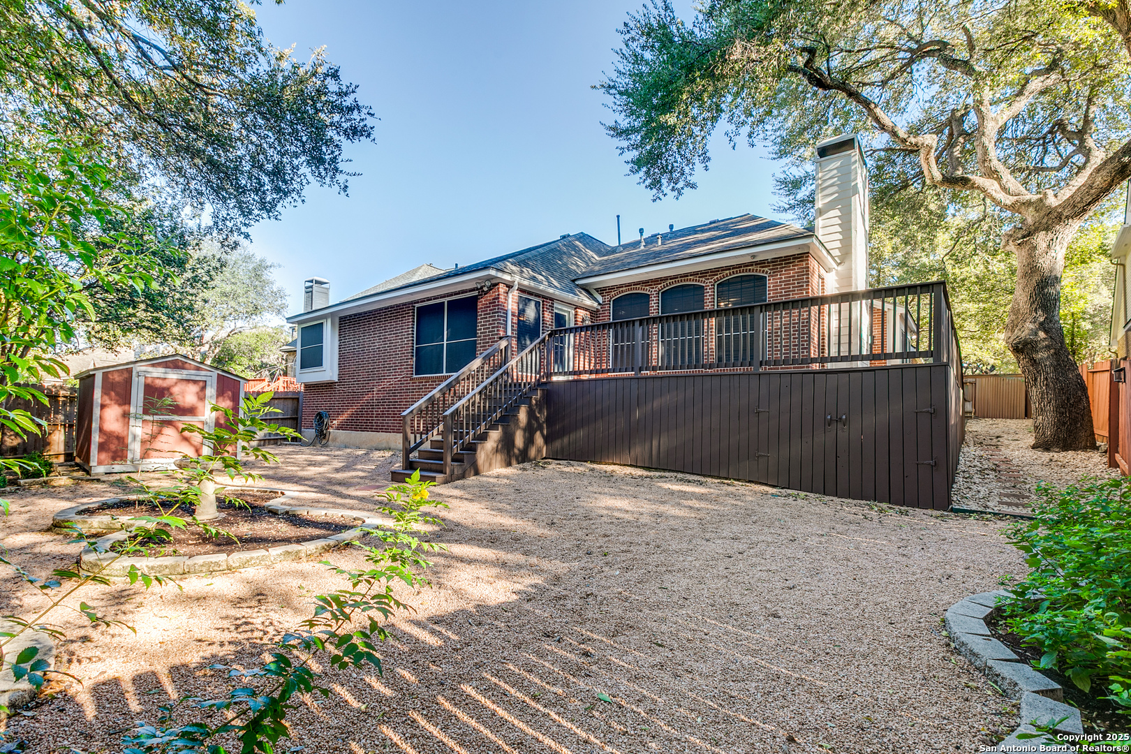 Welcome to beautiful Camino Bandera's one story, 4 bedroom, 2 1/2 bath dream home! Well designed updates provide fresh, modern living in the bright and airy 2492 sq ft residence. The stylish interior includes granite countertops and KitchenAid stainless steel appliances. The eat in kitchen has additional seating at the surrounding breakfast counter. Primary bathroom is renovated with a large walk-in shower, dual vanities, two closets and extra storage. Outdoors there's a spacious wrap around Deck, New Roof (2025), sprinkler system, low maintenance landscaping, and a Tuff shed. All windows are fitted with energy efficient Solar Screens and Blinds. This move-in-ready property is near the Community Pool, Tennis & Sports Courts & Playground. Truly, a custom, comfortable retreat!