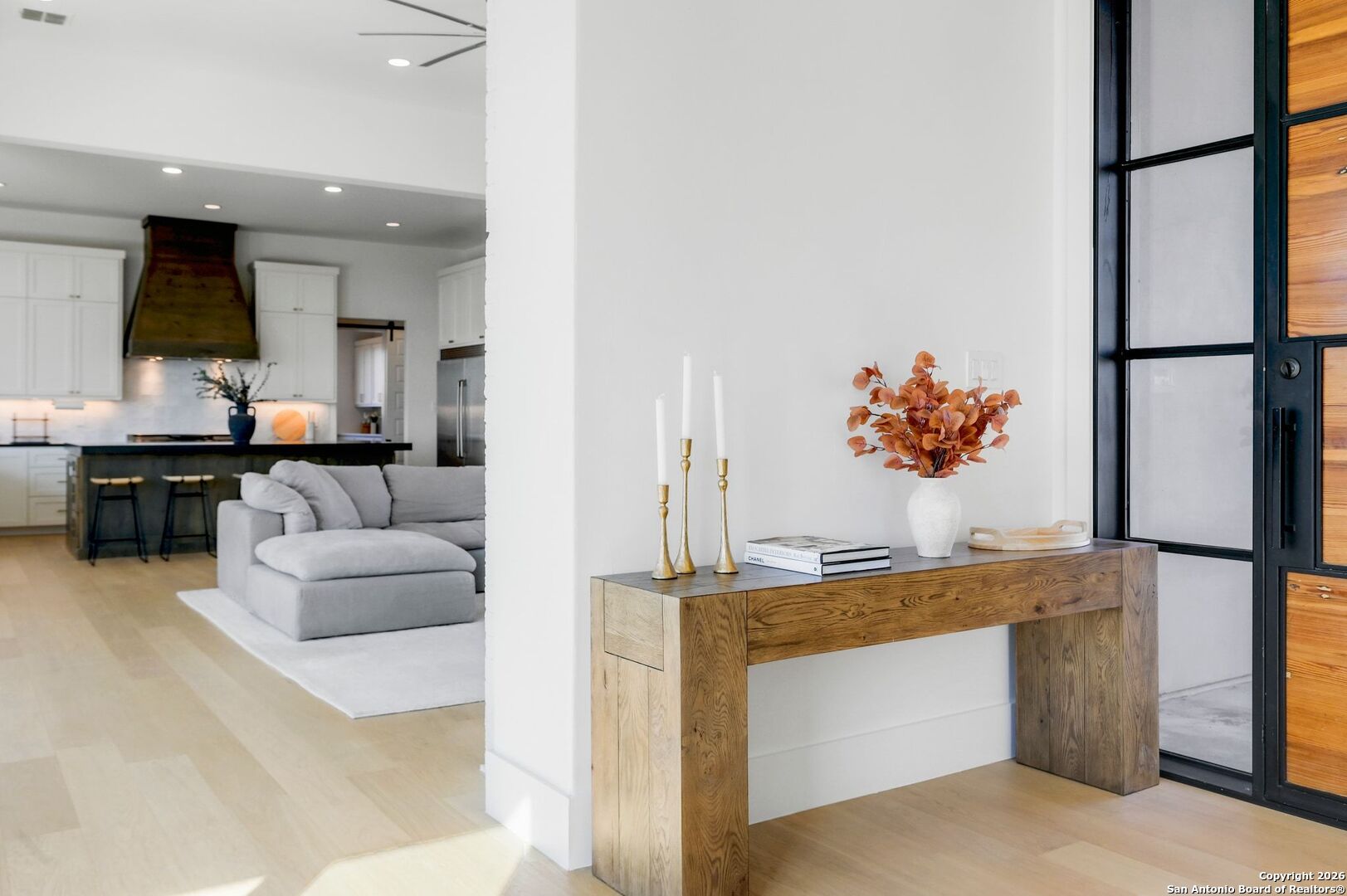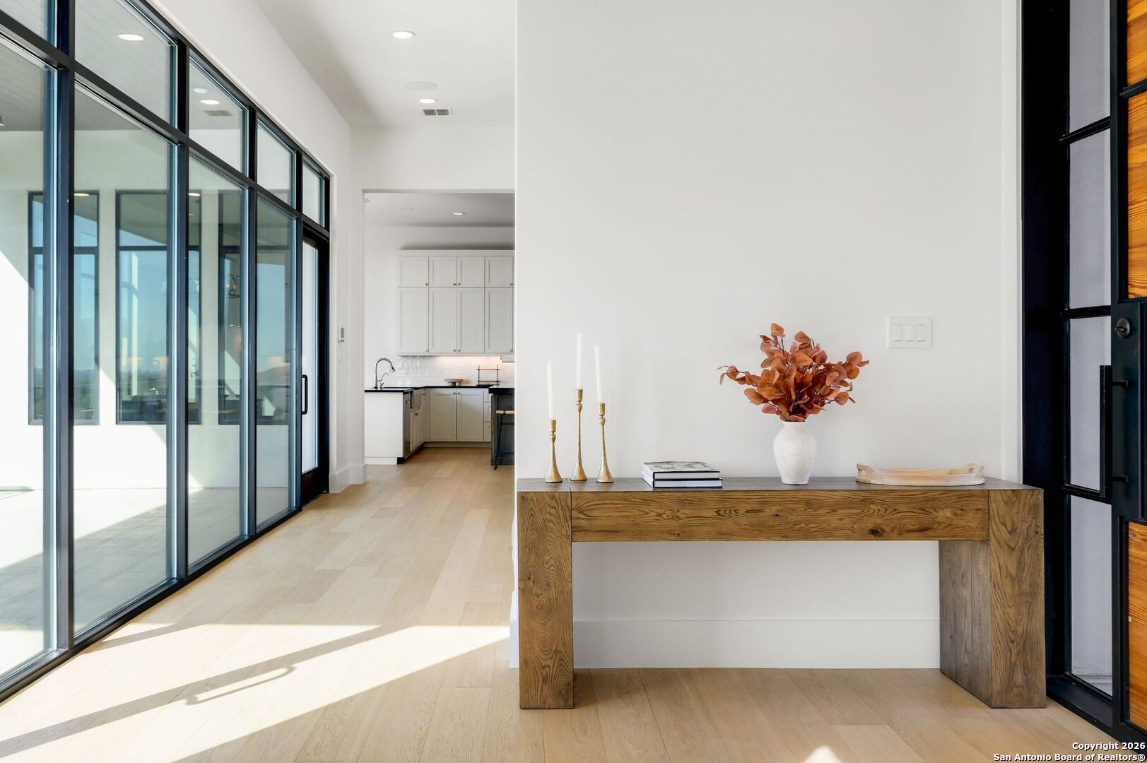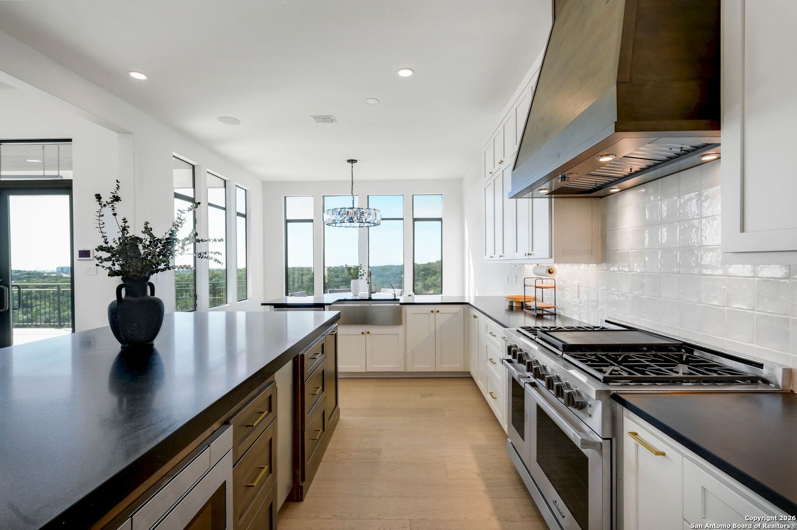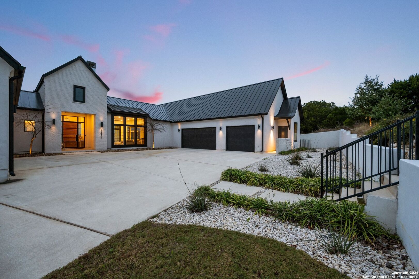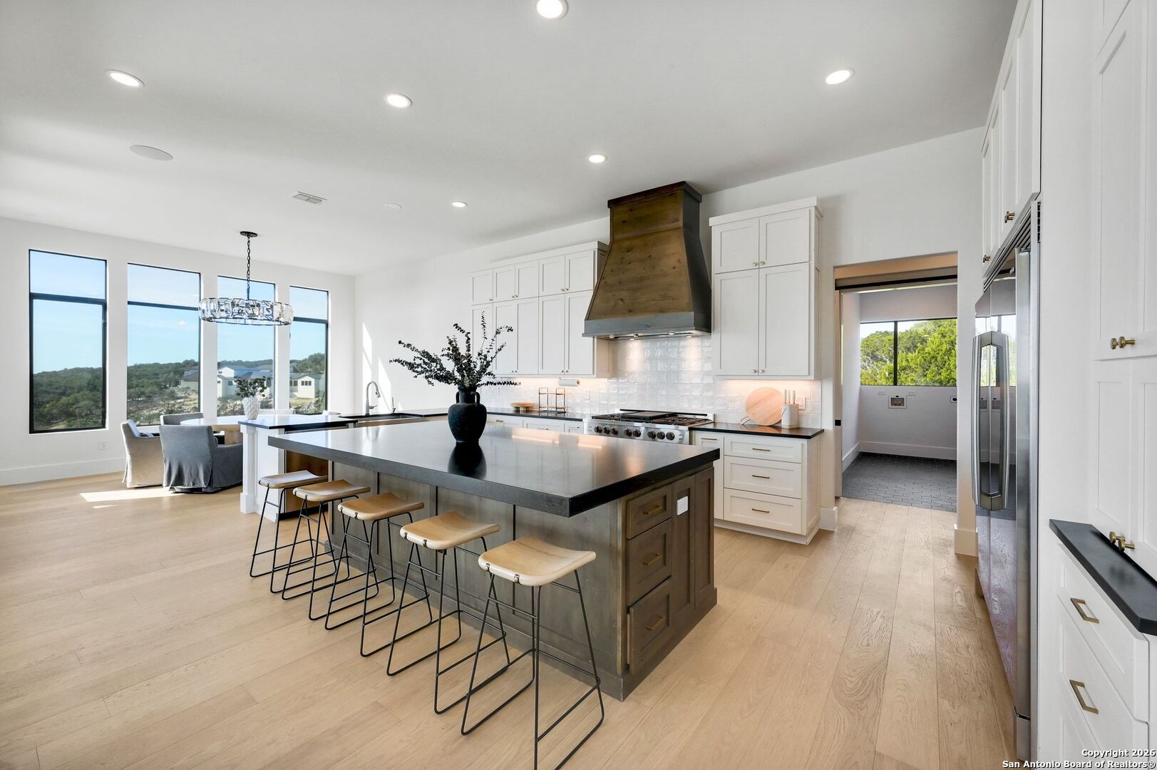 Located within the prestigious, gated community of Terra Mont, this remarkable contemporary estate spans approximately 7,059 square feet and has undergone a complete, top-to-bottom remodel. Designed for elevated living and exceptional versatility, the home offers four bedrooms, four full and two half baths, a private study, game room, three-car garage, and an expansive 1,350-square-foot climate-controlled flex space. From the moment you arrive, refined craftsmanship and thoughtful design are evident throughout. The entire home features upgraded Boracho wall texture, replacing the original Monterey finish, and has been freshly painted in Snowbound with a modern flat finish. All previous wood and tile flooring were removed and replaced with brand-new Kentwood wood flooring throughout the residence. Architectural enhancements include 8-inch baseboards and custom motion-sensor lighting on the staircase. The open-concept living spaces are filled with natural light and framed by a dramatic wall of windows showcasing breathtaking Hill Country views. A floor-to-ceiling brick fireplace anchors the main living area, creating an inviting atmosphere ideal for both entertaining and everyday living. The chef's kitchen is both elegant and highly functional, featuring a professional six-burner gas range, oversized island with seating, custom cabinetry, a stainless farmhouse sink, and a built-in double-width Sub-Zero refrigerator. The pantry has been extended and upgraded with a custom pantry closet, offering exceptional storage and organization. A truly standout feature of the home is the soaring 24-foot indoor half-court gym-an extraordinary space rarely found in residential properties. Designed for basketball, volleyball, or pickleball, the gym includes an overhead door that opens to fresh air for year-round enjoyment, as well as an upper-level veranda providing a unique spectator or lounge viewing area above the court. This impressive space adds a dynamic and versatile element to the home, ideal for recreation, training, or entertaining on a grand scale. A thoughtfully positioned study near the main living area includes built-in storage and a secondary refrigerator, offering added convenience for work-from-home living. The main level also features a private guest suite, while the primary retreat is secluded on the opposite side of the home. The primary suite is a true sanctuary, highlighted by expansive windows capturing sweeping 180-degree views of the downtown skyline and the Tower of the Americas. The primary closet has been dramatically expanded to approximately 40 feet and completed with a custom closet system featuring integrated LED lighting. The lower level has been fully finished and transformed into a multifunctional living and entertainment space. Updates include brand-new wood flooring throughout the basement, a dedicated gym area, private office, integrated speaker system, and a dedicated IT closet designed to house network and technology equipment. A spacious family room with fireplace and wood-accent wall, along with a billiard area, provides an ideal setting for relaxation and gatherings. Two additional guest suites offer privacy and comfort, including an expanded secondary upstairs bedroom bathroom with the addition of a private toilet room. Storage has been significantly enhanced with five newly added closets in the garage and a custom closet installed in the second bedroom. Outdoor living is seamlessly integrated through walls of glass that lead to multiple terraces surrounding the stunning infinity-edge pool and heated spa-perfect for enjoying Hill Country sunsets and effortless indoor-outdoor entertaining. The home has also undergone a major lighting and electrical upgrade, Lutron RadioRA 3 lighting control system and the entire home updated to modern LED lighting. This fully reimagined Terra Mont estate offers architectural distinction with exceptional amenities!