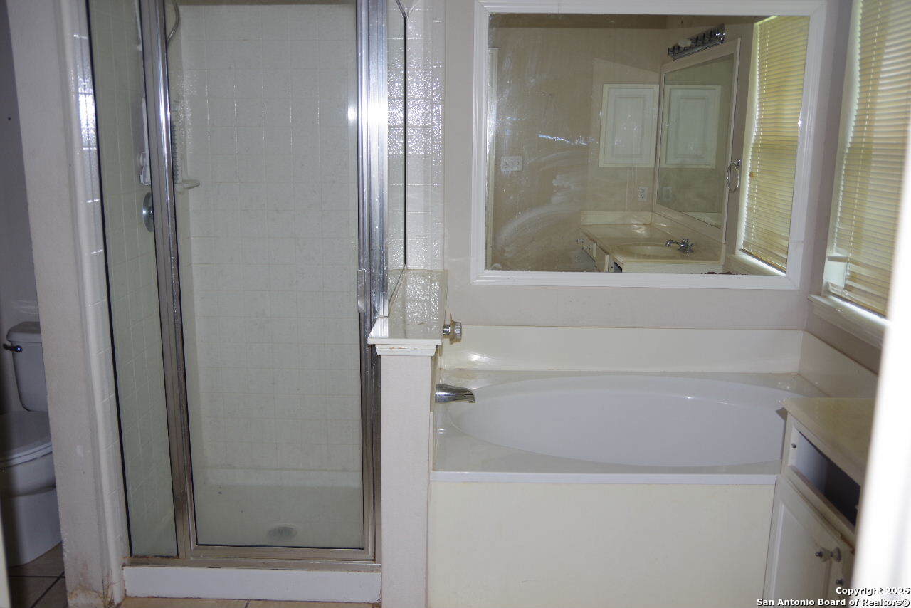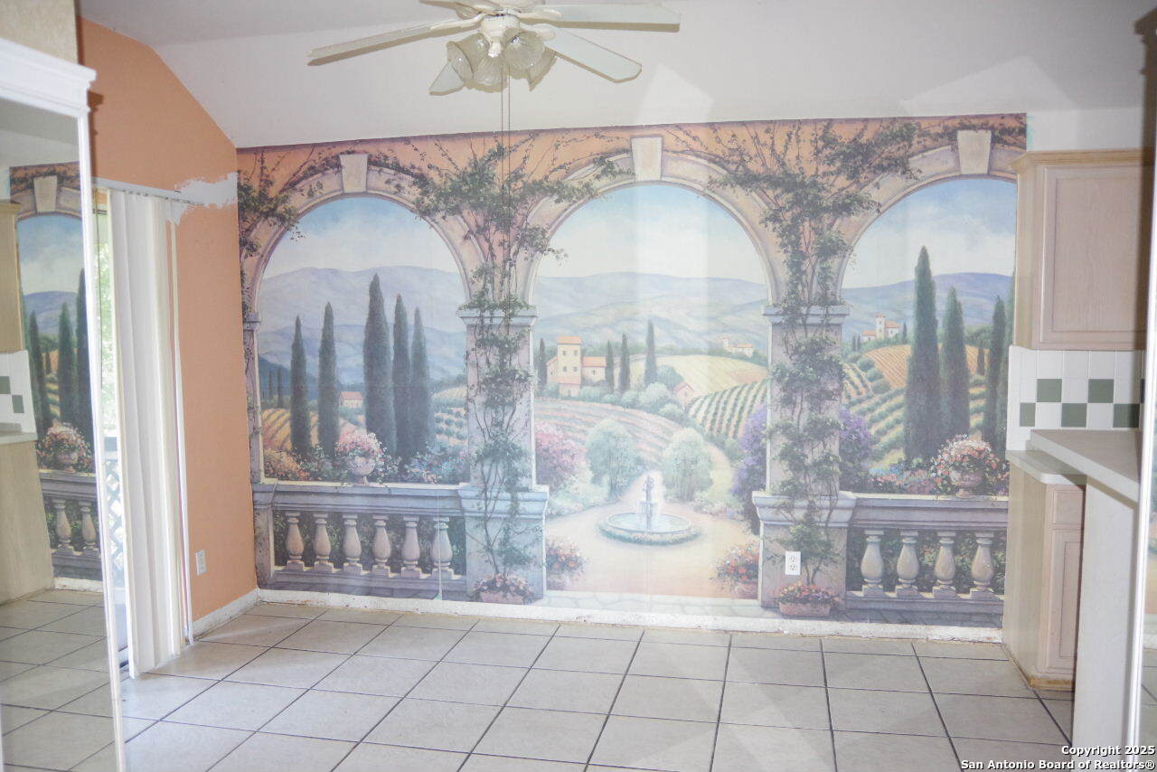 This single-story 3-bedroom, 2-bath home is located just minutes from Randolph AFB. As you enter, the formal dining room opens to the right, and the large living room opens before you. There is also a large breakfast dining room off the kitchen, leading to the covered balcony in back. The indoor laundry is just off the kitchen, just before you enter the garage. The primary bedroom is roomy, with a large bath featuring a garden-style bathtub and separate shower. Two other bedrooms and a full bath round out this spacious home.