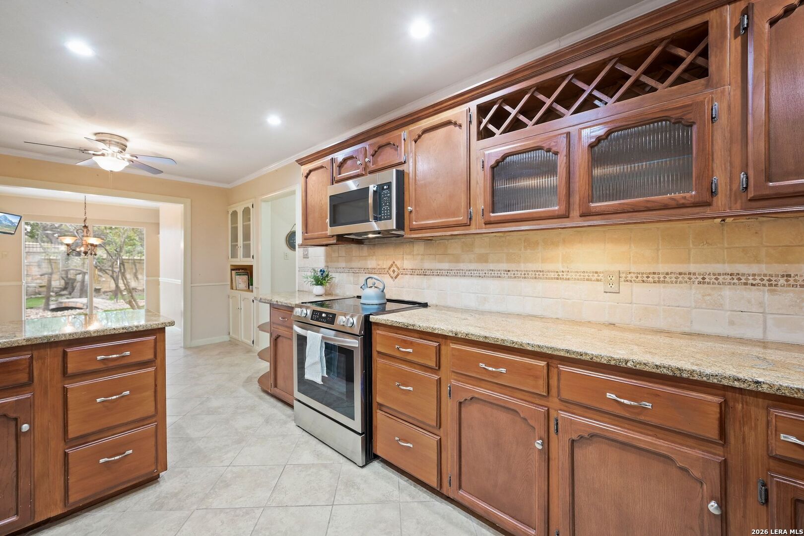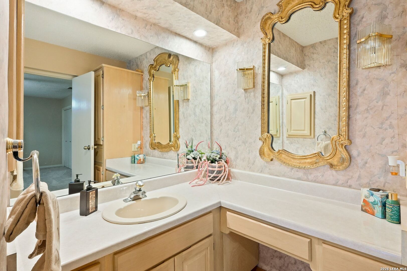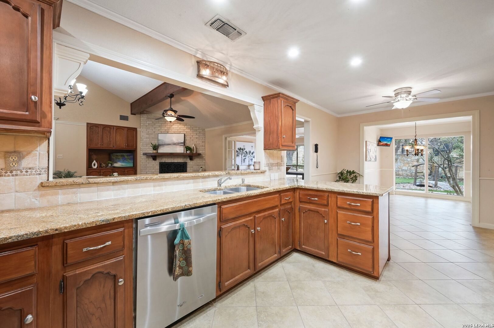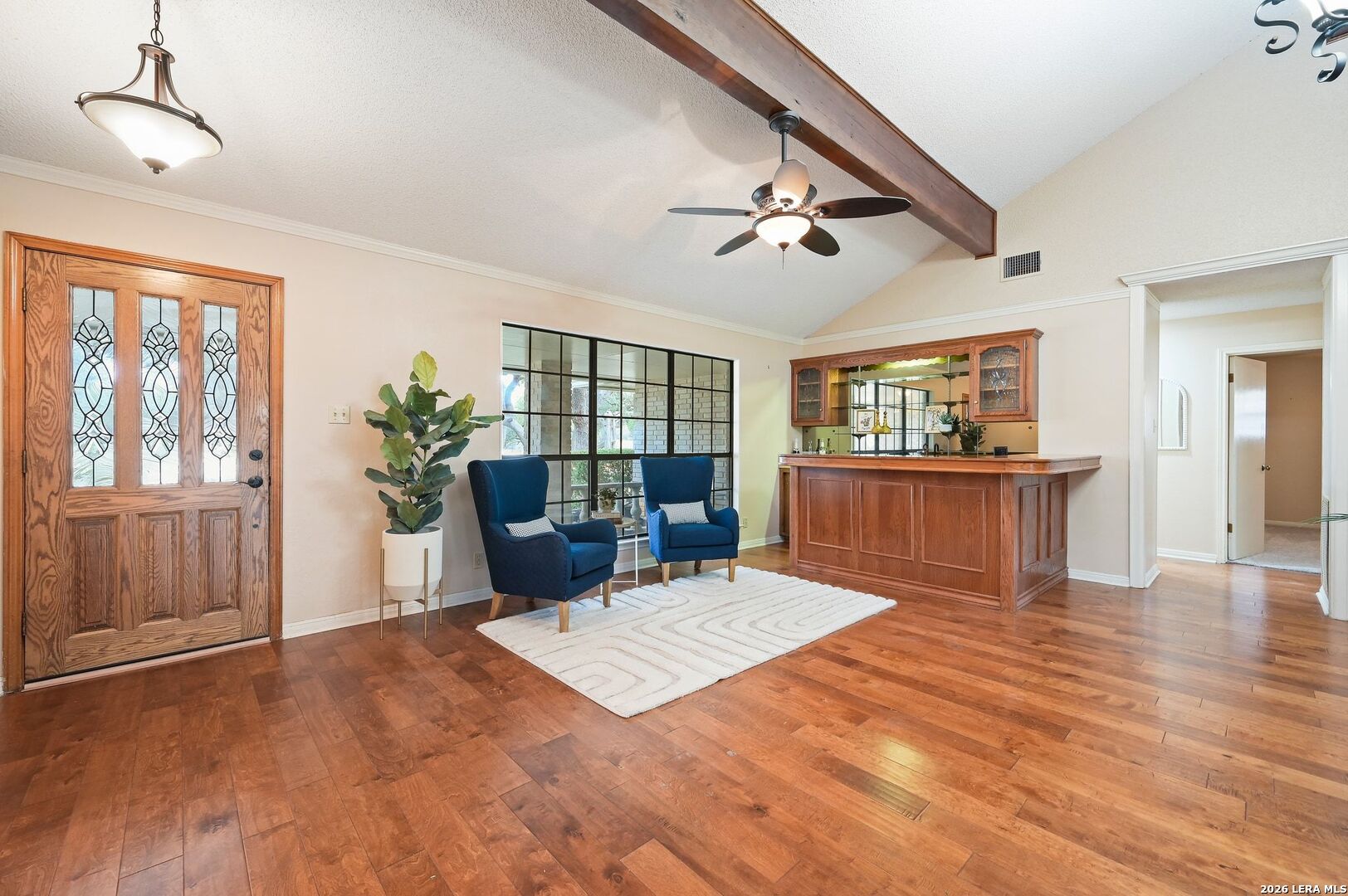 One-of-a-kind Fair Oaks Ranch single-story on 1.67 serene acres - quality-built and lovingly owned for 35+ years. This rare 4-bedroom, 3-bath home plus dedicated office blends timeless character and modern updates: metal roof, NEW water heater, cedar closet, updated traditional kitchen with eat-in area and antique built-ins, and a custom wet bar made for entertaining. Warm wood floors flow through the main living area to a dramatic floor-to-ceiling gas fireplace. Thoughtful, functional layout with ample storage throughout and a bedroom that includes its own dedicated full bathroom - ideal for guests or multi-generational living. The entire property is fenced with its own gated entrance, surrounded by mature trees for privacy, and includes a shed for extra storage. Step outside to a back patio that feels like a private sanctuary with tranquil water fountains and an expansive outdoor space. Enjoy true Texas Hill Country living while being conveniently close to I10, restaurants and shopping. Practical conveniences include a 2-car garage, circular drive and additional parking. Don't miss this rare chance to own a meticulously maintained, move-in-ready home in the highly coveted Fair Oaks Ranch - a once-in-a-generation opportunity!