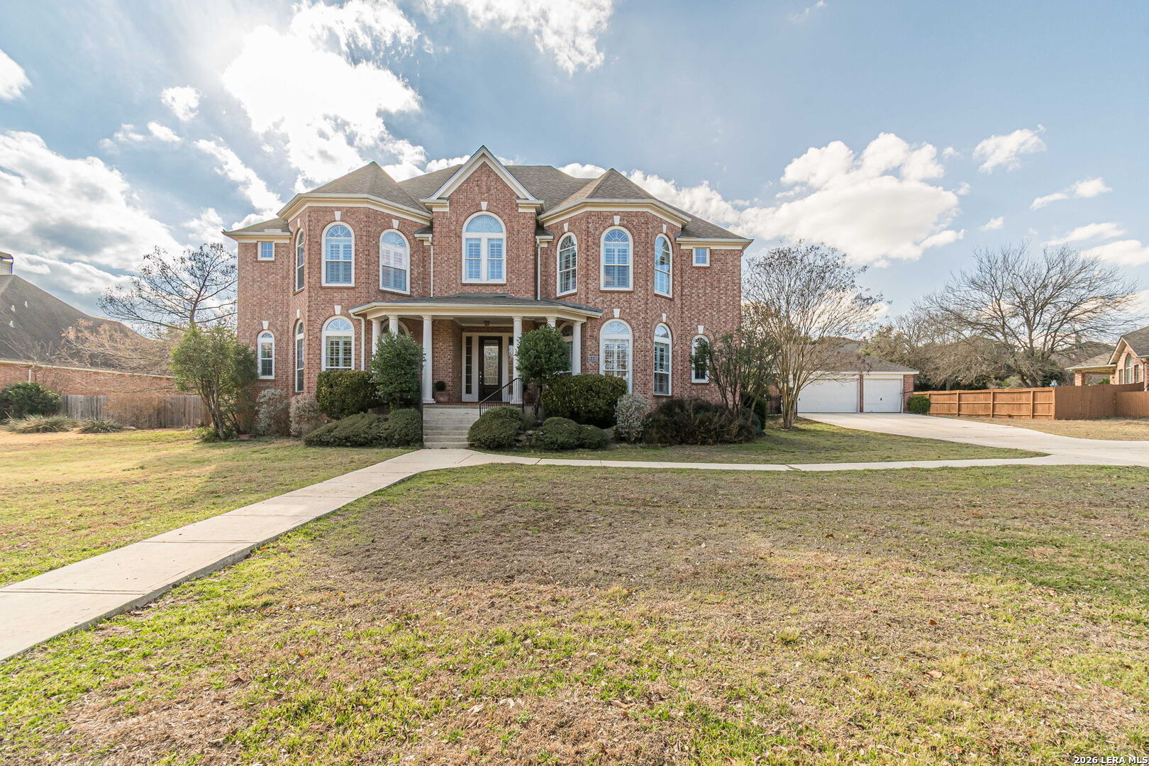Beautiful 2-story home located in the highly desirable Fair Oaks Ranch community, zoned to top-rated Boerne ISD schools and just minutes from the new H-E-B, I-10, and Fair Oaks Parkway. Situated on a spacious 0.63-acre lot, this property offers 5 bedrooms plus a dedicated office, 3.5 bathrooms, and a 3-car garage, providing comfort, flexibility, and privacy. Step inside to a bright, open floor plan featuring soaring ceilings open to the second floor and a dramatic 2-story stone fireplace as the focal point of the living area. The layout creates an airy and inviting atmosphere ideal for everyday living and entertaining. The gourmet kitchen features rich wood cabinetry, granite countertops, stainless steel appliances, and ample workspace. The primary suite is located downstairs, offering privacy and convenience with a spacious ensuite bath. Upstairs, you'll find additional bedrooms and bathrooms perfect for family or guests. The backyard offers plenty of space and potential to create your own outdoor retreat, with room for entertaining, gardening, or future customization.