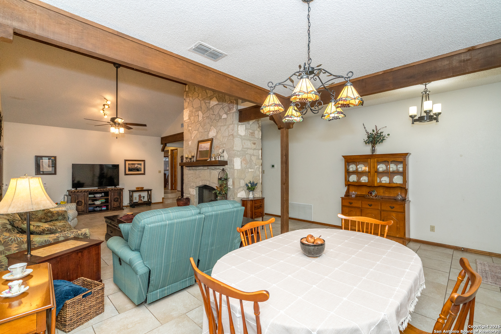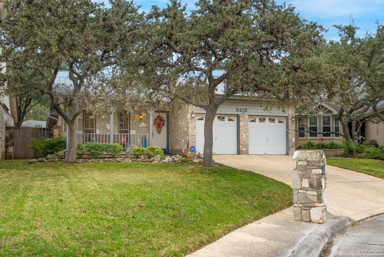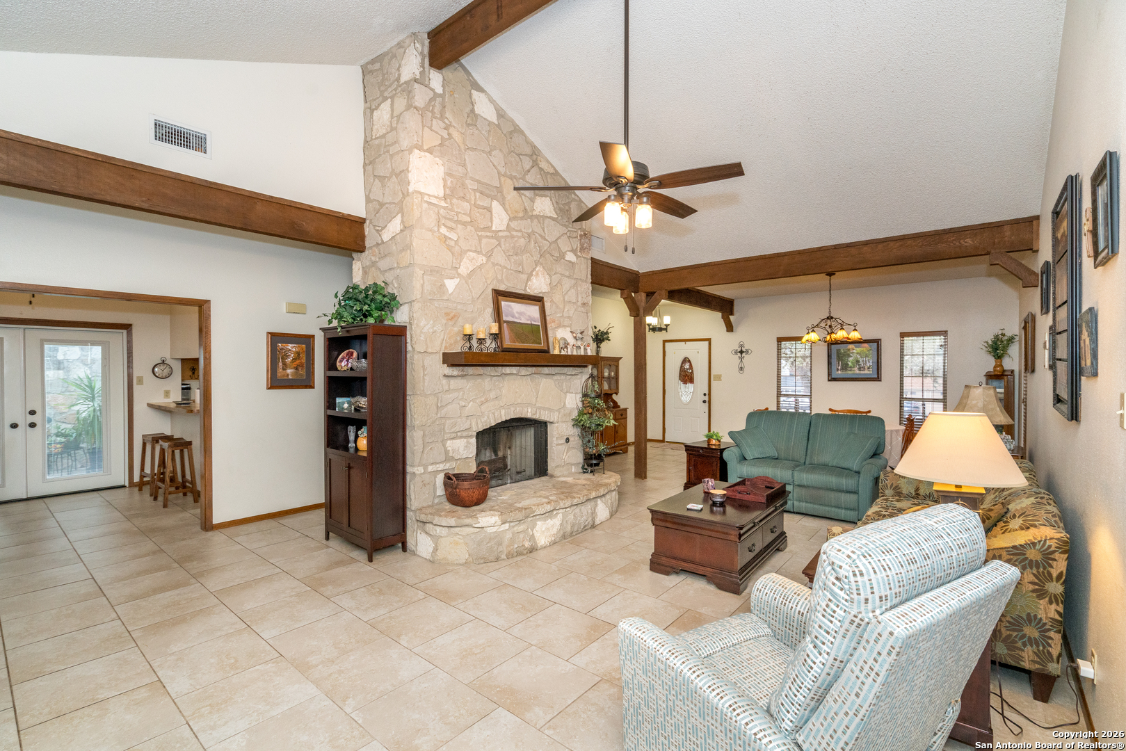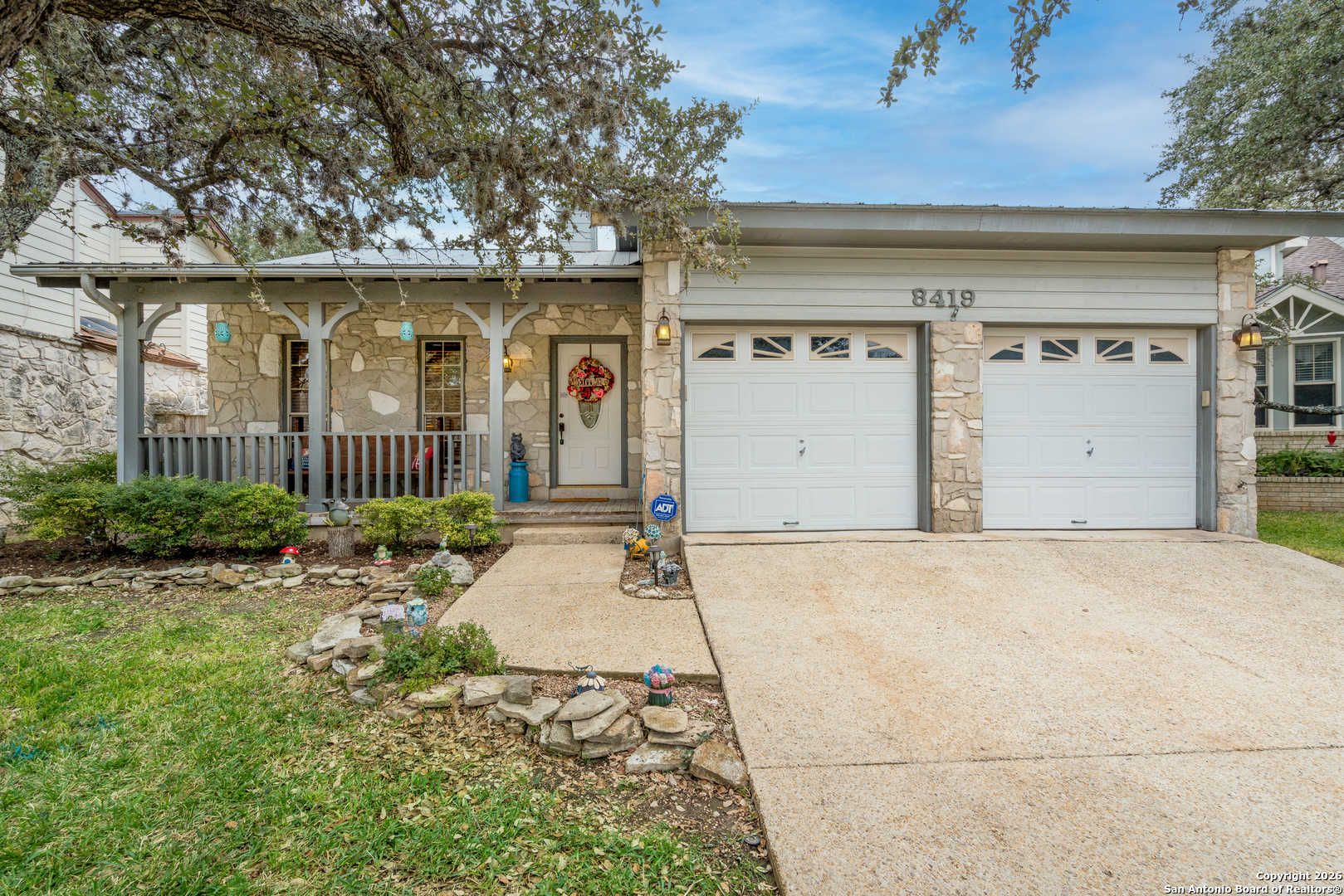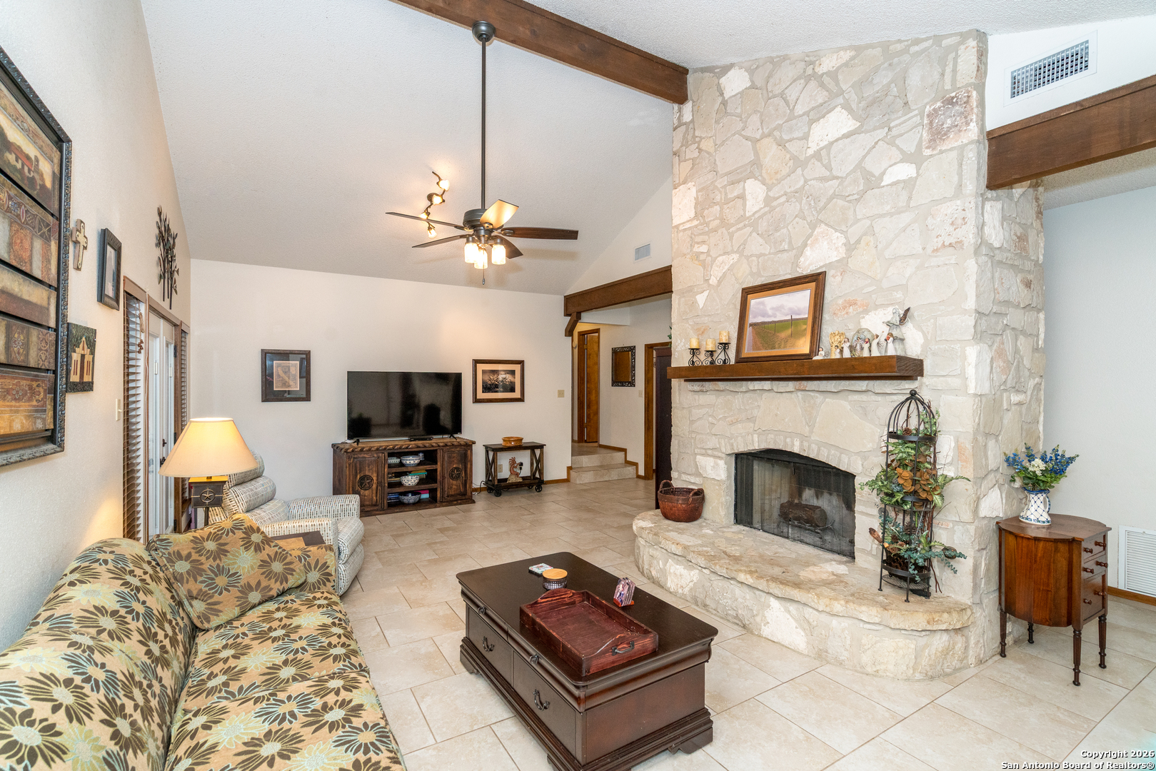 Beautifully positioned on a tranquil cul-de-sac in charming Braun Station. This inviting home offers outstanding curb appeal and a thoughtfully designed open floorplan ideal for both everyday living and entertaining. Inside, expansive living spaces are anchored by a dramatic floor-to-ceiling rock fireplace that creates a warm and welcoming focal point. Easy-care tile flooring flows throughout the home, providing a clean, modern look with no carpet to maintain. The kitchen is well equipped with stainless steel appliances and a gas stove, perfect for the chef in the family, and opens seamlessly to the main living areas for effortless gatherings. Outdoor living is just as impressive, with three lovely patio retreats offering space to relax, entertain, or unwind, along with a covered front porch ideal for rocking chairs and quiet evenings. Set within a great neighborhood served by highly rated schools, residents also enjoy access to outstanding community amenities including a gorgeous pool, tennis courts, and a welcoming clubhouse, making this home a wonderful blend of comfort, style, and lifestyle.