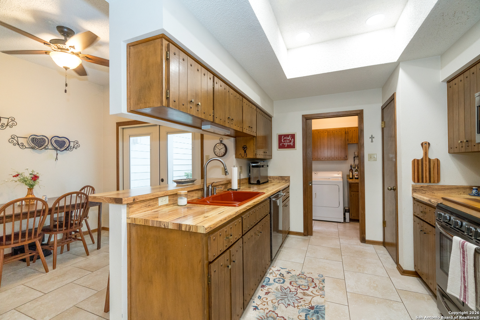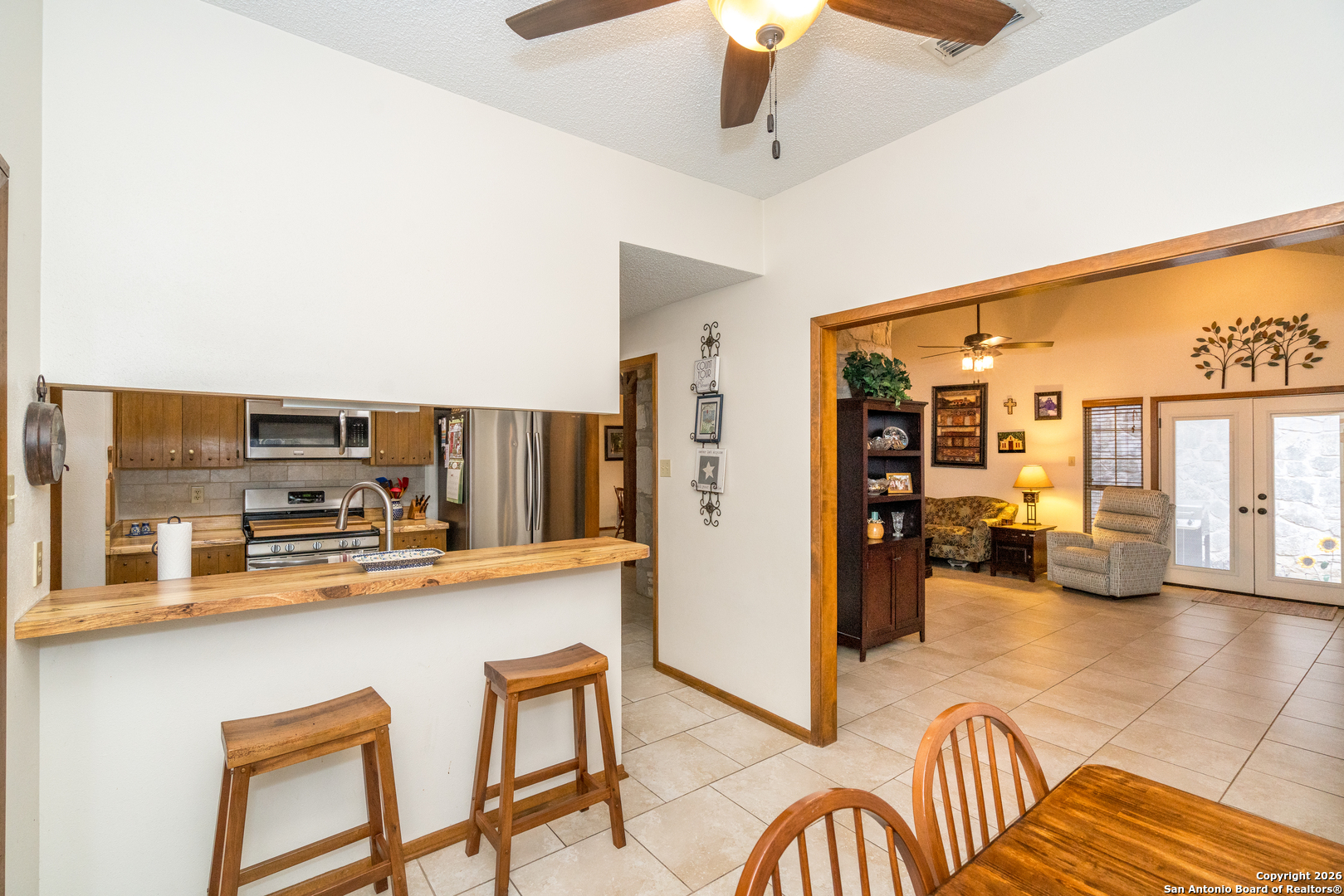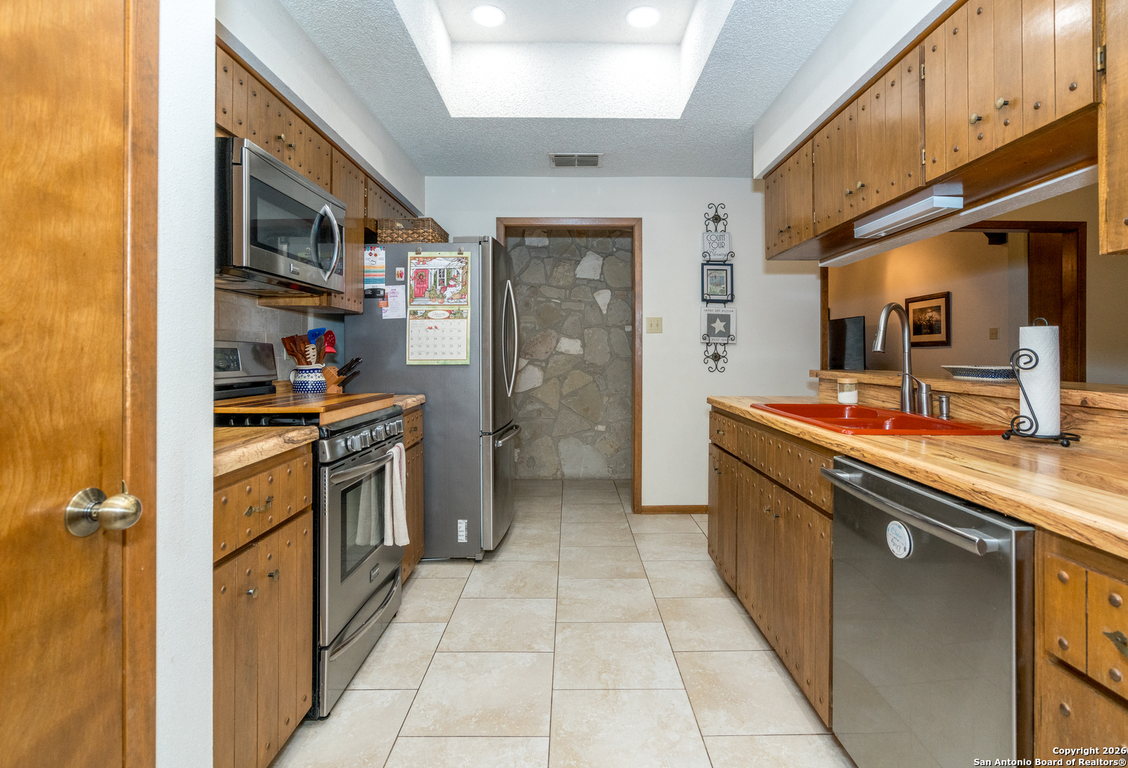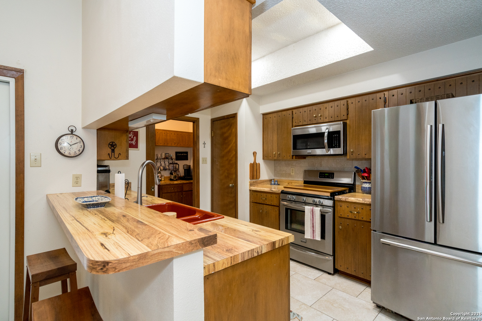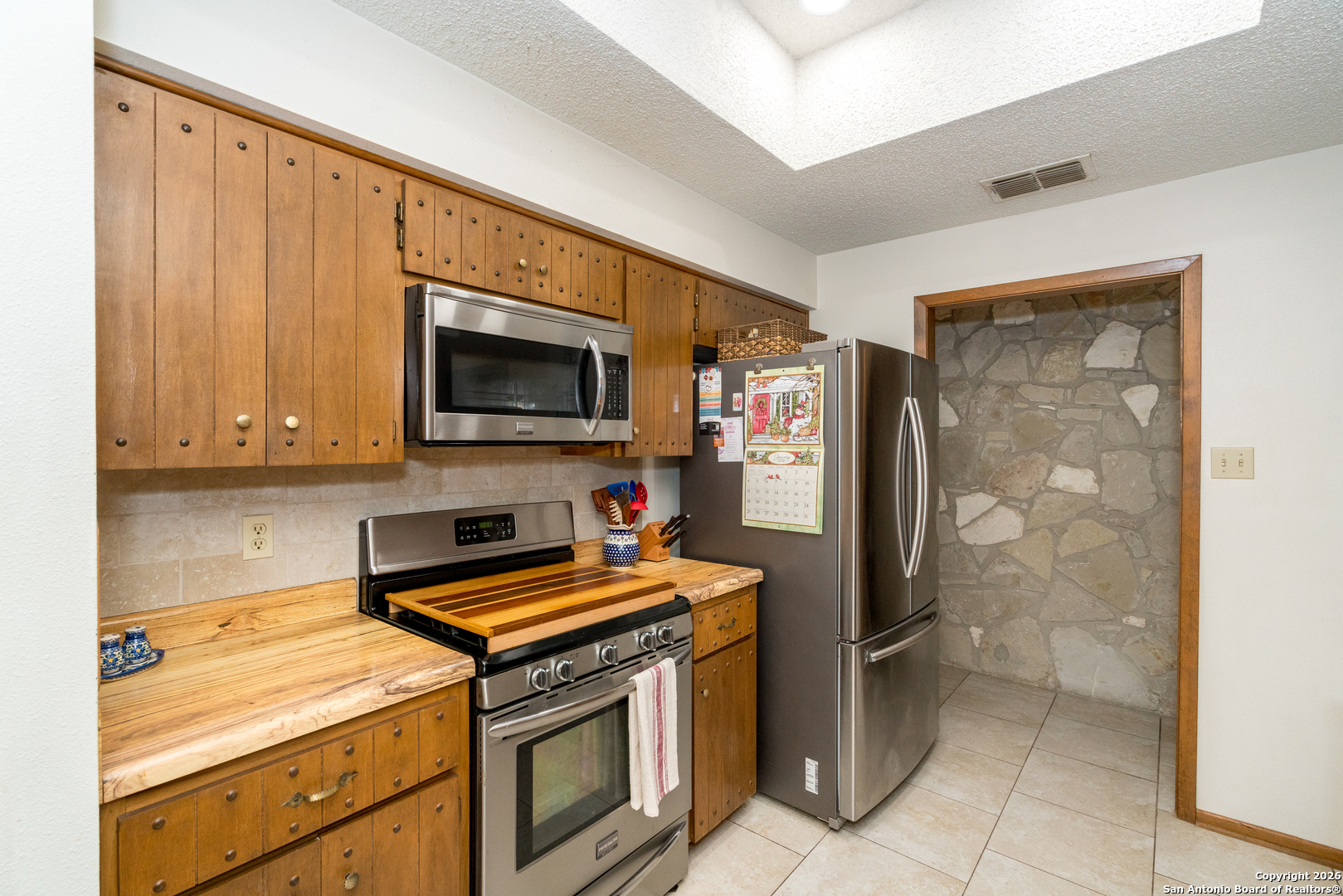 Beautifully positioned on a tranquil cul-de-sac in charming Braun Station. This inviting home offers outstanding curb appeal and a thoughtfully designed open floorplan ideal for both everyday living and entertaining. Inside, expansive living spaces are anchored by a dramatic floor-to-ceiling rock fireplace that creates a warm and welcoming focal point. Easy-care tile flooring flows throughout the home, providing a clean, modern look with no carpet to maintain. The kitchen is well equipped with stainless steel appliances and a gas stove, perfect for the chef in the family, and opens seamlessly to the main living areas for effortless gatherings. Outdoor living is just as impressive, with three lovely patio retreats offering space to relax, entertain, or unwind, along with a covered front porch ideal for rocking chairs and quiet evenings. Set within a great neighborhood served by highly rated schools, residents also enjoy access to outstanding community amenities including a gorgeous pool, tennis courts, and a welcoming clubhouse, making this home a wonderful blend of comfort, style, and lifestyle.