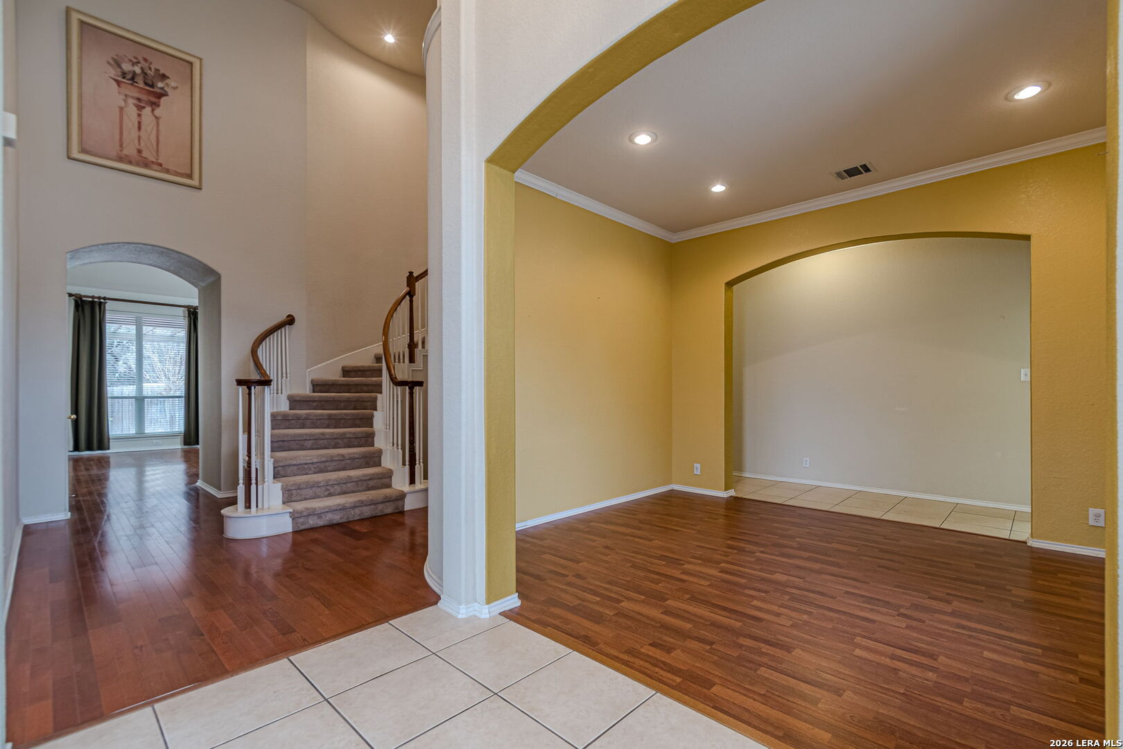 Welcome to this beautifully designed 5-bedroom home offering the perfect blend of elegance, functionality, and space for every stage of life. From the moment you arrive, you'll appreciate the inviting curb appeal and well-planned layout that delivers both comfort and flexibility. Inside, you'll find an open-concept floor plan filled with natural light and generous living areas ideal for everyday living and entertaining. The kitchen serves as the heart of the home, featuring ample cabinetry, expansive counter space, and seamless flow into the dining and living areas. The primary bedroom is conveniently located on the main level, providing a private retreat with a well-appointed en-suite bath and spacious closet. Also on the first floor, you'll find a secondary bedroom with a full bath-perfect for guests, multi-generational living, or a private home office setup. Upstairs, three additional bedrooms offer plenty of space, along with a versatile media/game room ideal for movie nights, gaming, or entertaining. A charming reading nook provides a cozy space to unwind with your favorite book or create a quiet study area. Step outside to your own private backyard oasis featuring a large deck-perfect for outdoor dining, relaxing evenings, or hosting gatherings. The home backs to a peaceful greenbelt, offering added privacy and serene views with no rear neighbors. Conveniently located near shopping, dining, and major routes, this home offers both tranquility and accessibility. With five bedrooms, multiple living spaces, a spacious deck, and greenbelt privacy, this home truly has room for everyone. Schedule your private showing today!