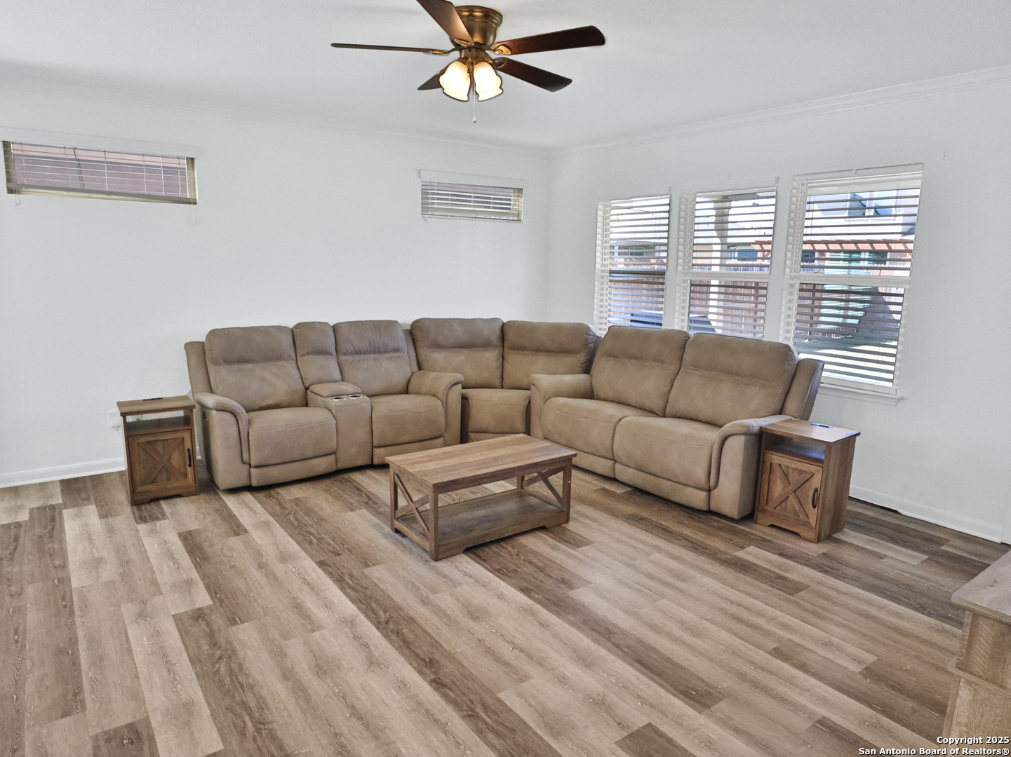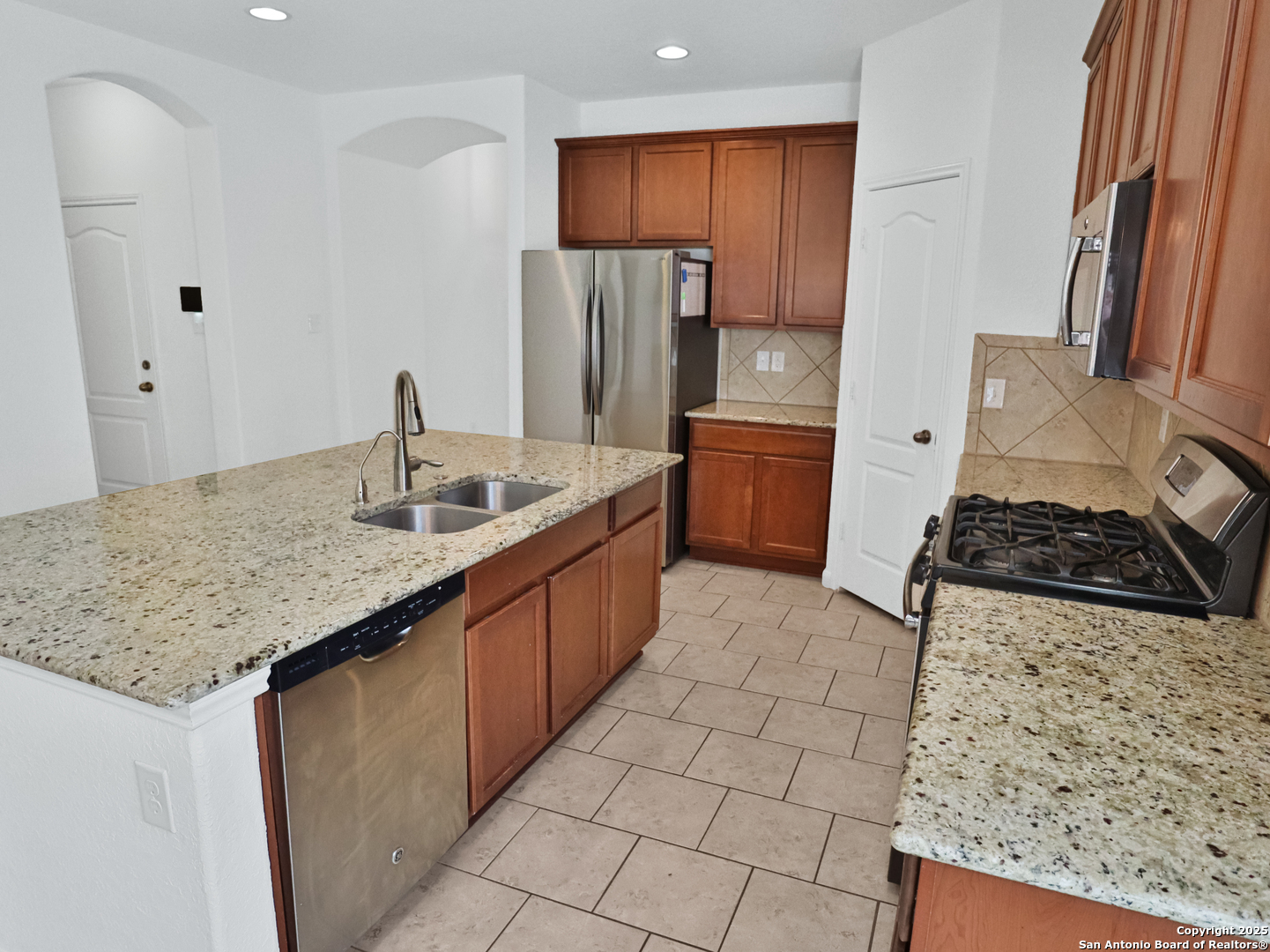 This home has it all and more! Great location! 4BRs + Office & Gameroom., New carpeting in Gameroom & BRs 2,3,4. Fresh paint throughout. Downstairs is all ceramic tile & beautiful, upgraded wood-look plank flooring. Primary BR split and down with a bay wall of windows & 10' ceiling. French doors lead to luxurious bath w/oval garden tub, sep shower, & large walk-in closet. XL island Kitchen w/granite counters, tile backsplash, dbl stainless sinks, gas cooking, tile floors, walk-in pantry, & 42" cathedral cabinetry. Large FR open to KT & Breakfast area. Outside access to 19' cvrd patio w/dual fans & sunscreens. Huge Gameroom is up surrounded by 3 BRs, full Bath & large, "no-stairs" attic access. "Sante Fe Drag" texturing. Sprinkler system, Security system, Water softener. Terrific neighborhood pool & Rec center to relax, meet new neighbors, friends & kids! This is really a good one you'll want to see!!