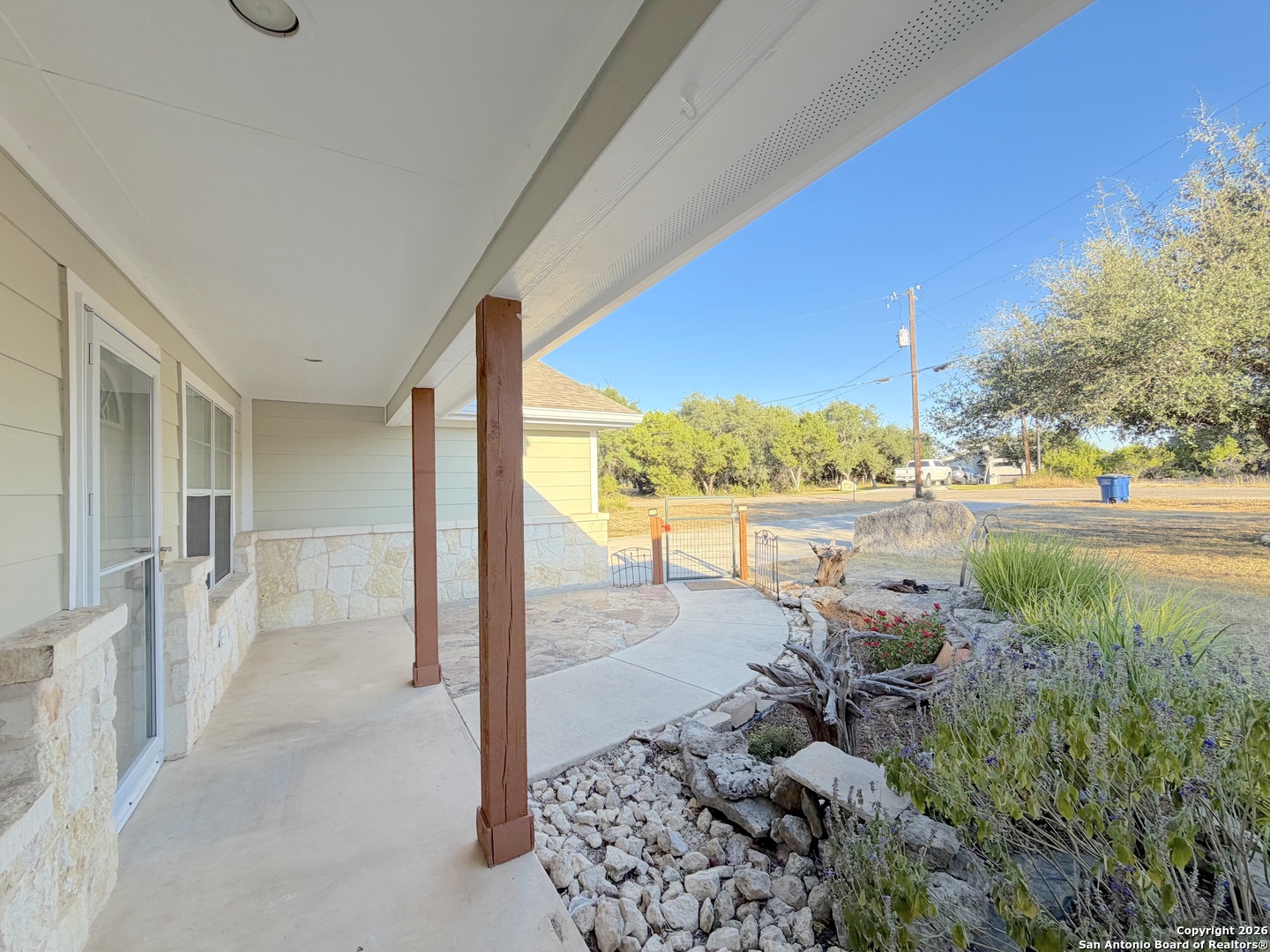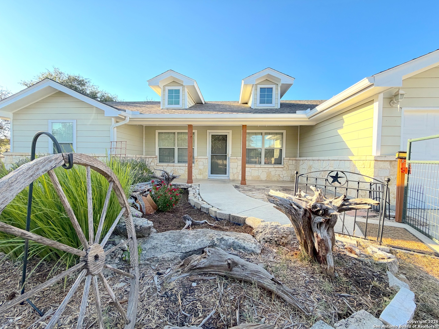 Vacant and move-in ready, this exceptionally clean 3-bedroom, 2-bath home with a 2-car garage is located in the desirable Scenic Heights community and sits on an oversized lot. The home is thoughtfully designed with no wasted space and lives significantly larger than its square footage, offering spacious rooms and a warm, welcoming living area ideal for everyday living and entertaining. The primary suite features dual walk-in closets and separate vanities, providing comfort and functionality. Enjoy breathtaking sunset views from the back deck, with the most dramatic vistas visible from the left corner of the backyard-an ideal spot to relax and unwind. Situated in a quiet neighborhood, this property offers easy access to Canyon Lake, New Braunfels, and San Antonio, making it an excellent choice for both full-time living.