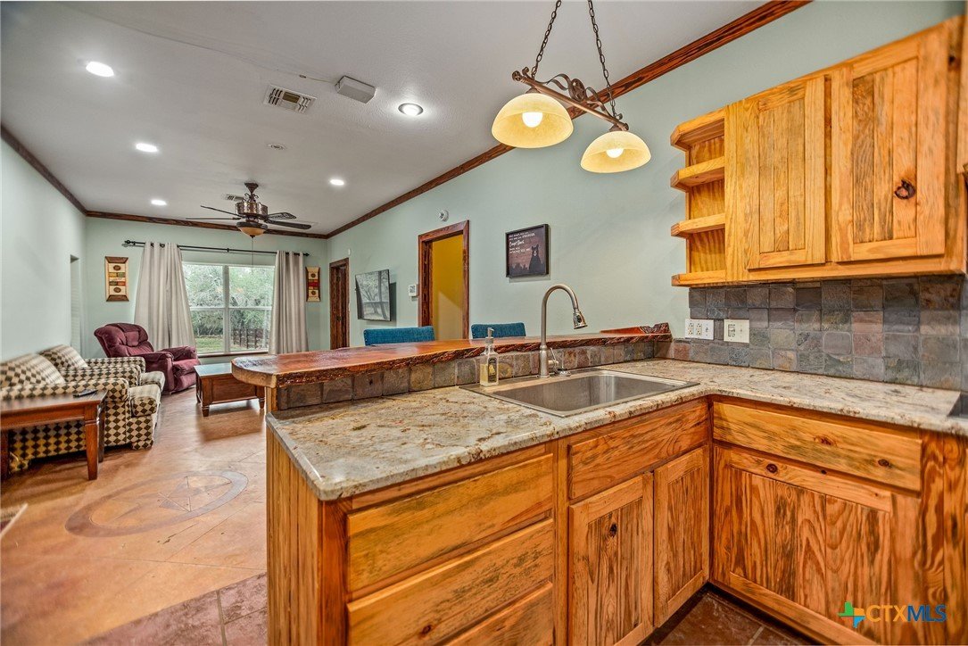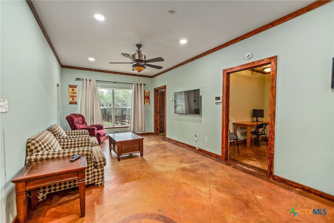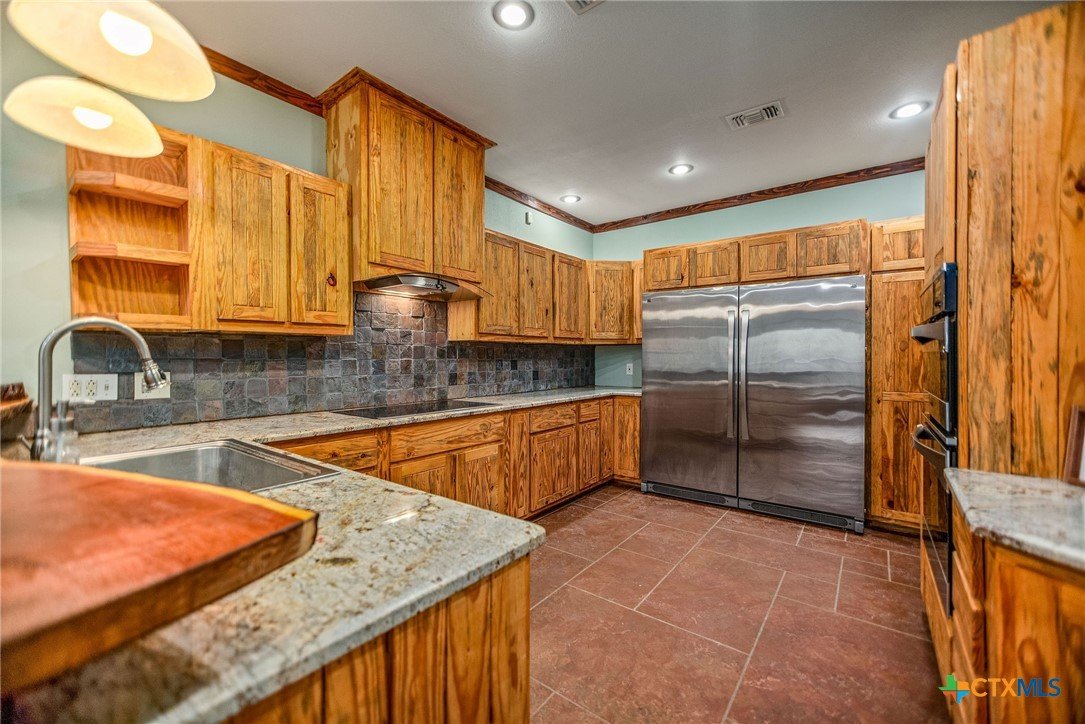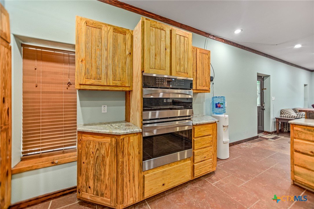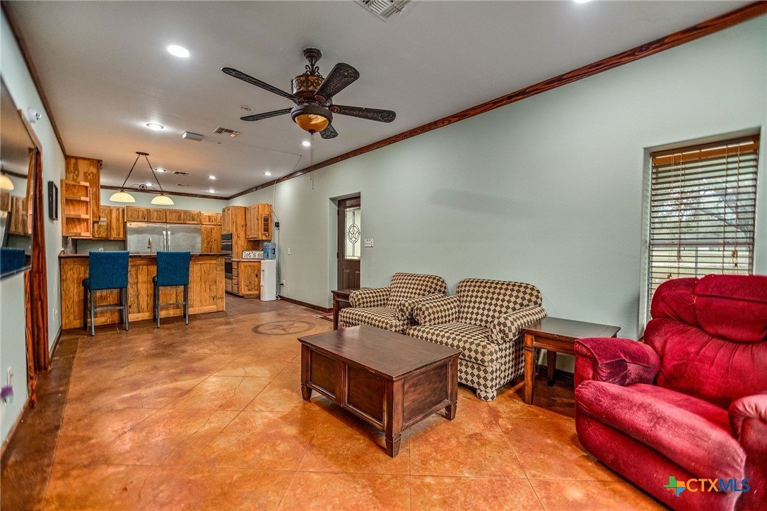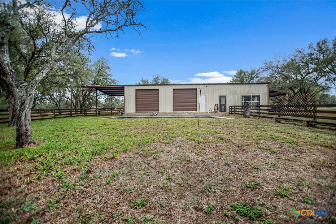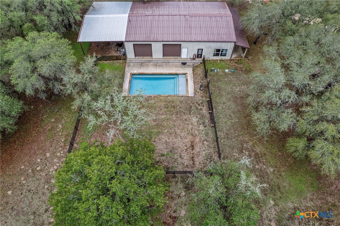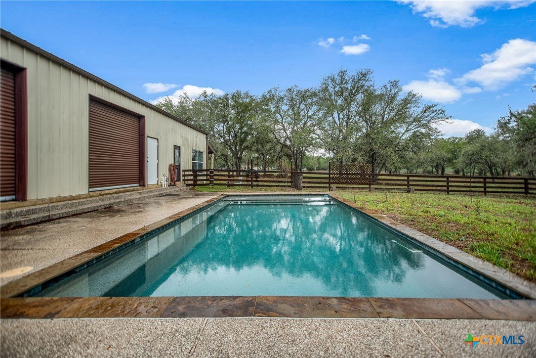 Welcome to your private slice of Texas living at 85 Calle Corta in Victoria! Nestled on 3.48 acres at the end of a quiet cul-de-sac, this property offers the perfect blend of space, privacy, and functionality. Surrounded by mature trees, the setting creates a peaceful, shaded retreat ideal for enjoying the outdoors. The backyard is built for relaxation and entertaining, featuring a gunite swimming pool and a fire pit, perfect for gatherings under the South Texas sky. Inside, the approximately 1,000 sq ft home is thoughtfully designed with stained concrete floors, custom cabinetry, granite countertops, and Kenmore appliances, offering both style and durability. One of the standout features is the oversized garage with five rolling doors, providing incredible flexibility, use it for storage, a workshop, or convert it into additional living space to fit your needs. Whether you're looking for a homestead, weekend retreat, or a property with room to grow, this one delivers space, versatility, and country charm just minutes from town.