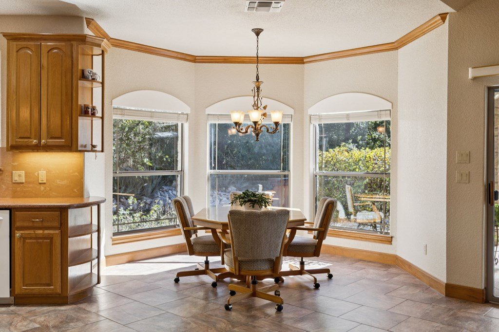 Experience the tranquility of Hill Country living at 85 Rio Colorado Drive in the gated community of WaterStone near Boerne. Situated on 3.14 acres of tree-covered land, this property offers privacy, scenic views, and a seamless connection to nature. The estate includes a 3,344-square-foot main residence and a 1,159-square-foot guest house, totaling 4,503 square feet of living space designed for comfort and versatility. The main home offers three bedrooms and two and a half bathrooms, featuring an open, flowing layout enhanced by crown molding, tall ceilings, and multiple gathering spaces including formal and family living areas, a study, and a dining room designed for entertaining. The kitchen showcases timeless oak cabinetry, Quartz countertops, a built-in oven, and a breakfast nook that overlooks the peaceful backyard where deer and wildlife are often seen. The split-bedroom layout provides privacy, with the primary suite offering a spacious bath complete with walk-in shower, soaking tub, dual vanities, and a large walk-in closet. Two secondary bedrooms share a connecting bathroom. The property includes two oversized garages, providing protected parking for up to four vehicles and ample space for storage or a workshop. The electrical panel has been upgraded to include a generator transfer feature, allowing a portable generator to power essential circuits during power interruptions. The separate guest house, built alongside the main home, provides its own kitchen, dining, and living areas plus two bedrooms and two full baths-ideal for multi-generational living or visiting guests. Both homes enjoy convenient access to the enclosed pool area, offering year-round enjoyment protected from the elements. WaterStone residents have access to the Guadalupe River through two river parks. The community park features a pavilion, and recreational opportunities include swimming, fishing, and pickleball. Just a short drive from downtown Boerne, San Antonio, and the scenic route to Fredericksburg, this property blends rural serenity with modern convenience in one of the Hill Country's highly regarded communities.